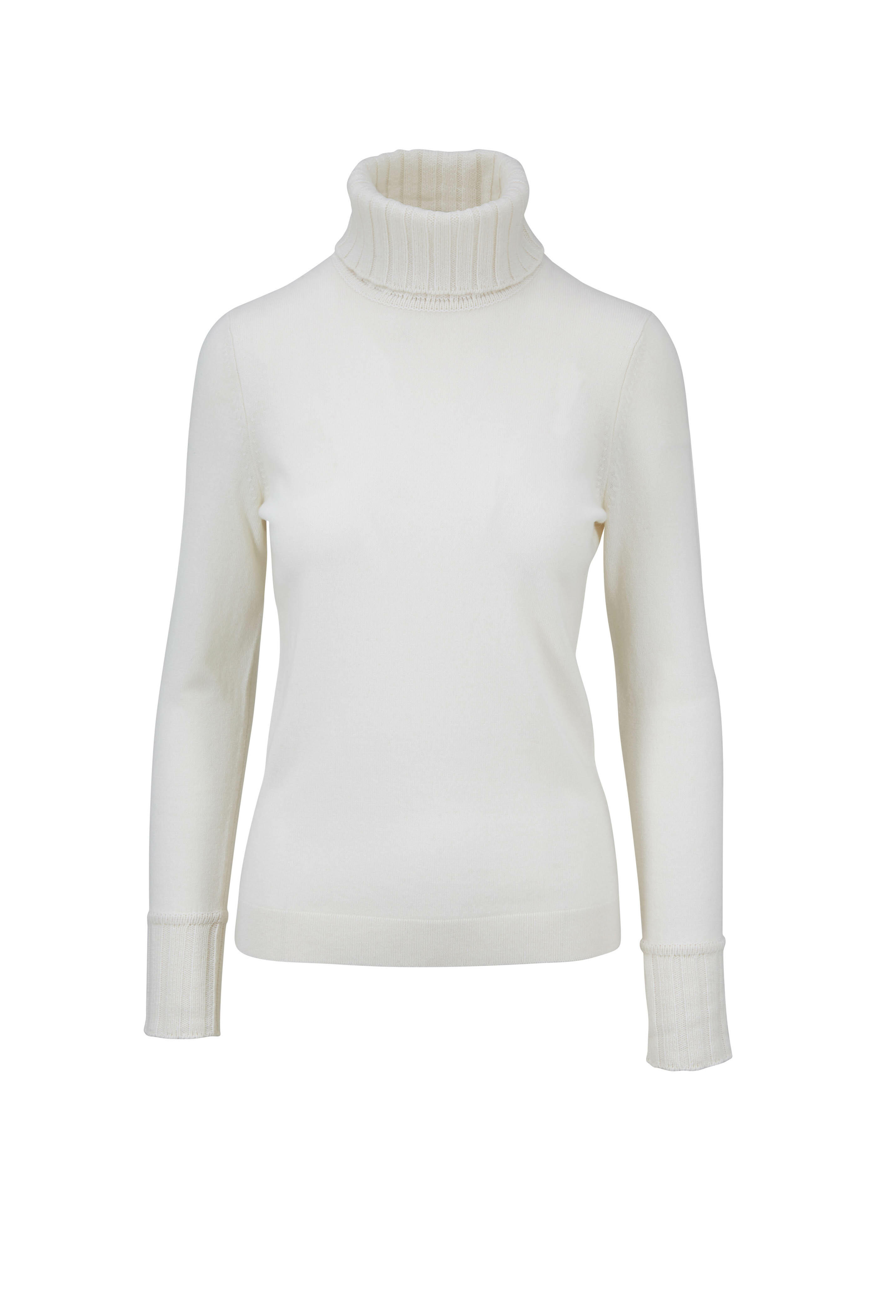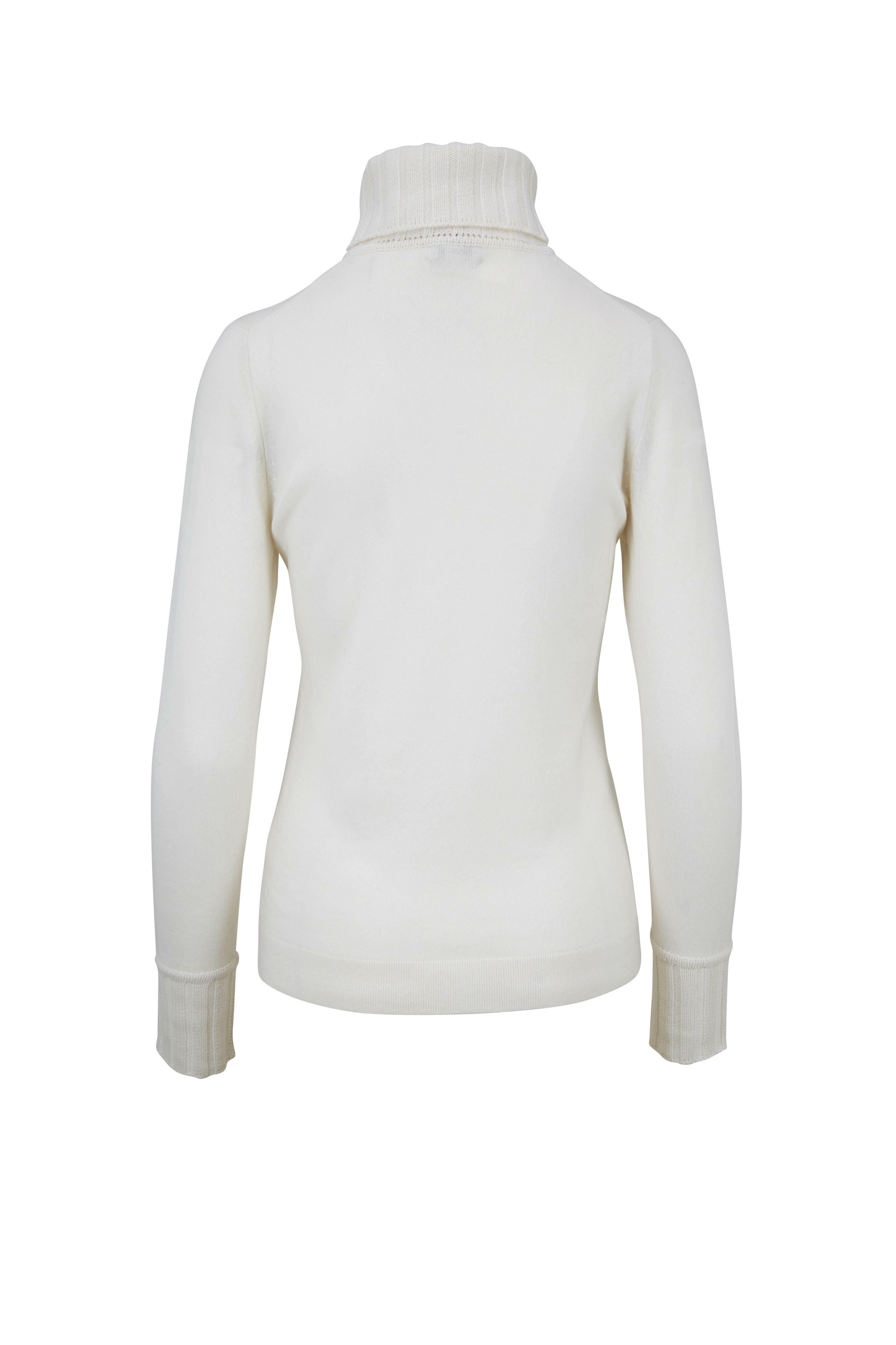Ivory Cashmere Chunky Trim Turtleneck