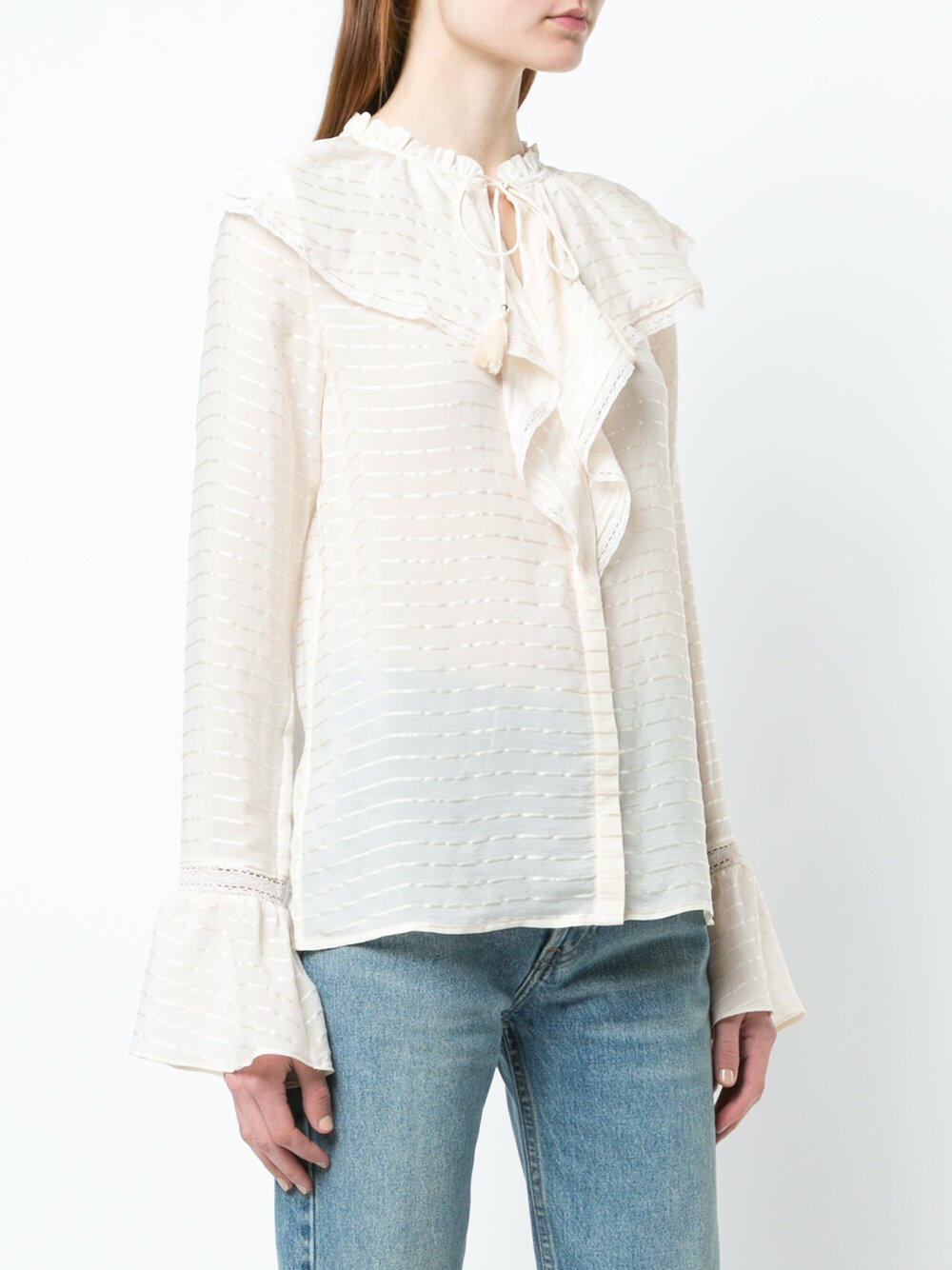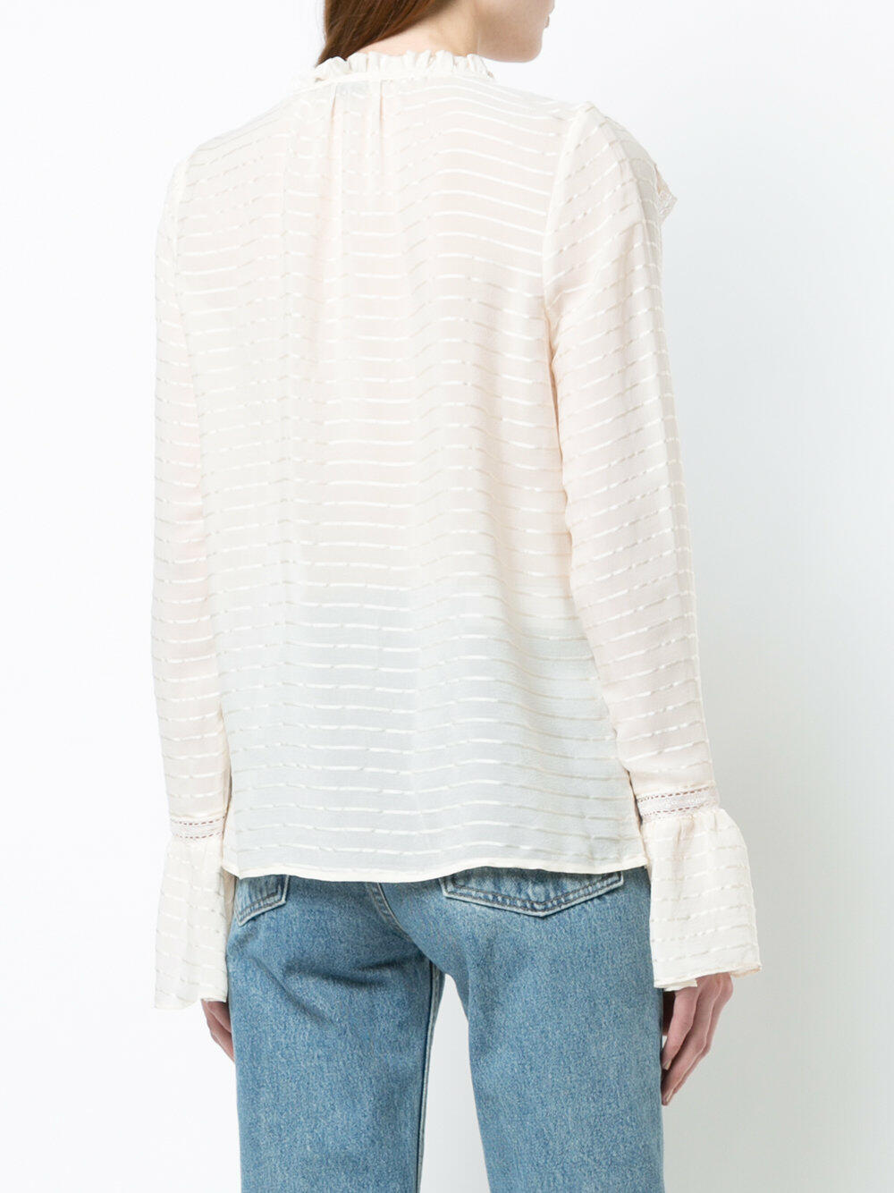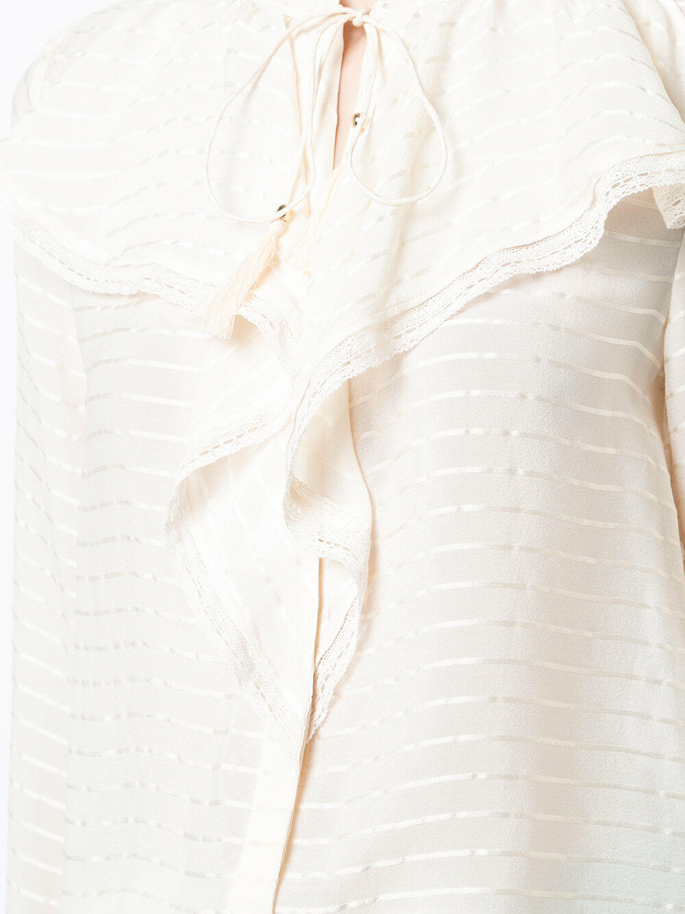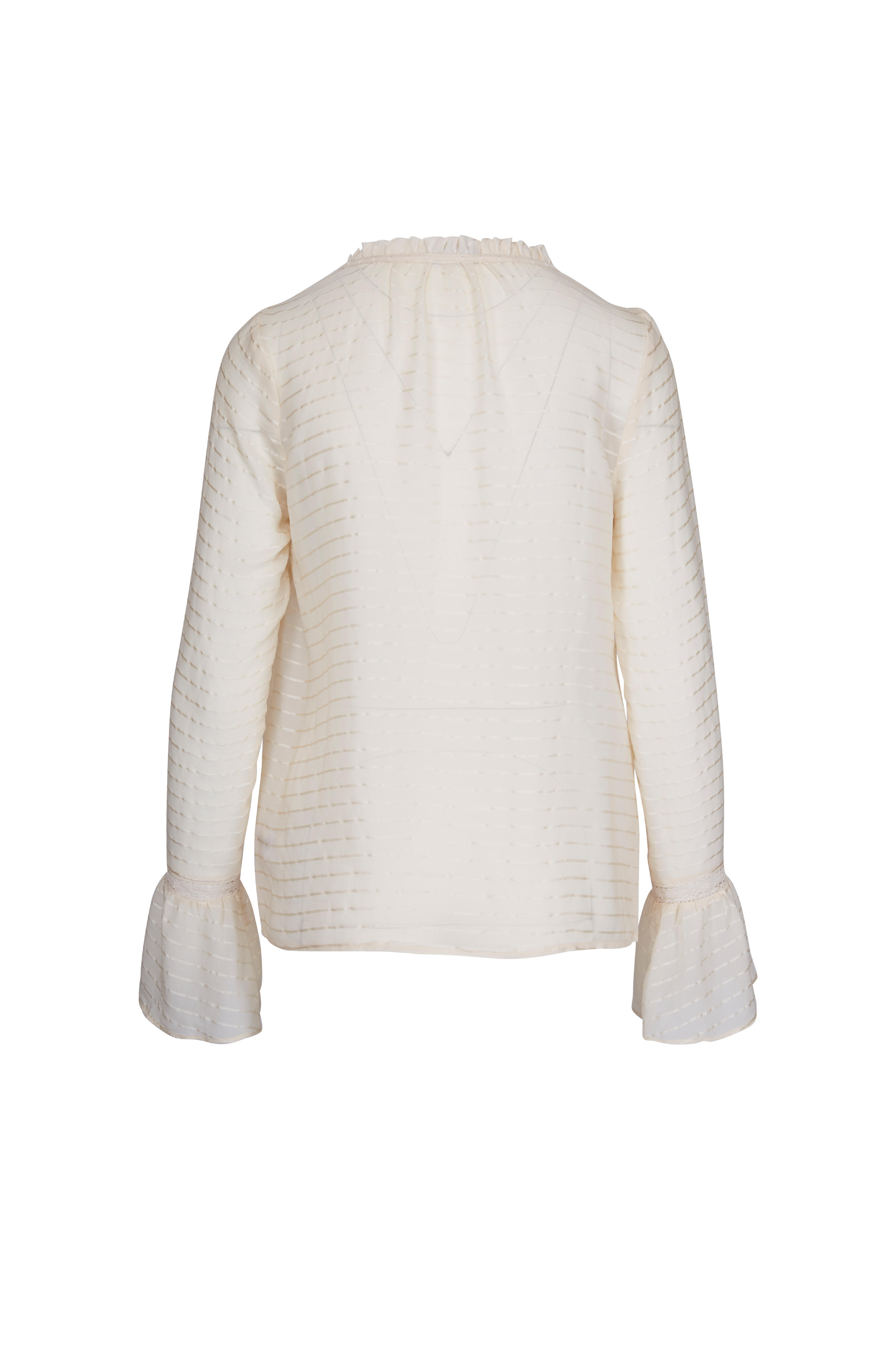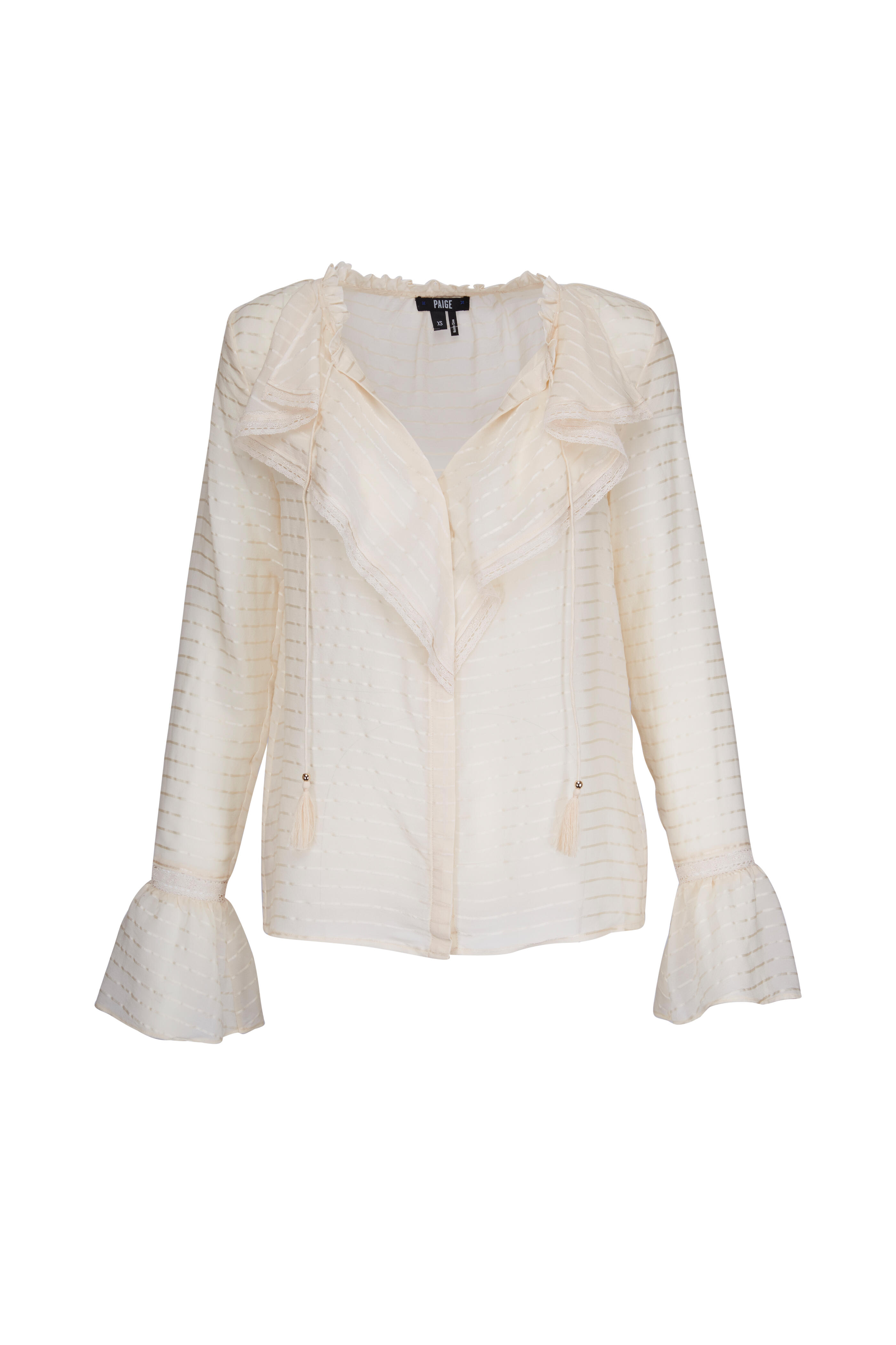• Paige - Silvette Natural Tonal Striped Silk Ruffled Blouse