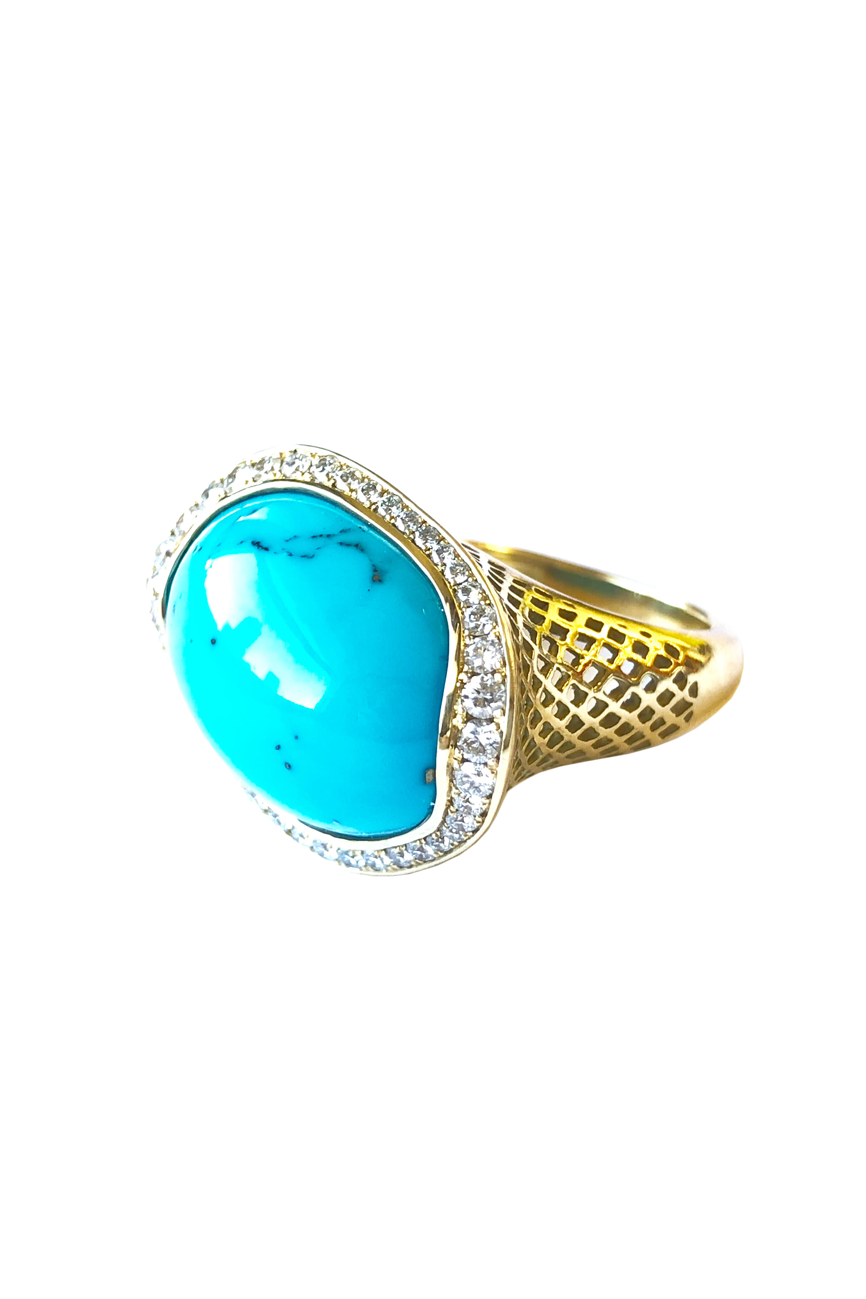 18K Yellow Gold Turquoise Sleeping Beauty Ring
