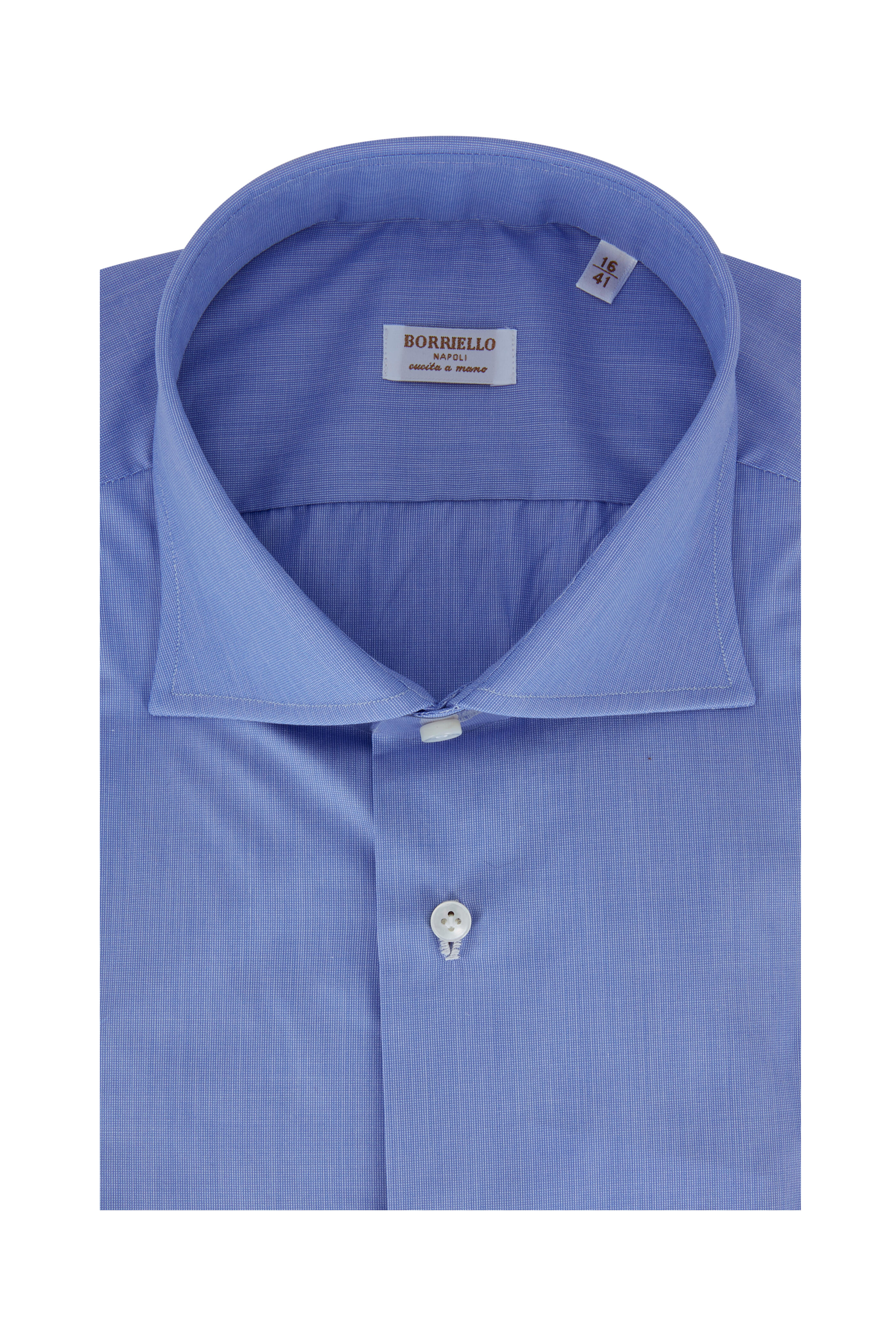 Spread collar. Single button barrel cuffs. Made in Italy. 100% cotton. Dry clean.