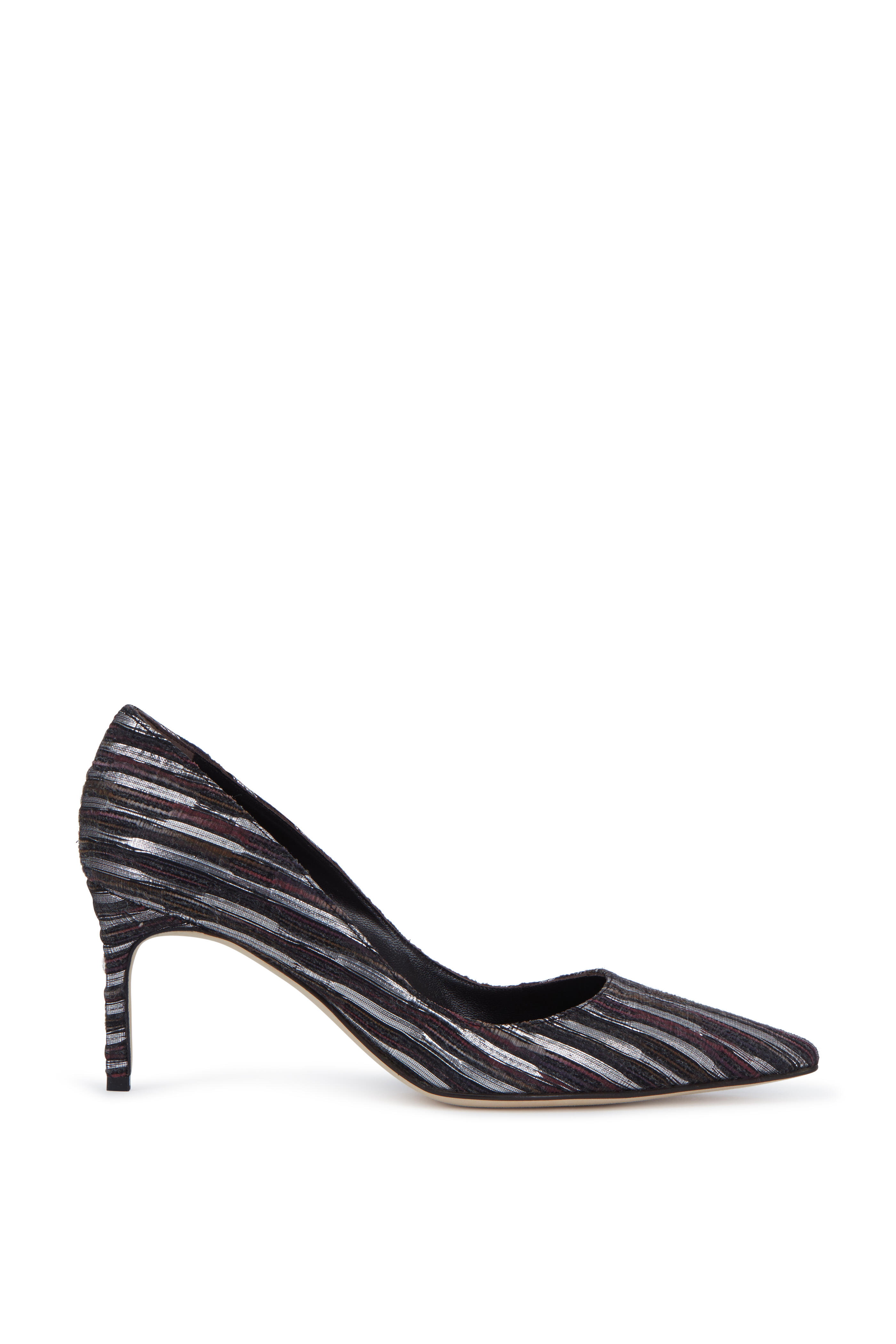 Lisa Silver & Bordeaux Textile Pump, 70mm