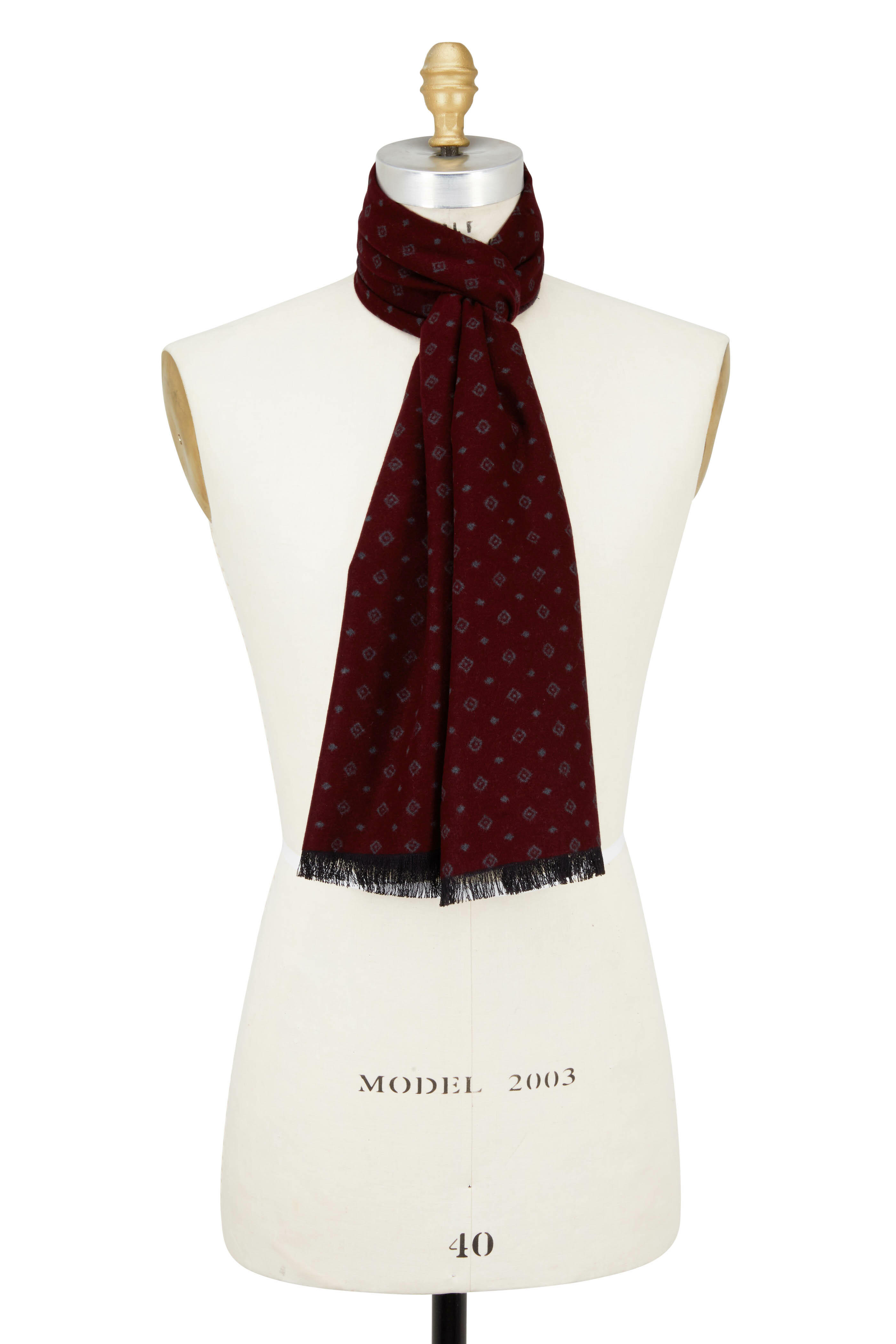 Burgundy & Gray Diamond Printed Silk Scarf