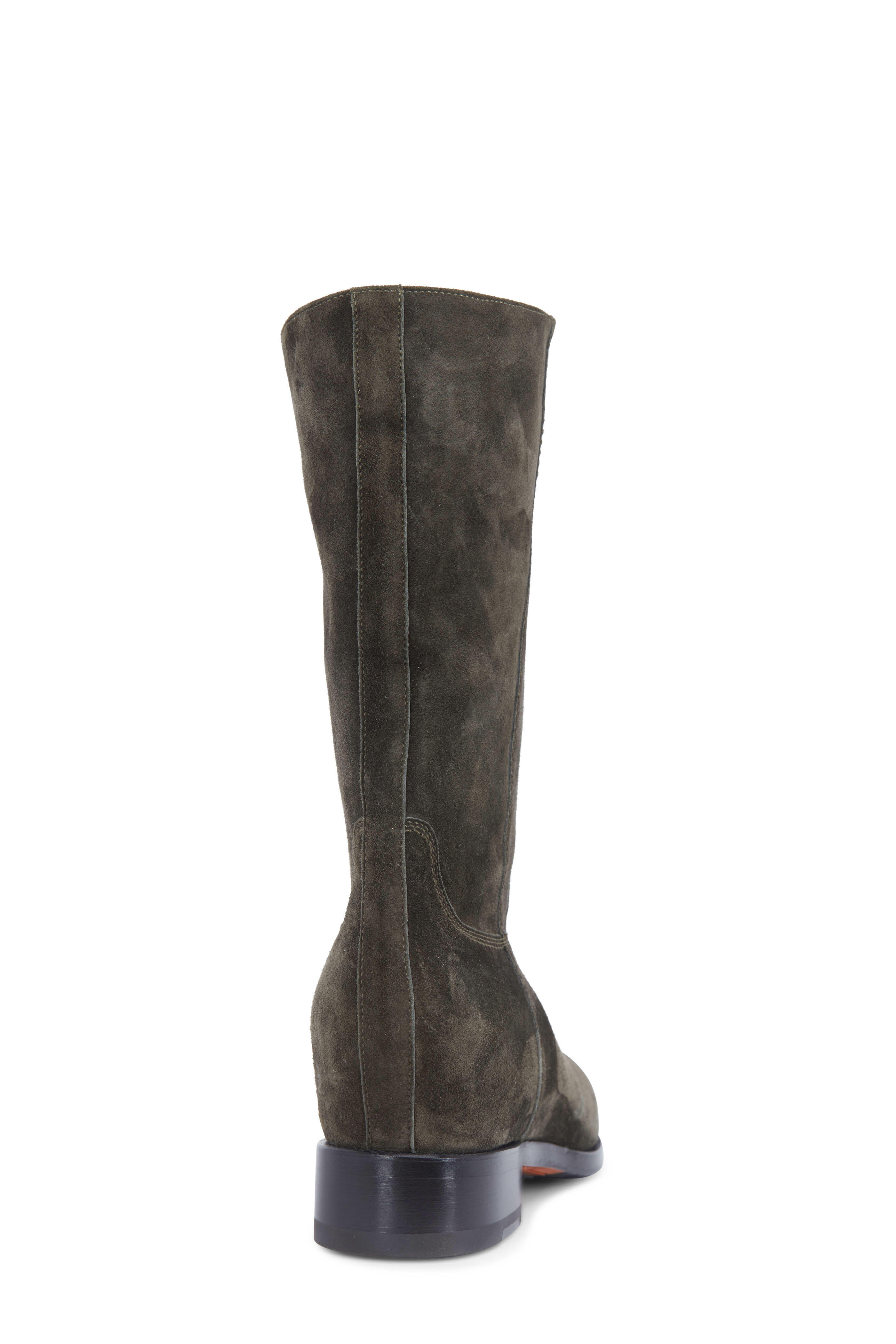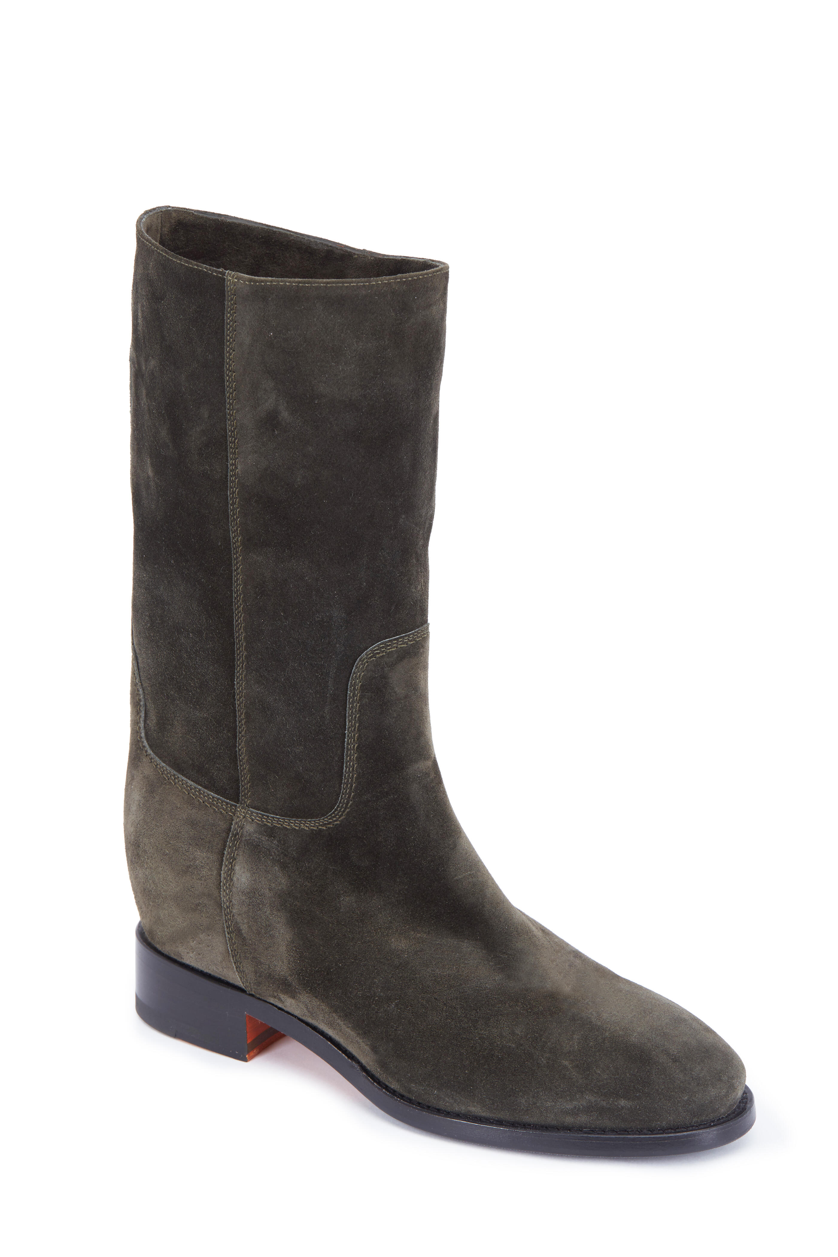 Hermione Donna Army Green Suede Mid-Calf Boot