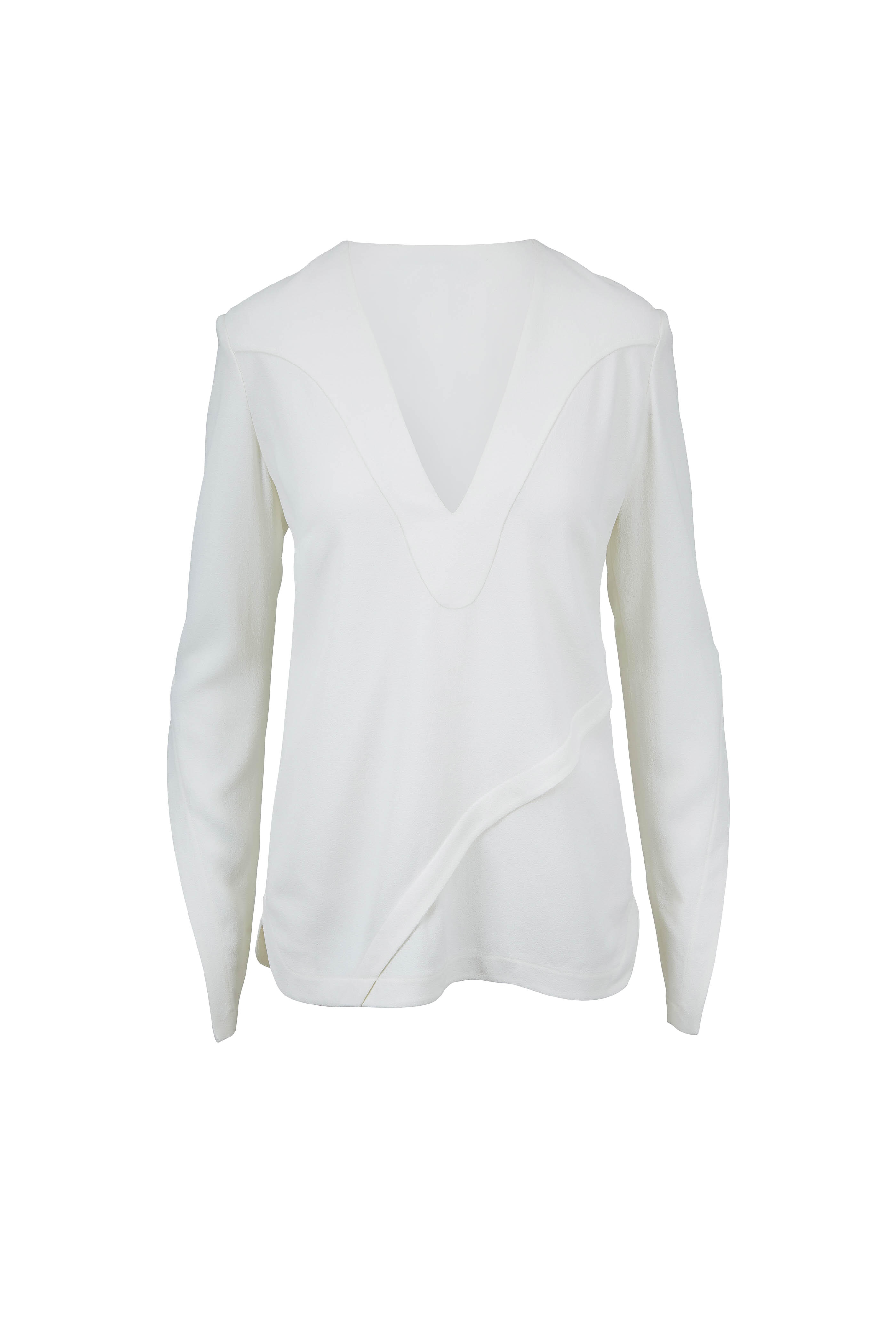 White Asymmetrical Seams Long Sleeve Blouse