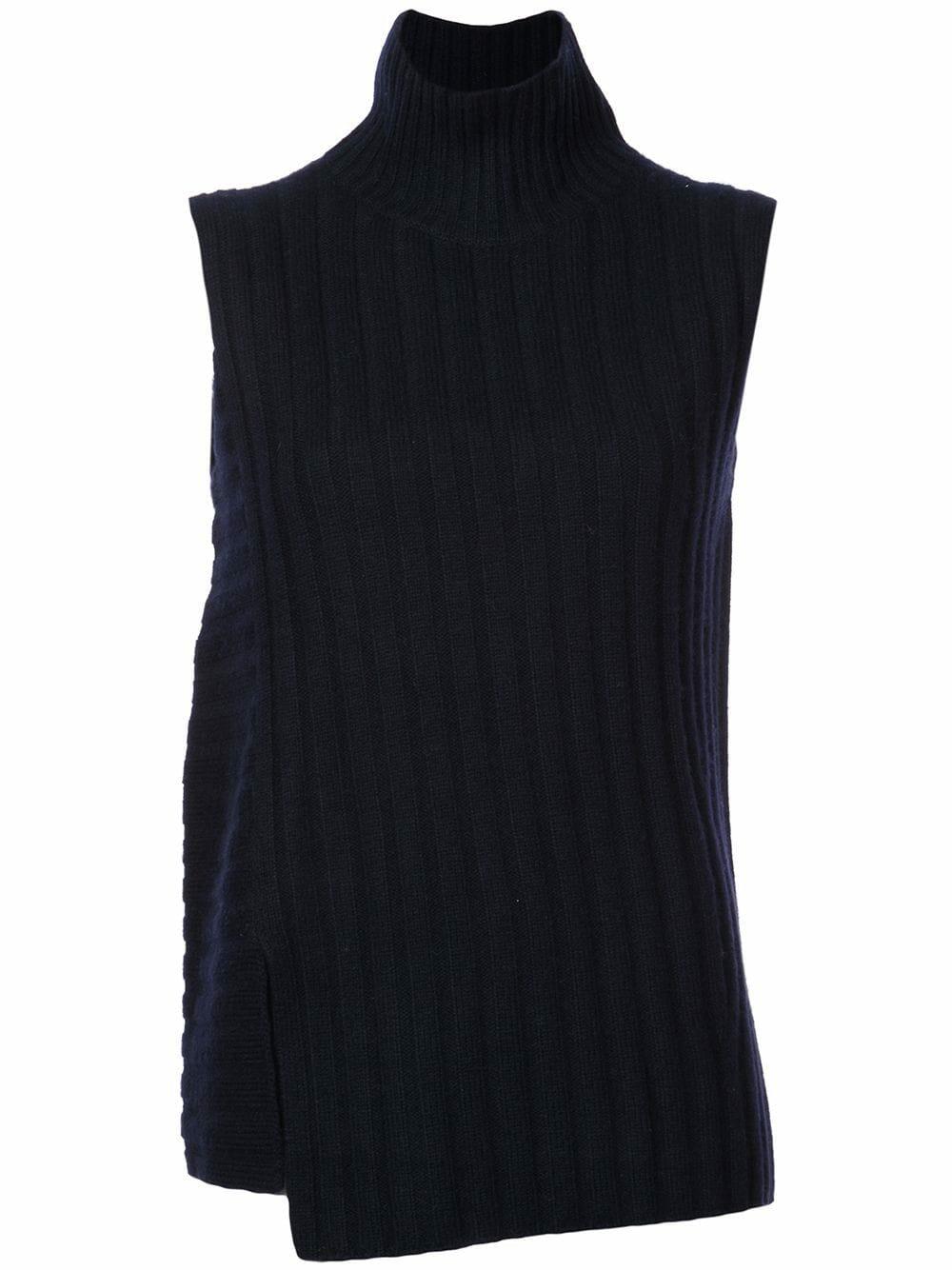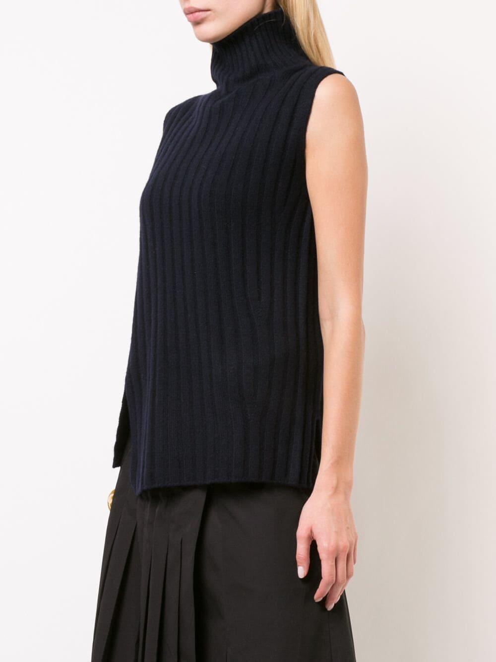 Coastal Blue Mixed Rib Sleeveless Turtleneck