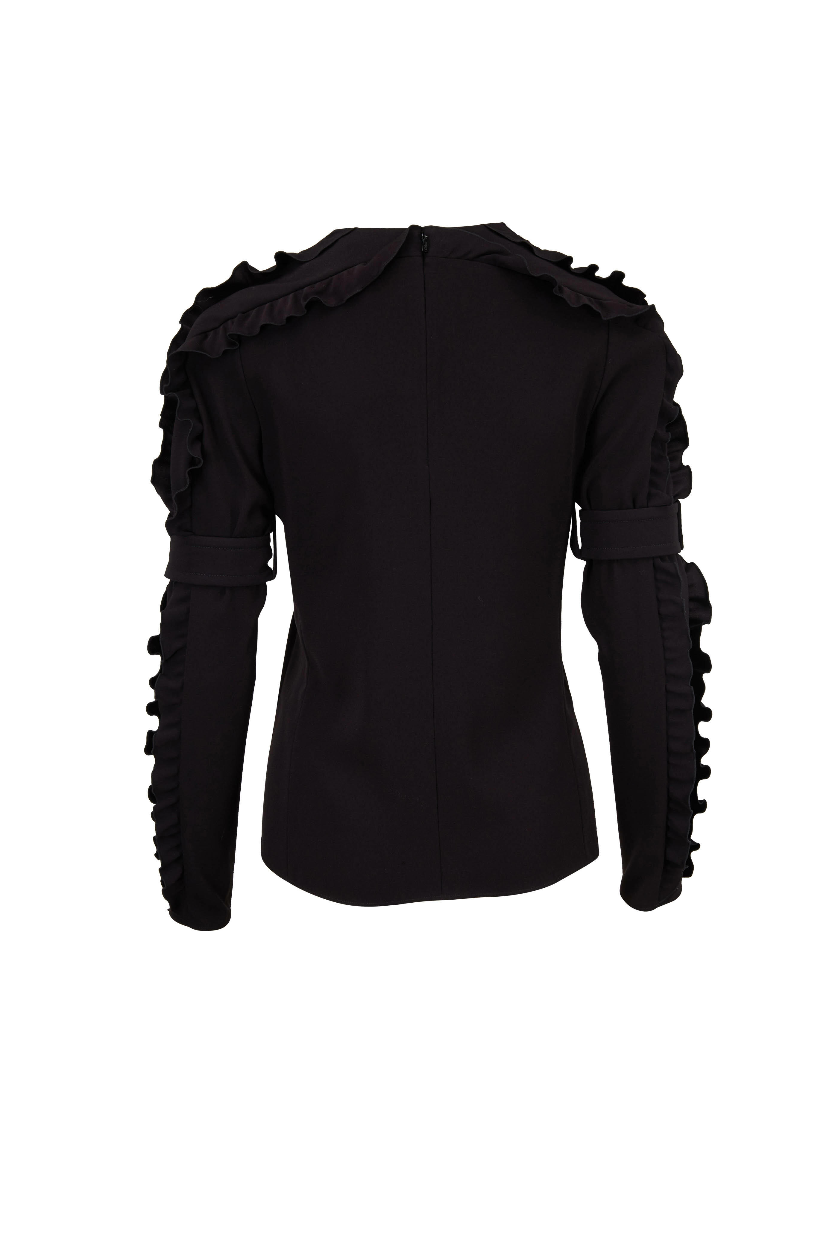 Black Crêpe Ruffled Edge Long Sleeve Blouse