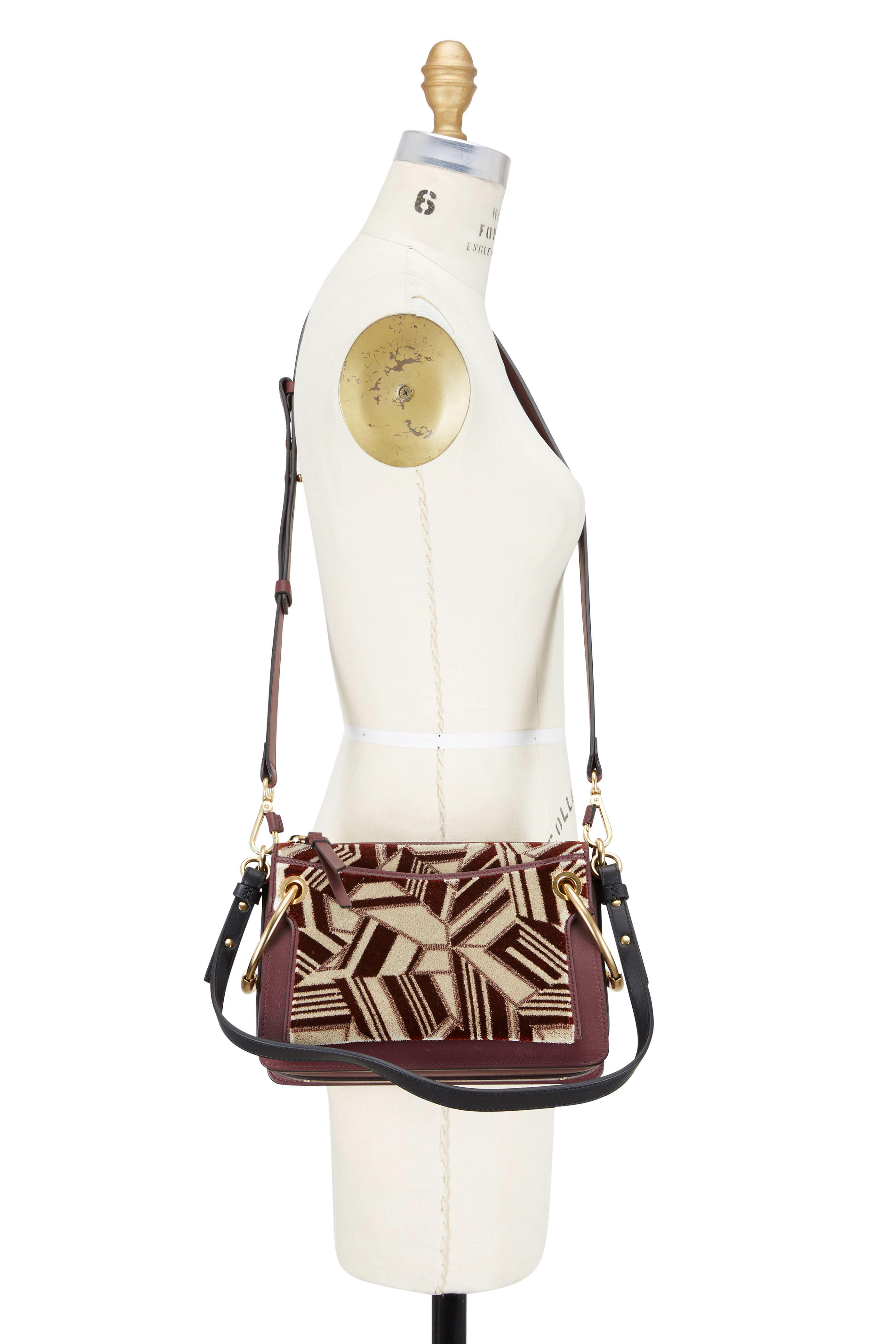 Roy Bordeaux Leather & Velvet Small Crossbody