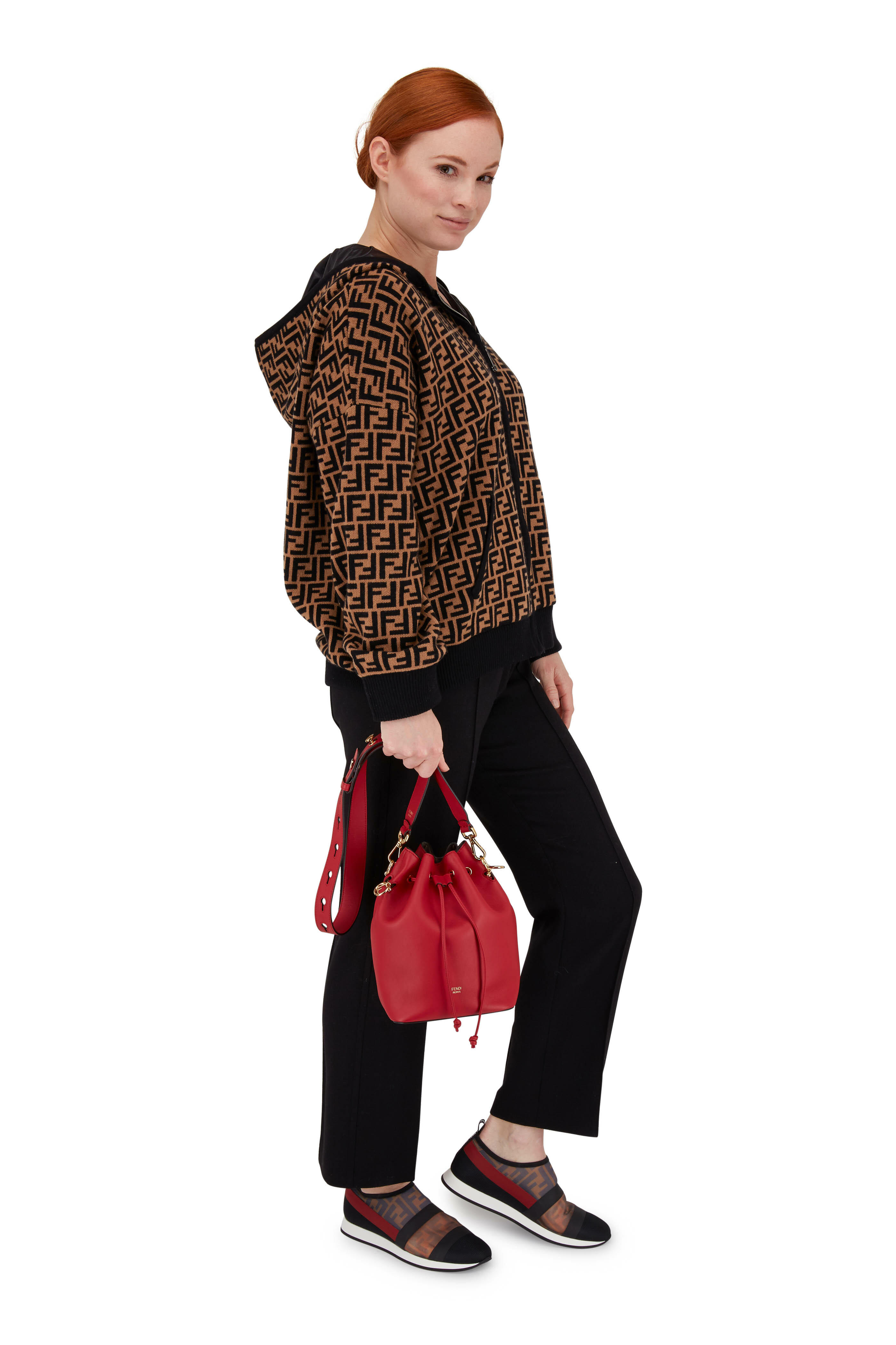 Calfskin leather. Detachable top handle. Detachable and adjustable leather crossbody strap. Drawstring top closure. Signature F logo charms at sides. Interior slip pocket. Lined in suede. Made in Italy. Width: 12". Height: 10". Depth: 6". Detachable and adjustable strap drop: 19".