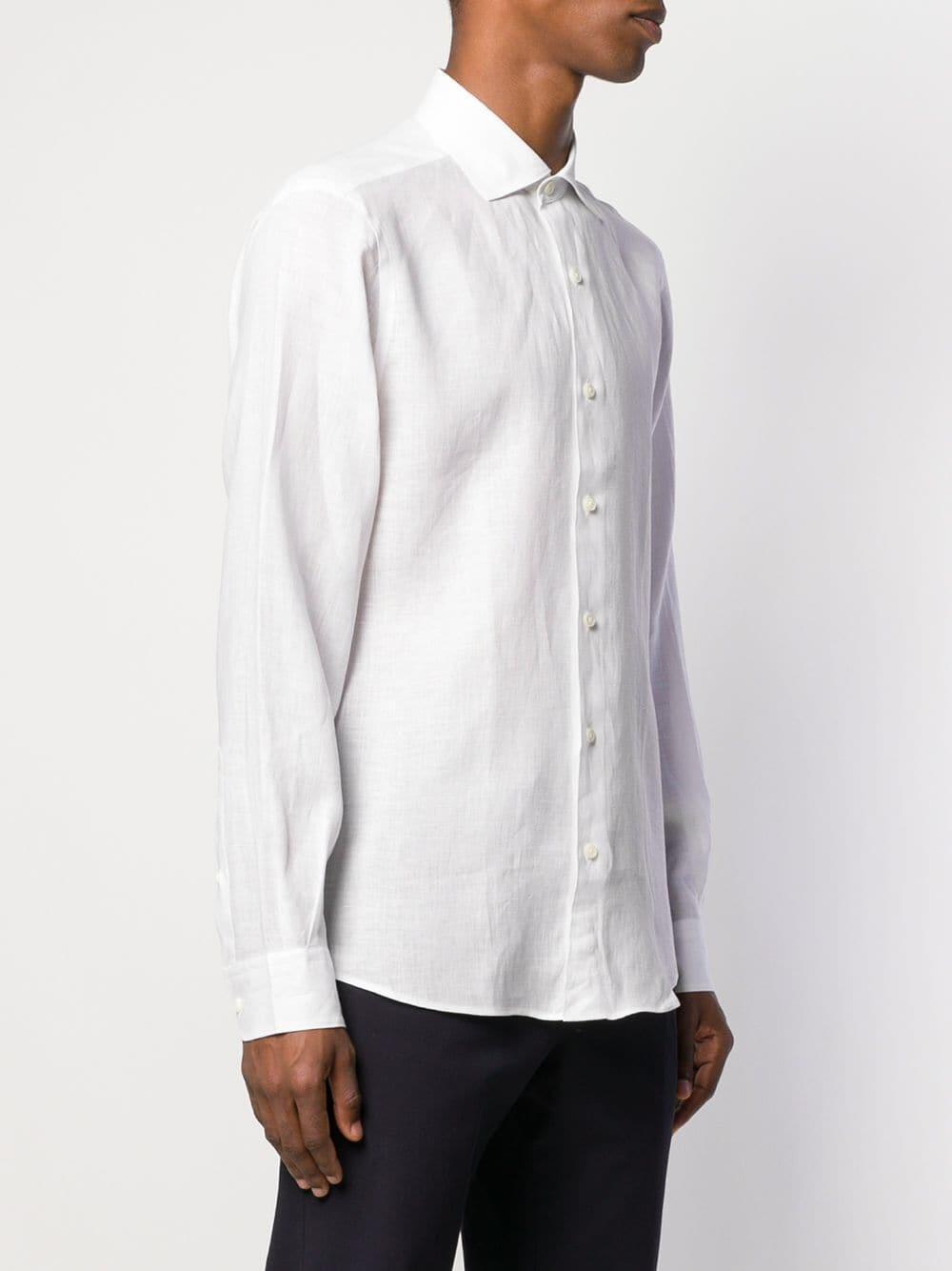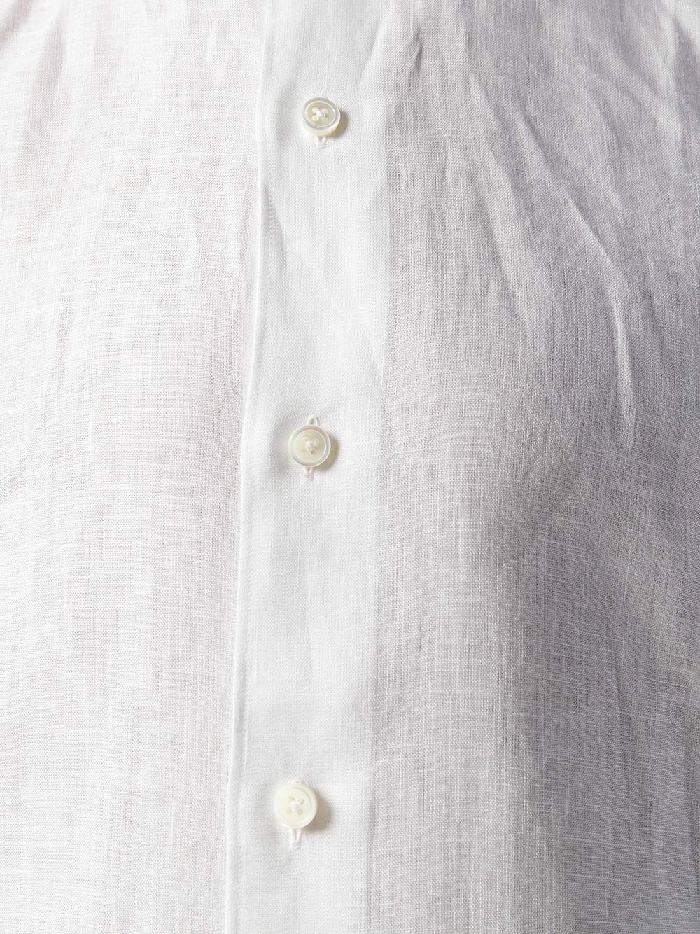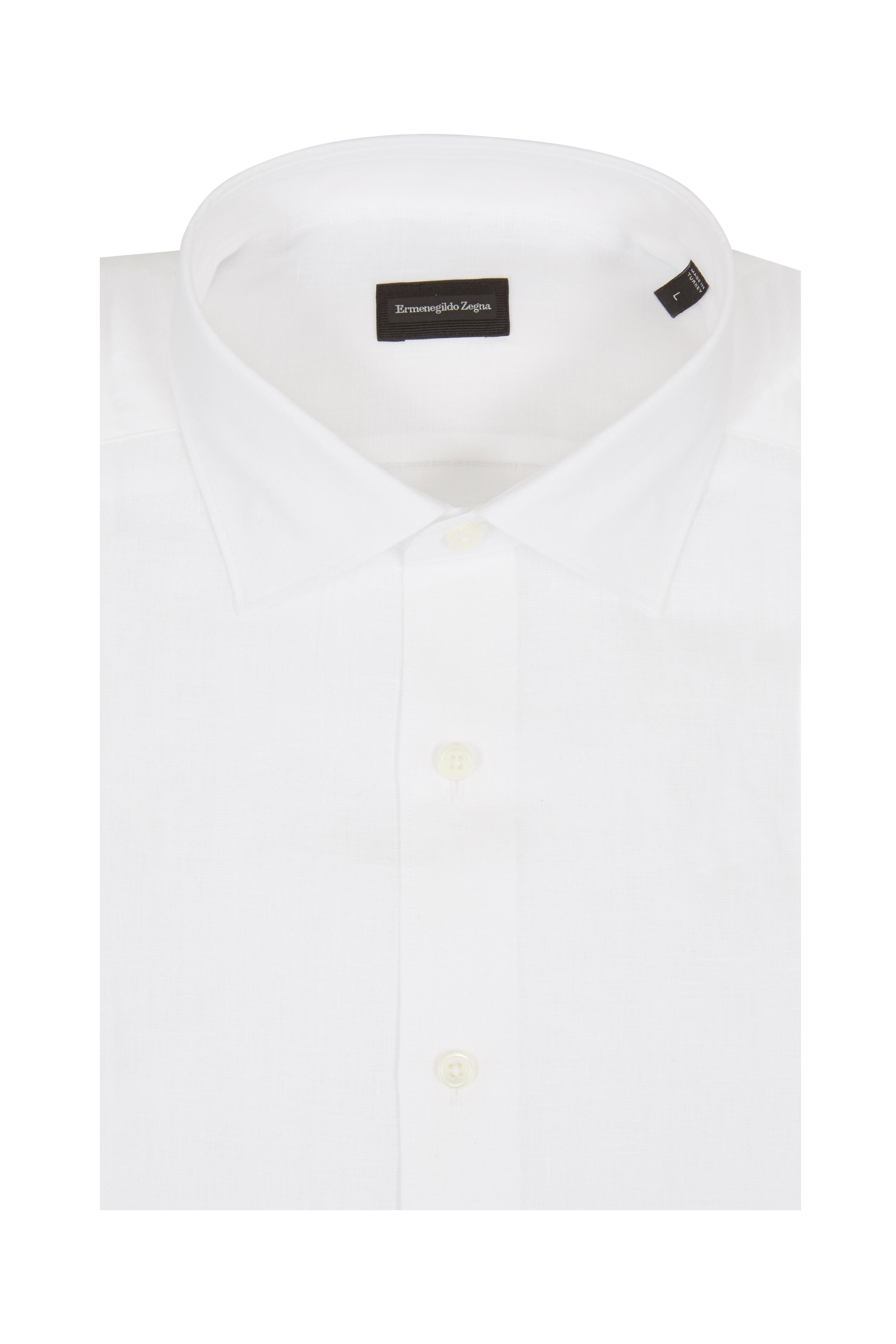 Spread collar. Single button barrel cuffs. Imported. Classic fit. 100% linen. Machine wash.