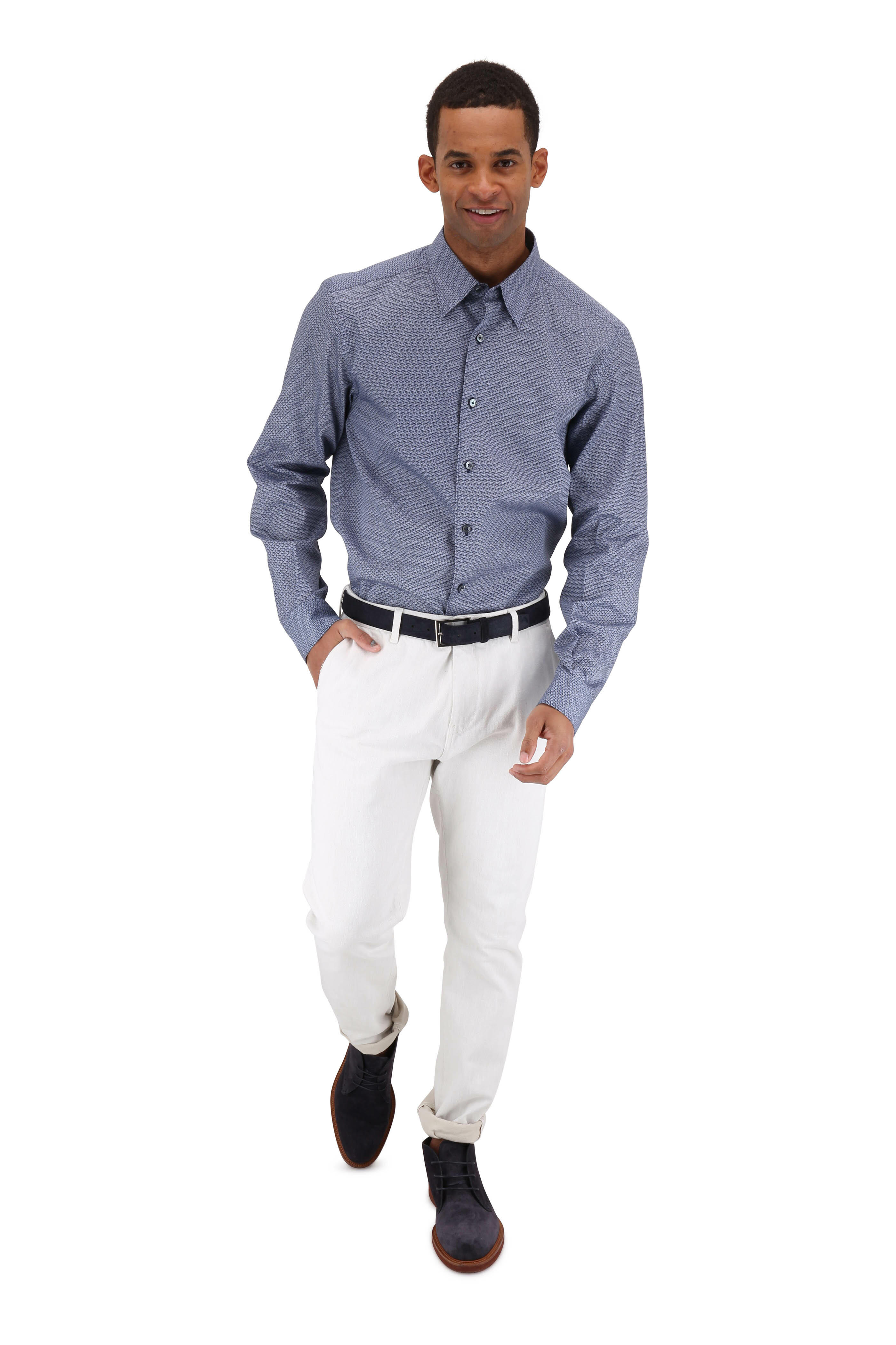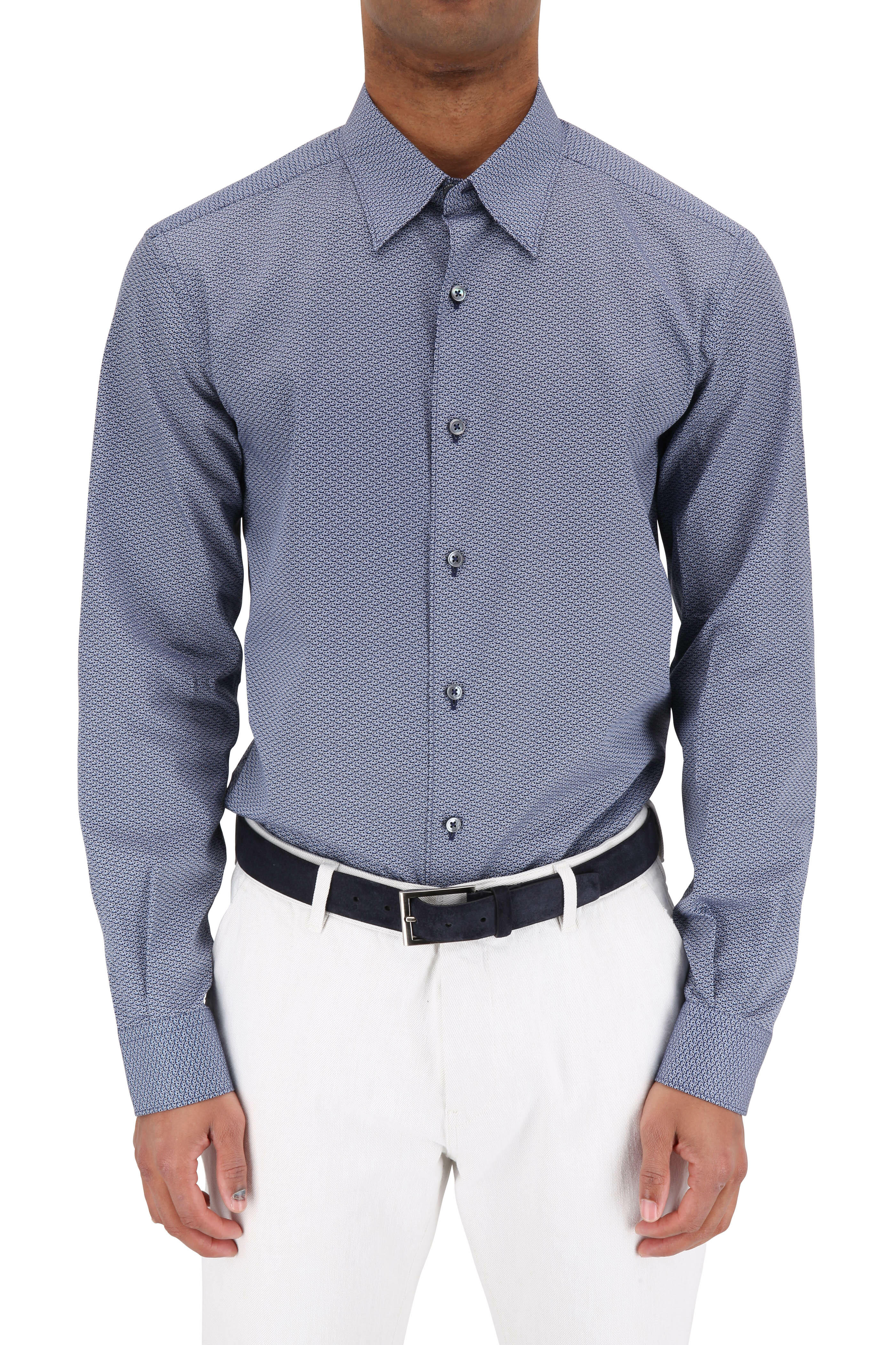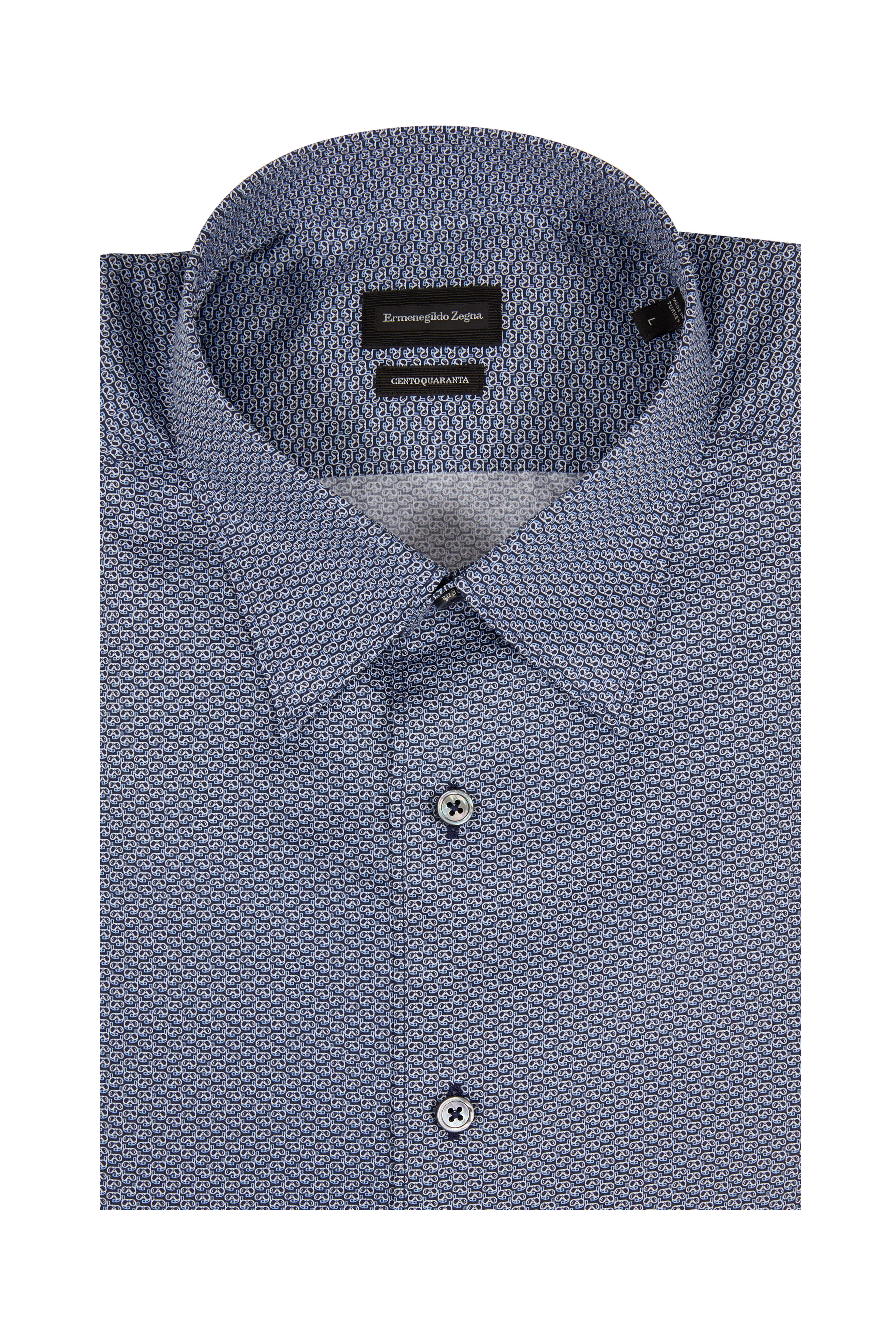 Centoquaranta Navy Blue Geometric Sport Shirt