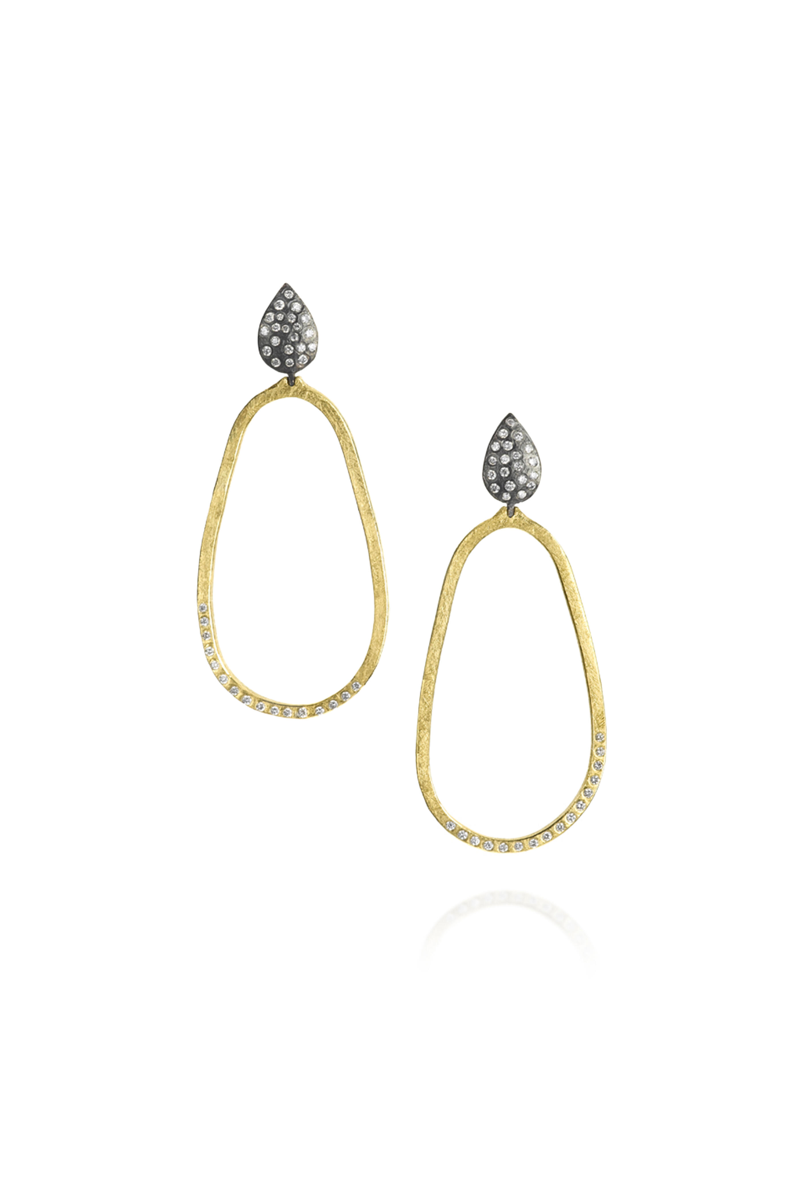 18K Yellow Gold & Silver Diamond Top Hoop Earrings