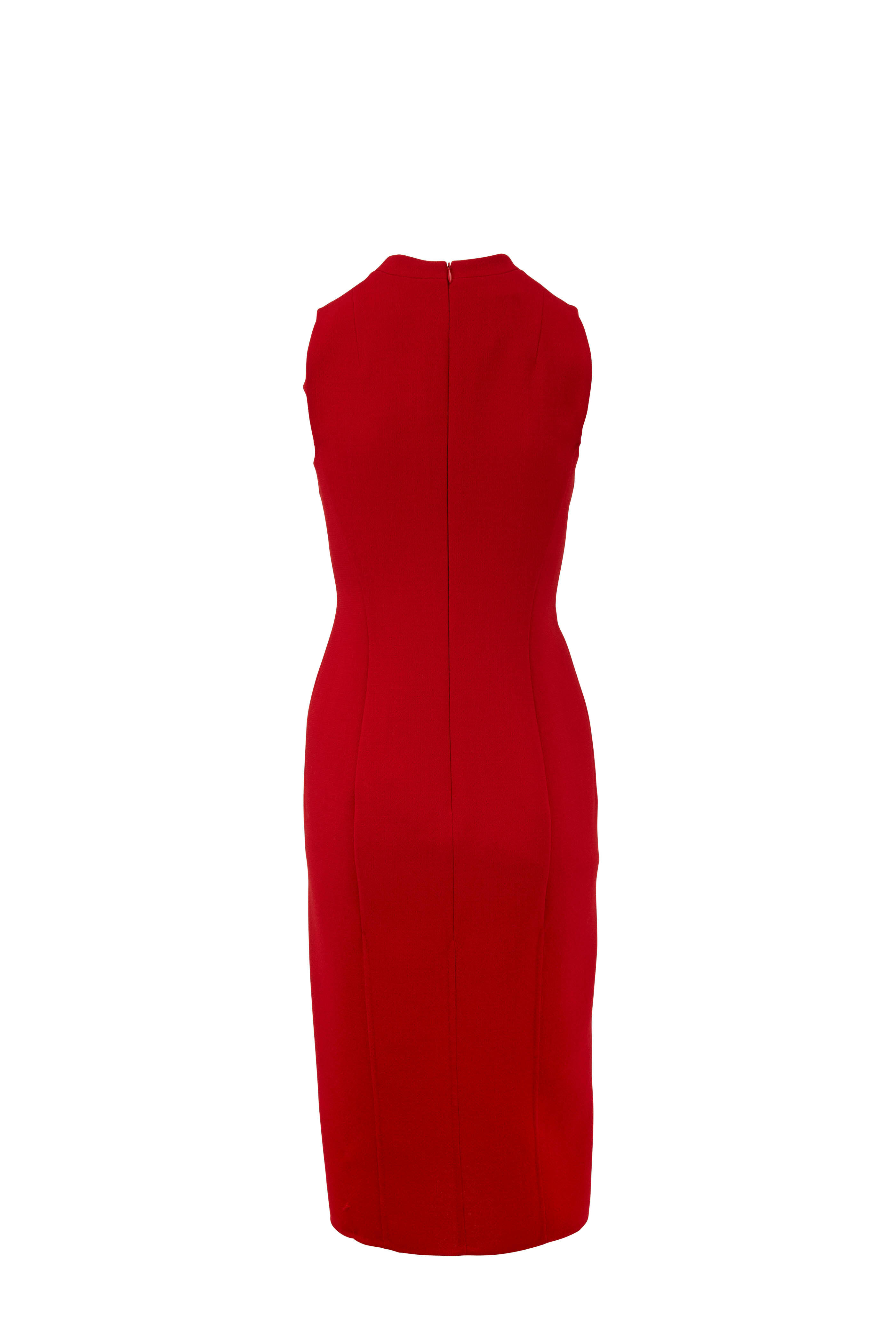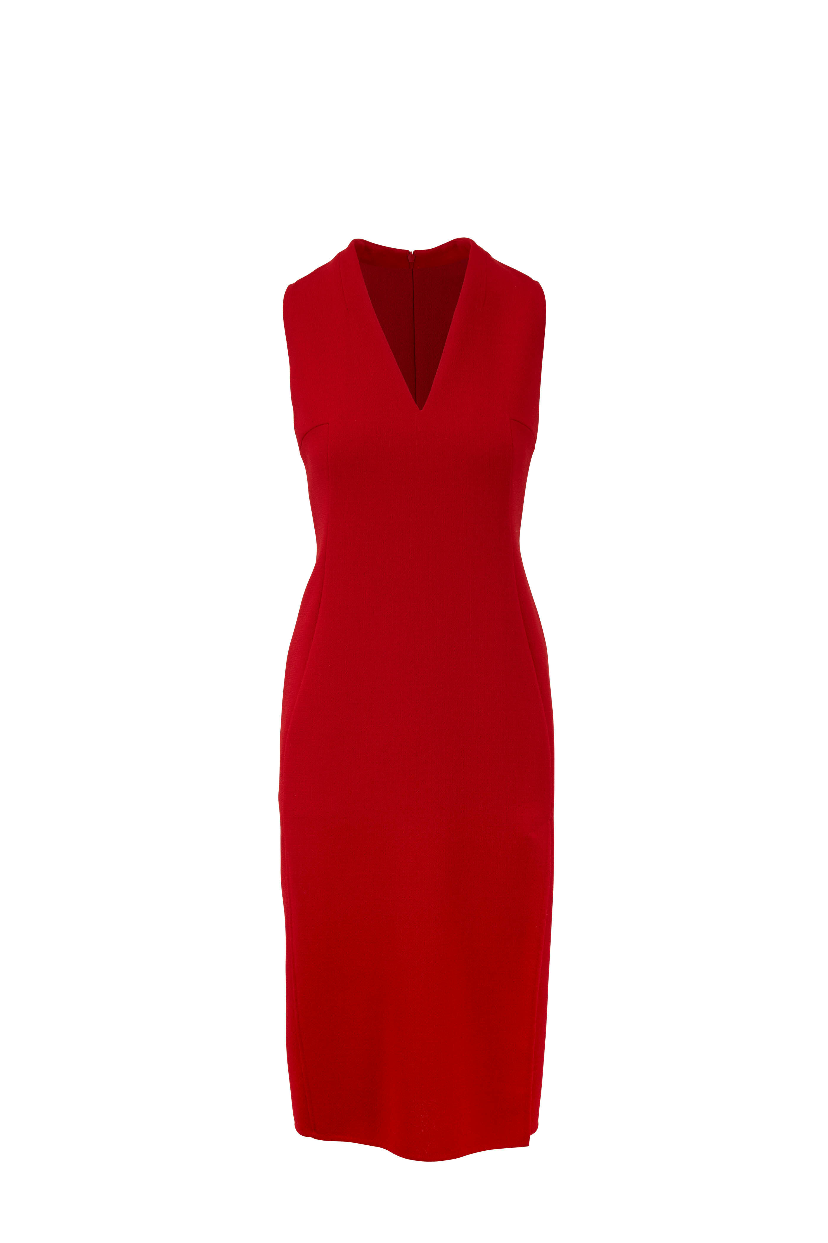 Carmine Red Double-Faced Wool V-Neck Dress