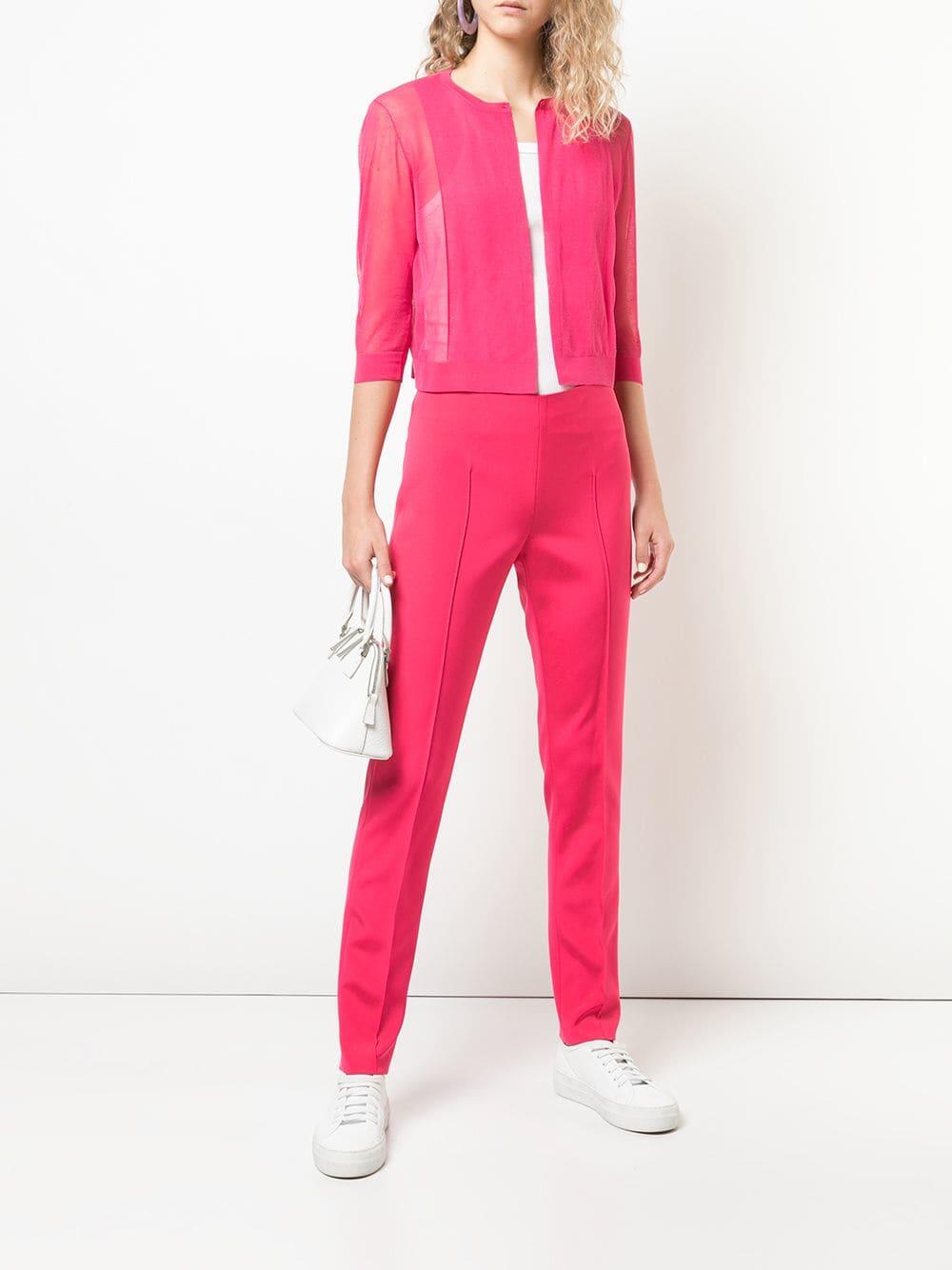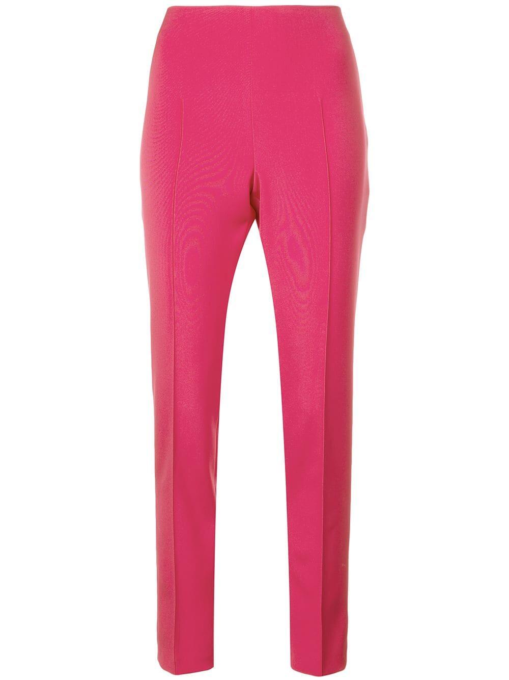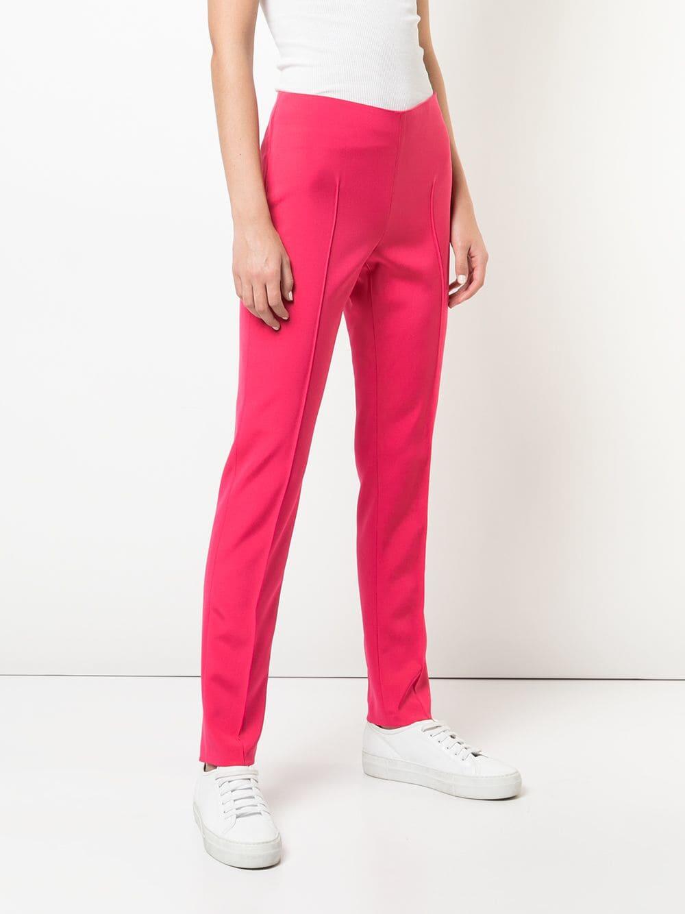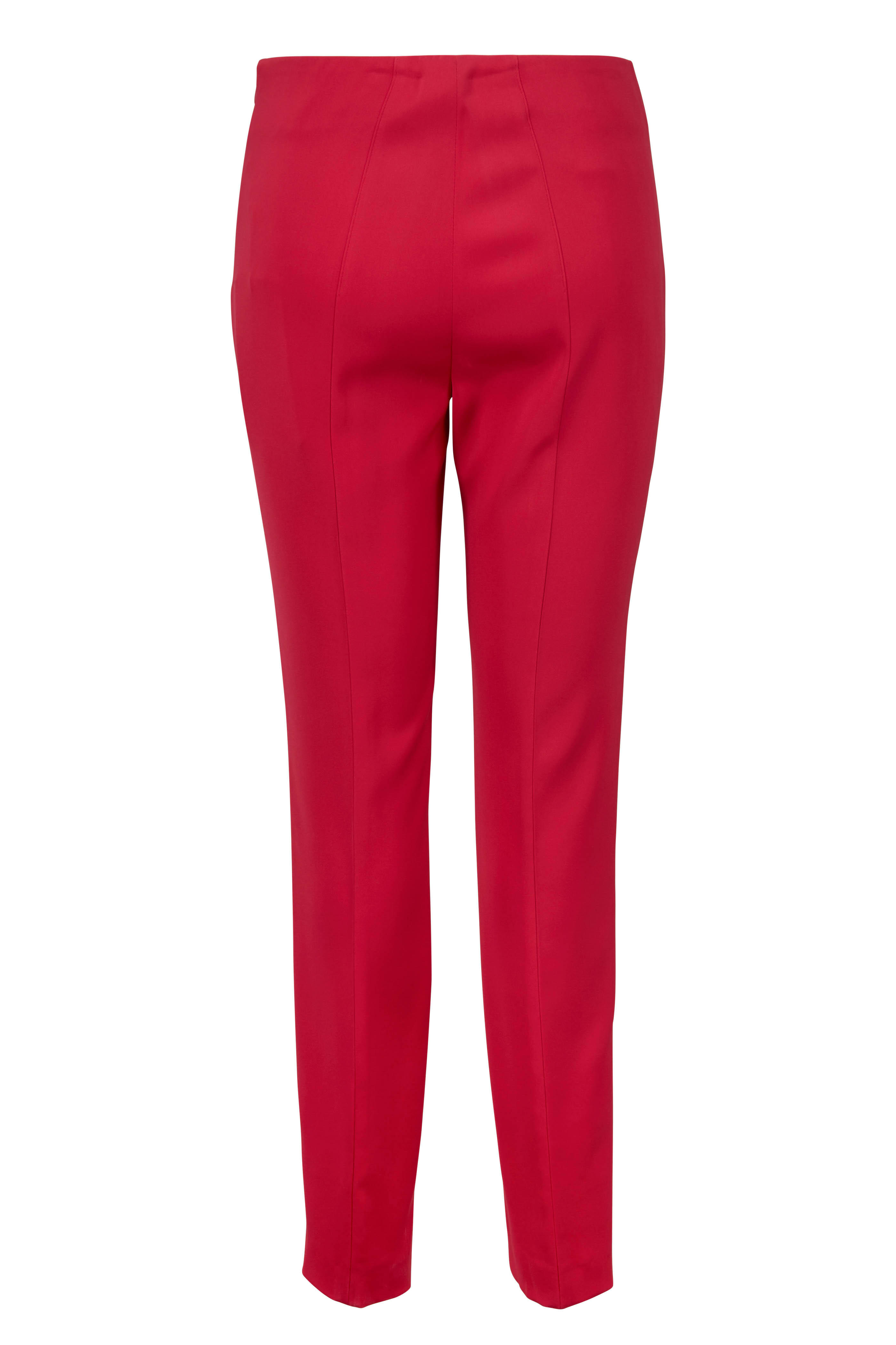 Concealed side zip closure. One side concealed zip pocket. Raised seam detailing. Imported. Tapered slim fit. 29" inseam. 96% mulberry silk, 4% elastane. Dry clean.