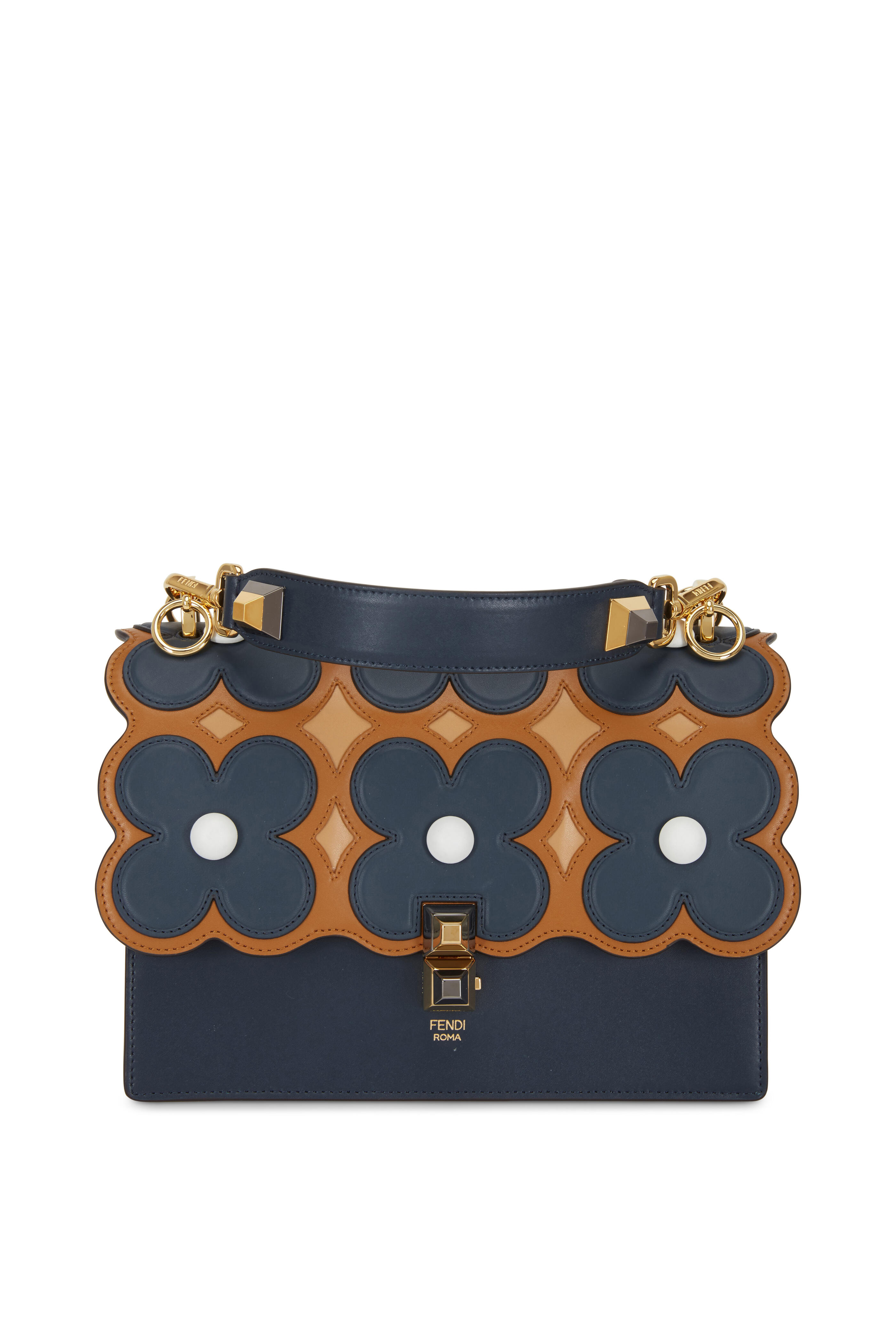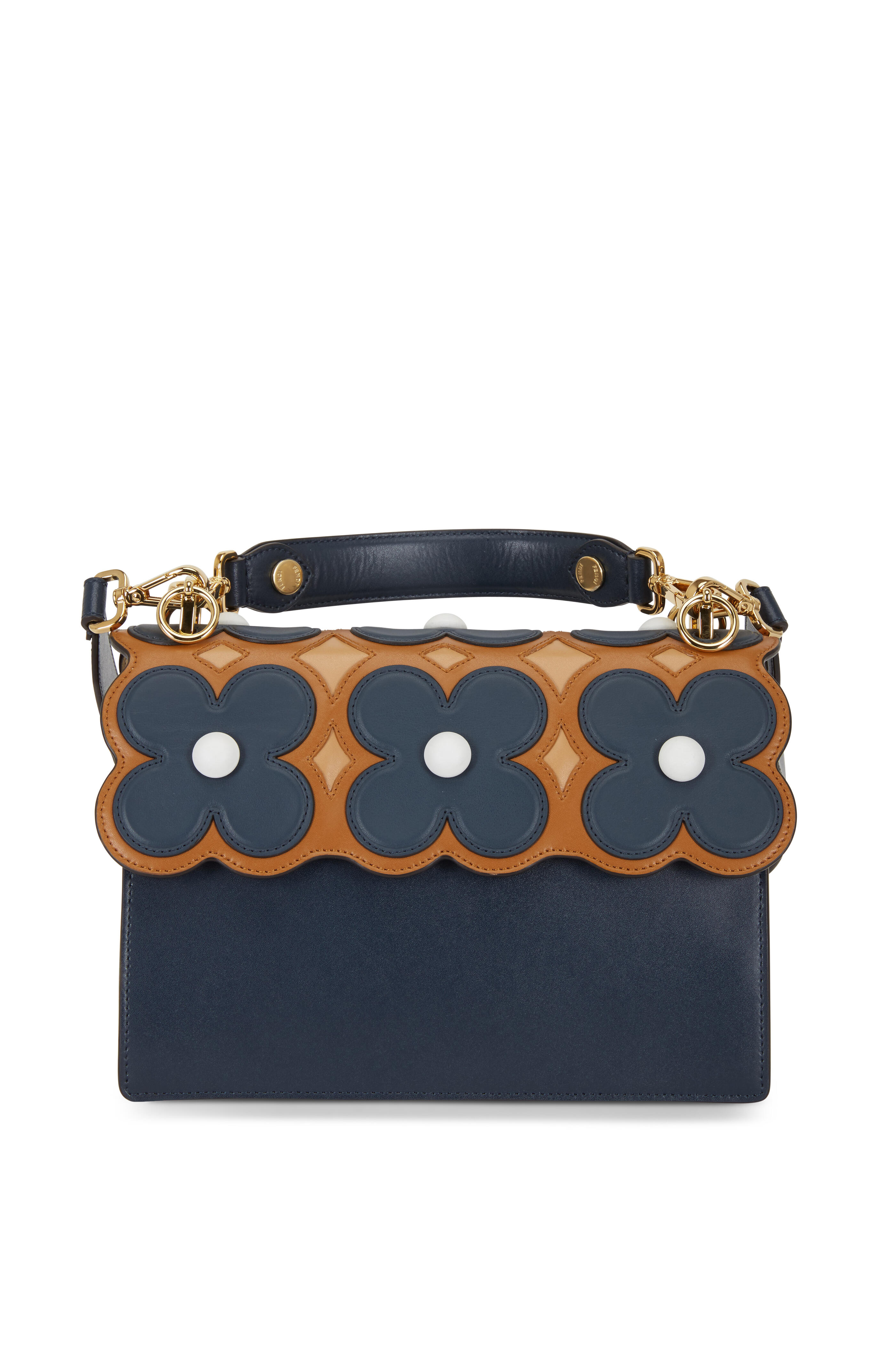 Kan I Navy Blue & Caramel Floral Scalloped Bag