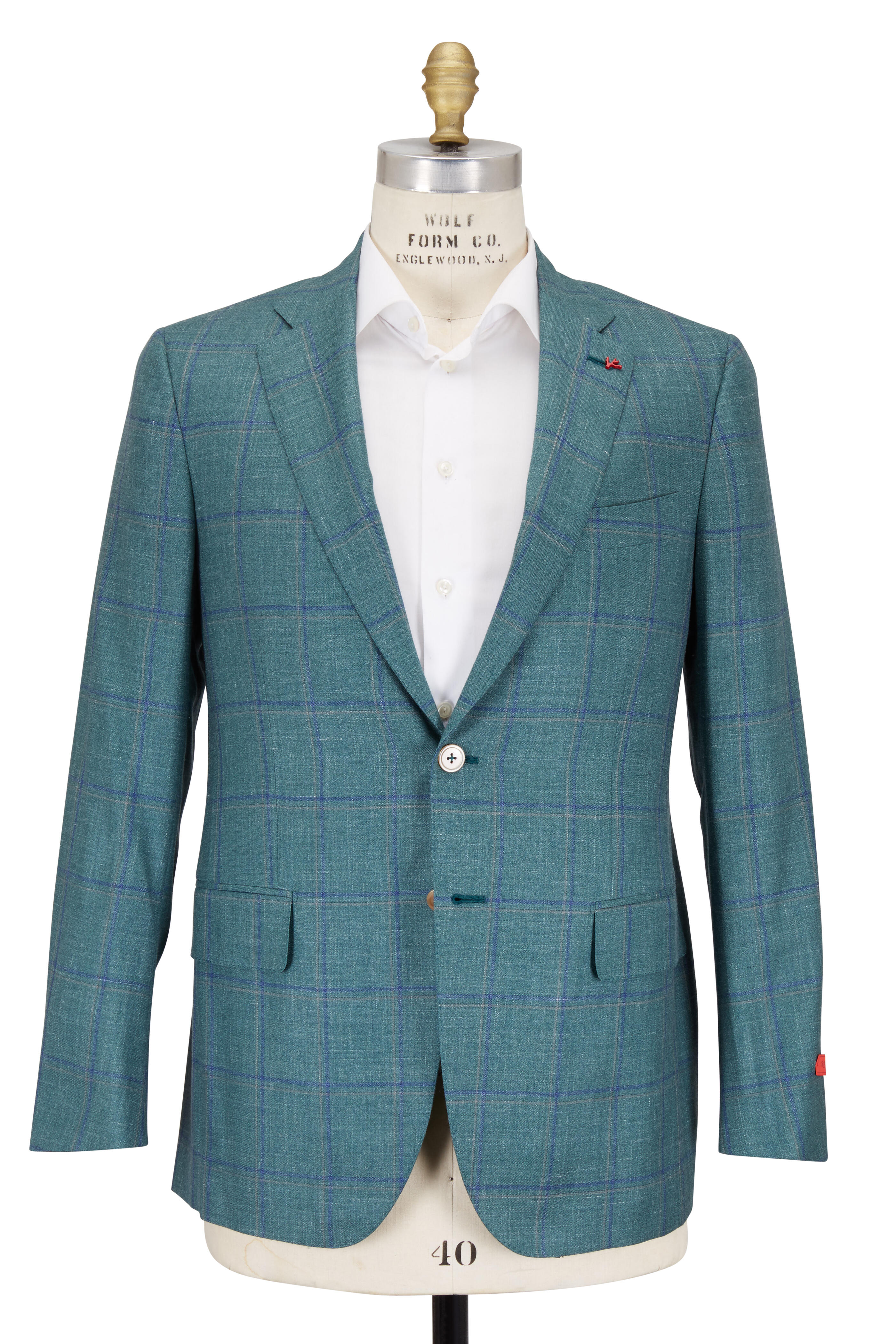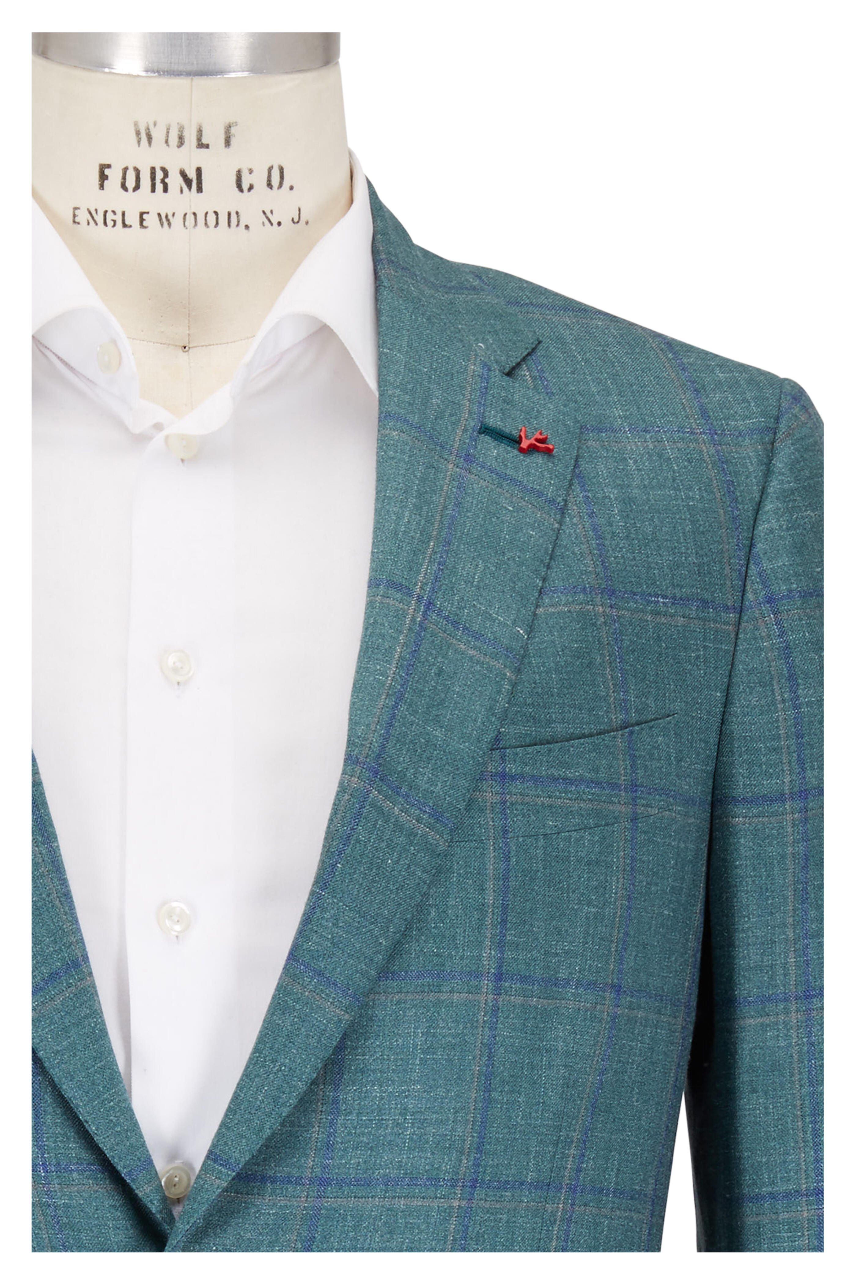 Green Plaid Wool, Cashmere, Silk & Linen Sportcoat