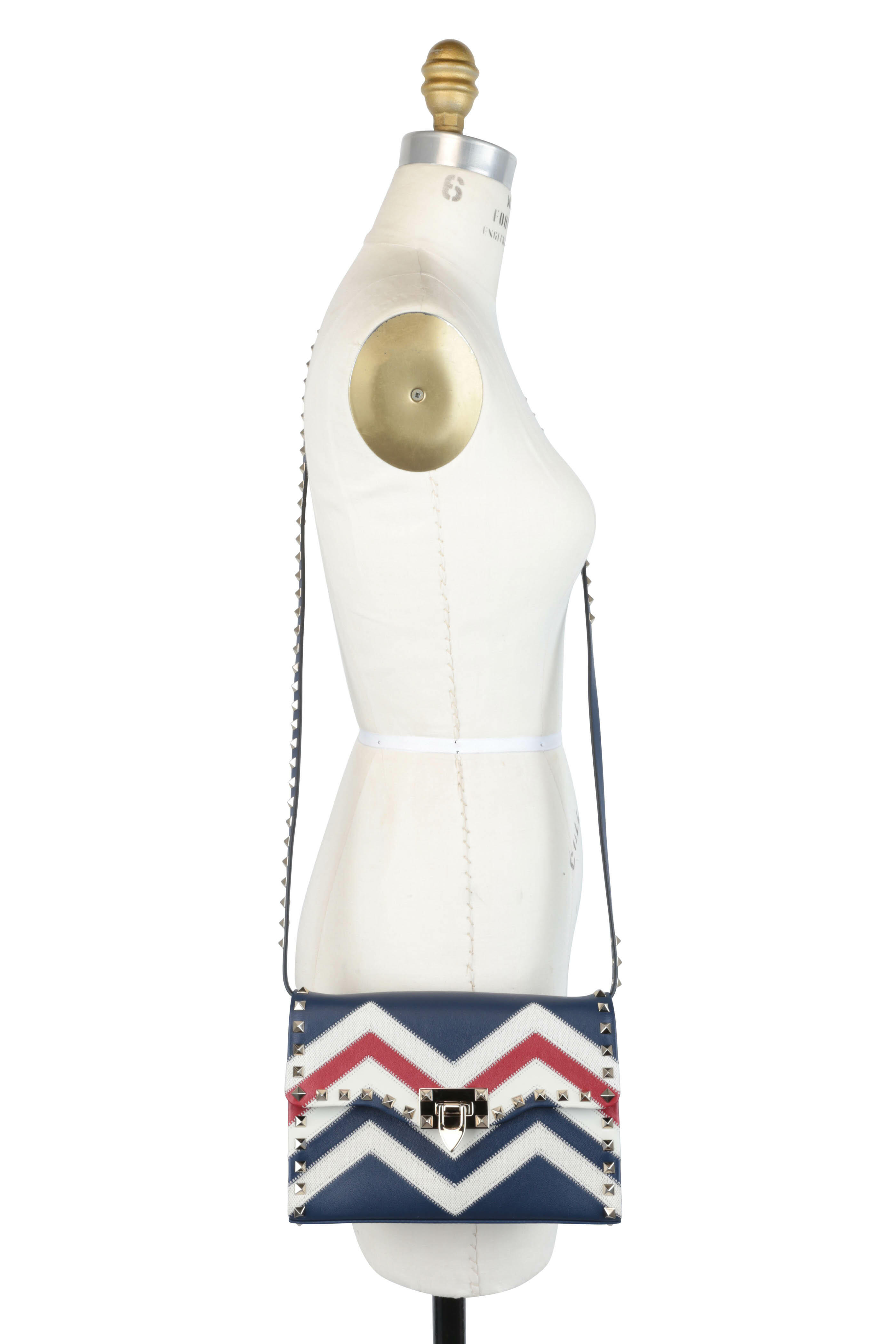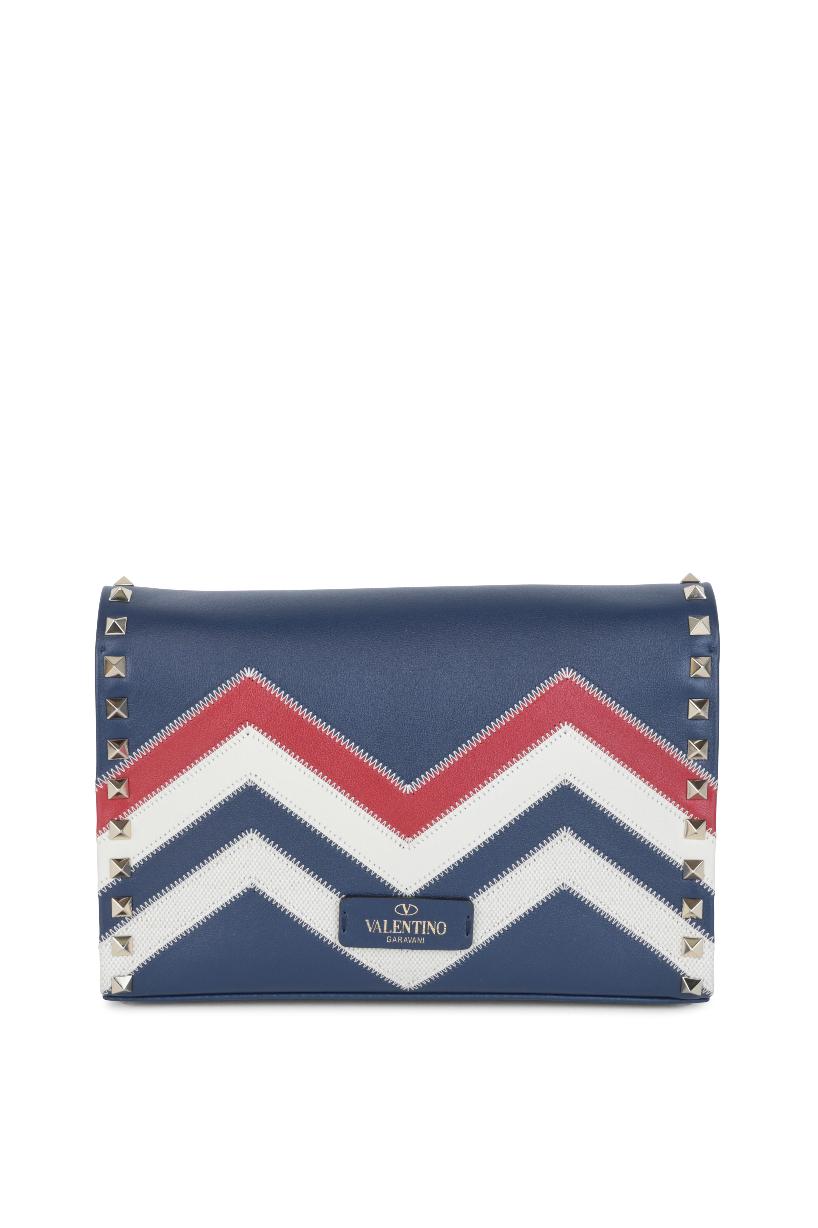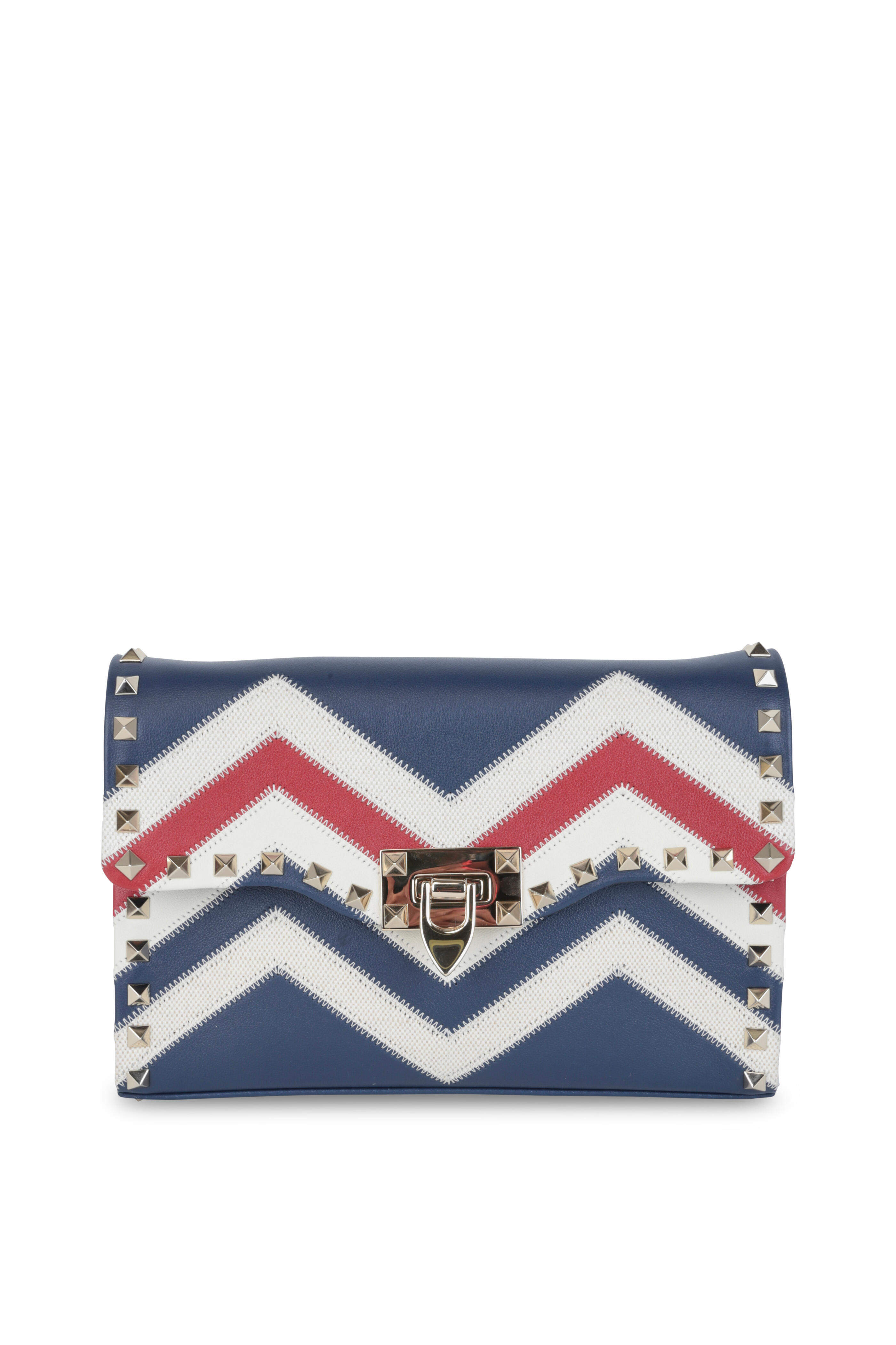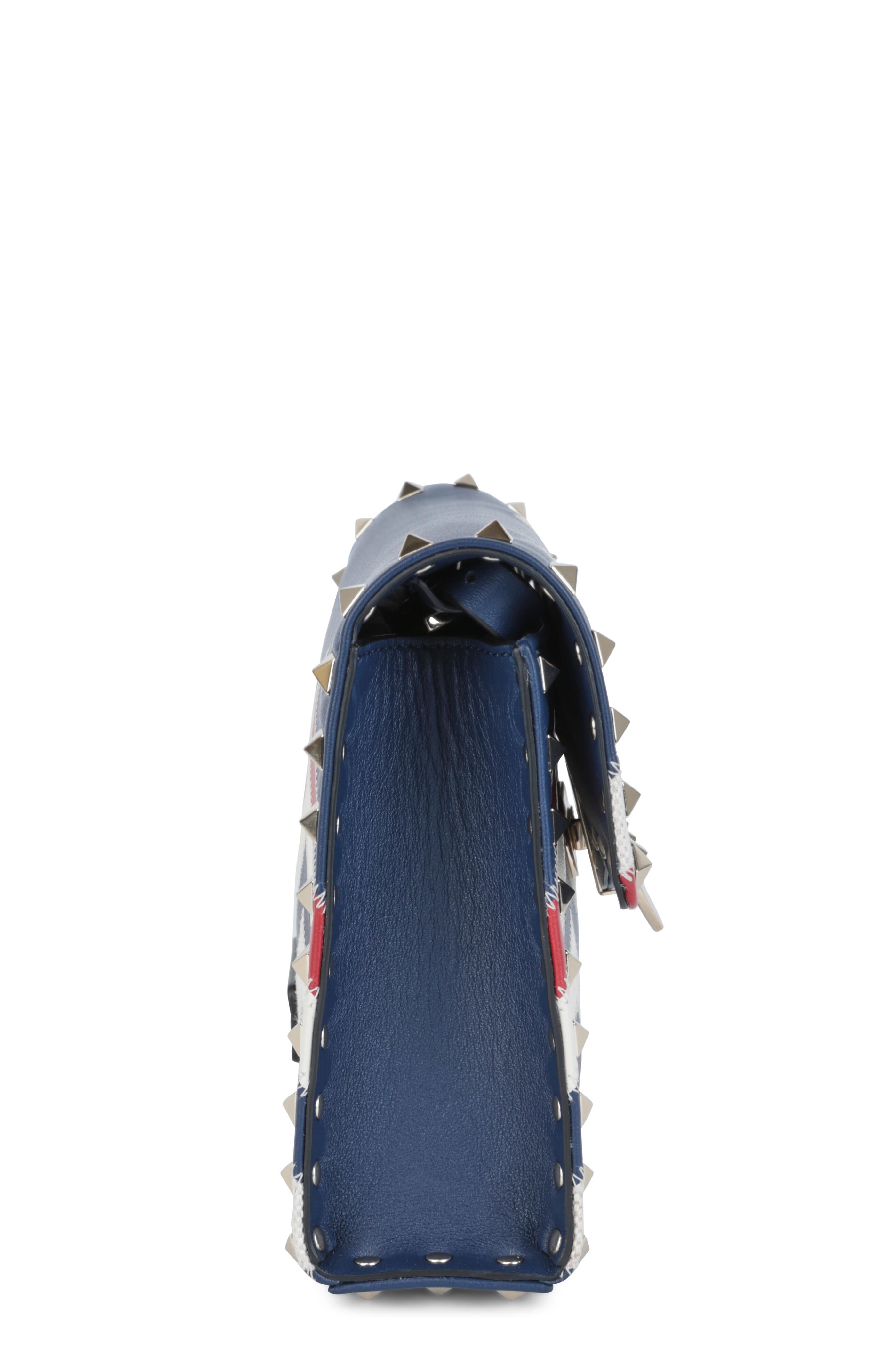 Rockstud Blue, Ivory & Red Leather Shoulder Bag