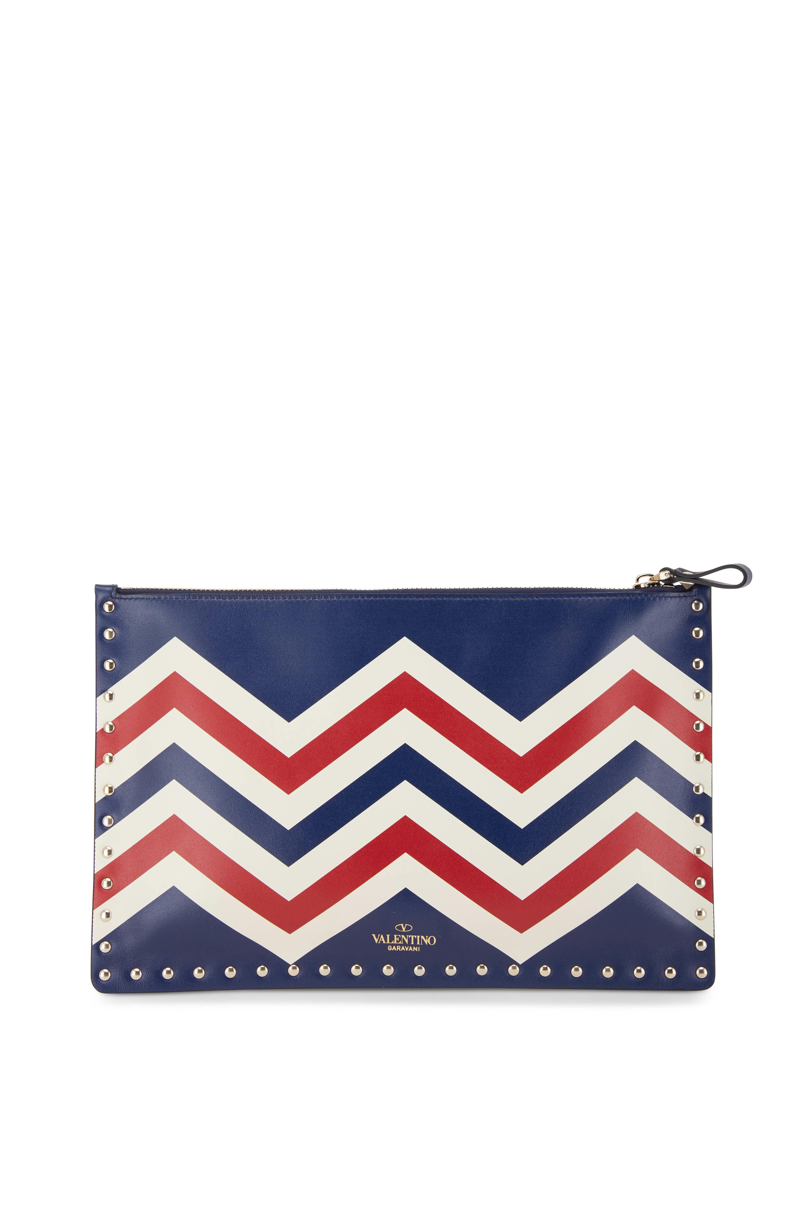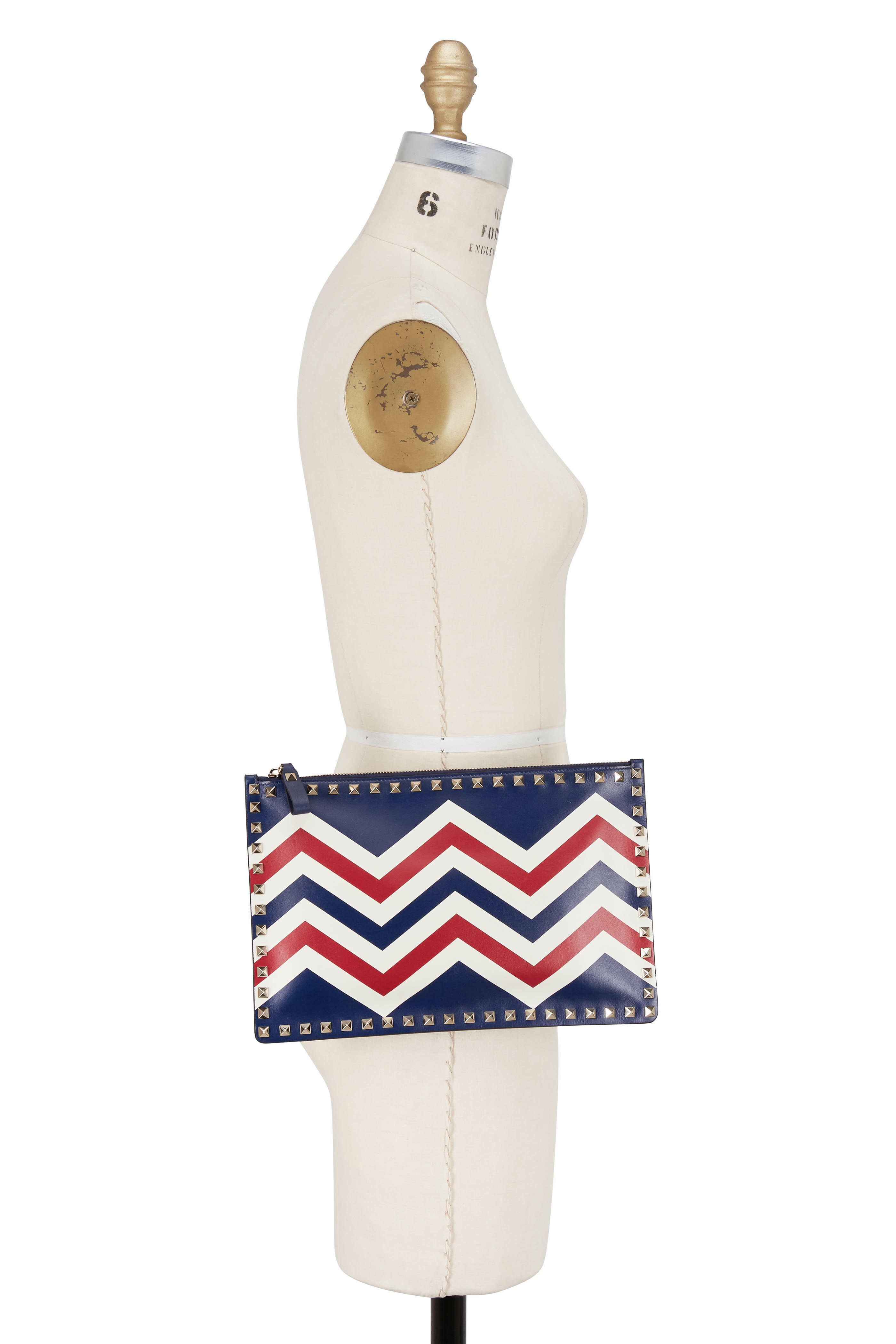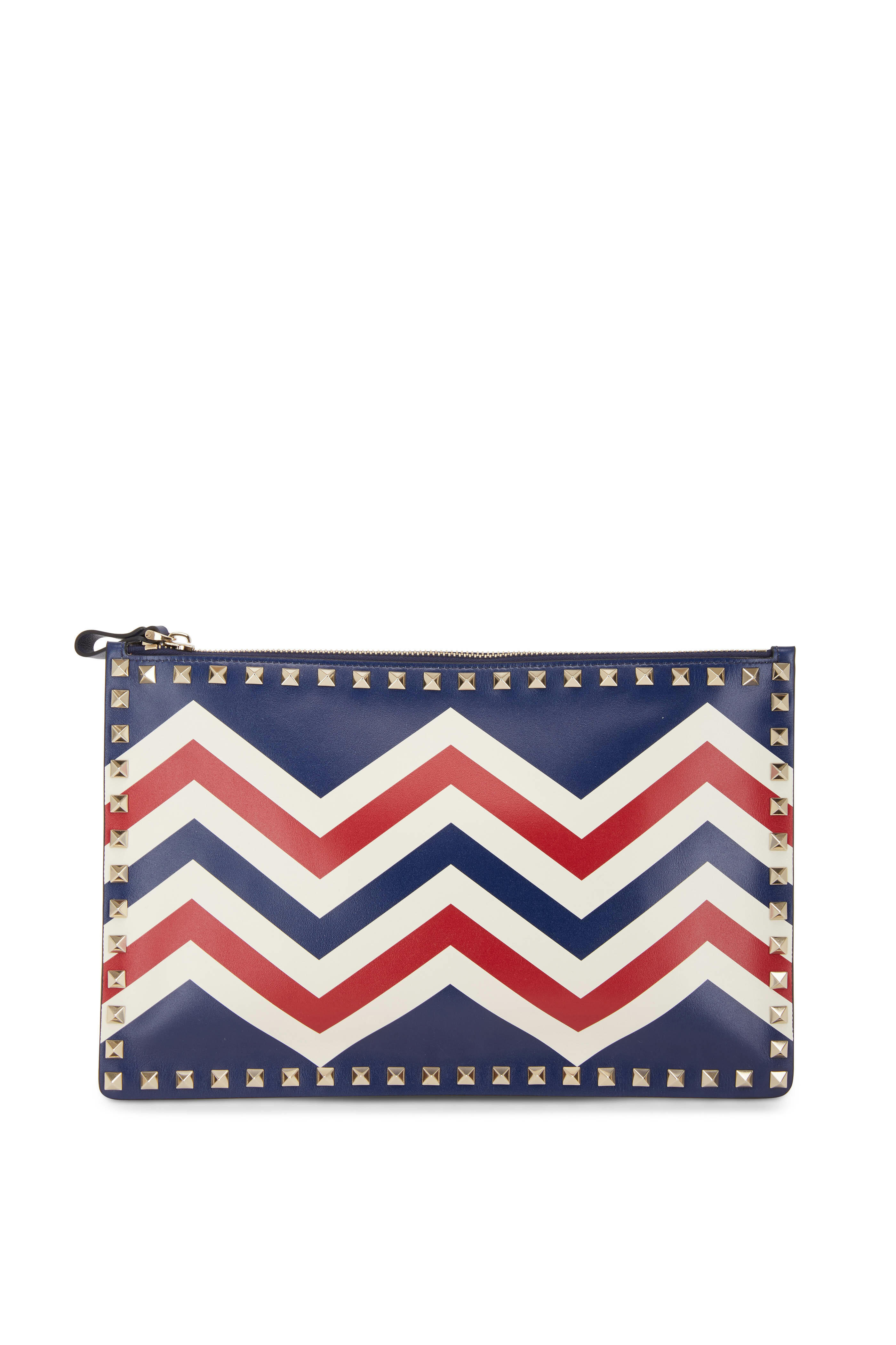 Rockstud Blue & Ivory & Red Chevron Large Pouch
