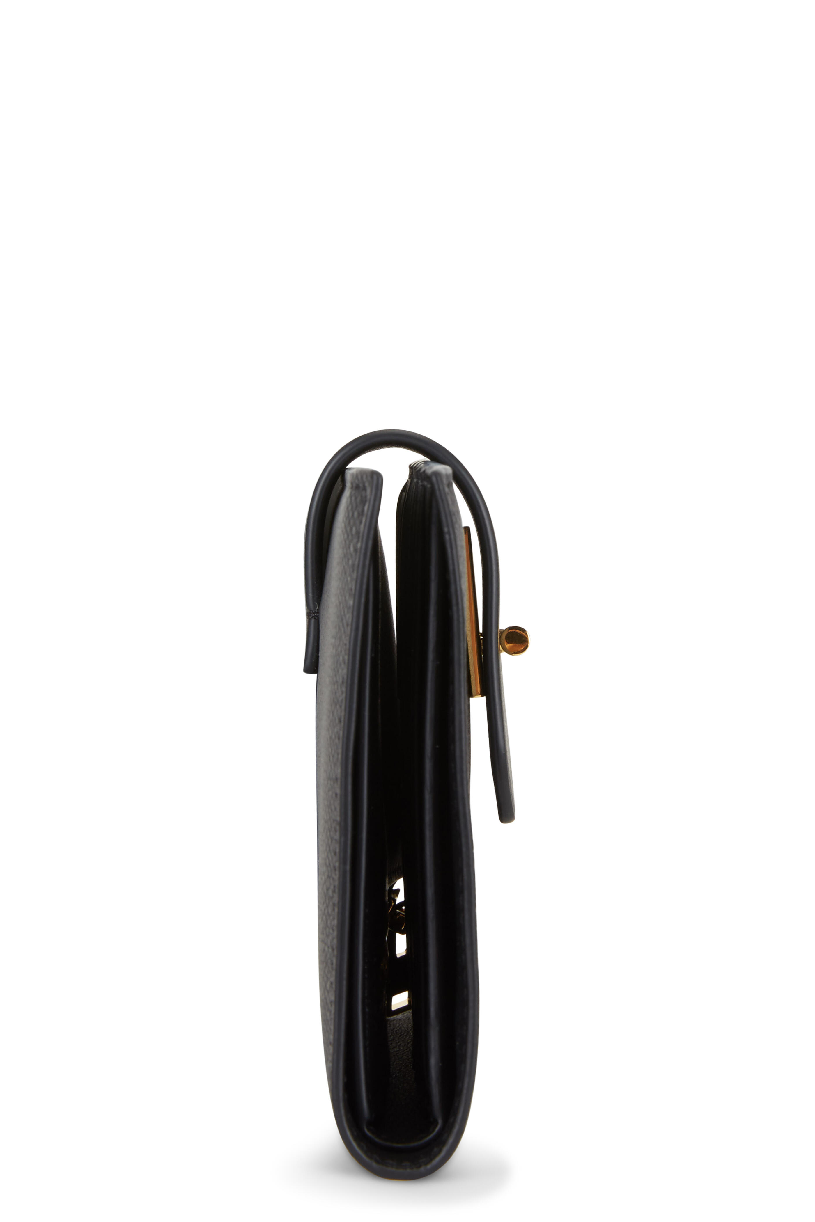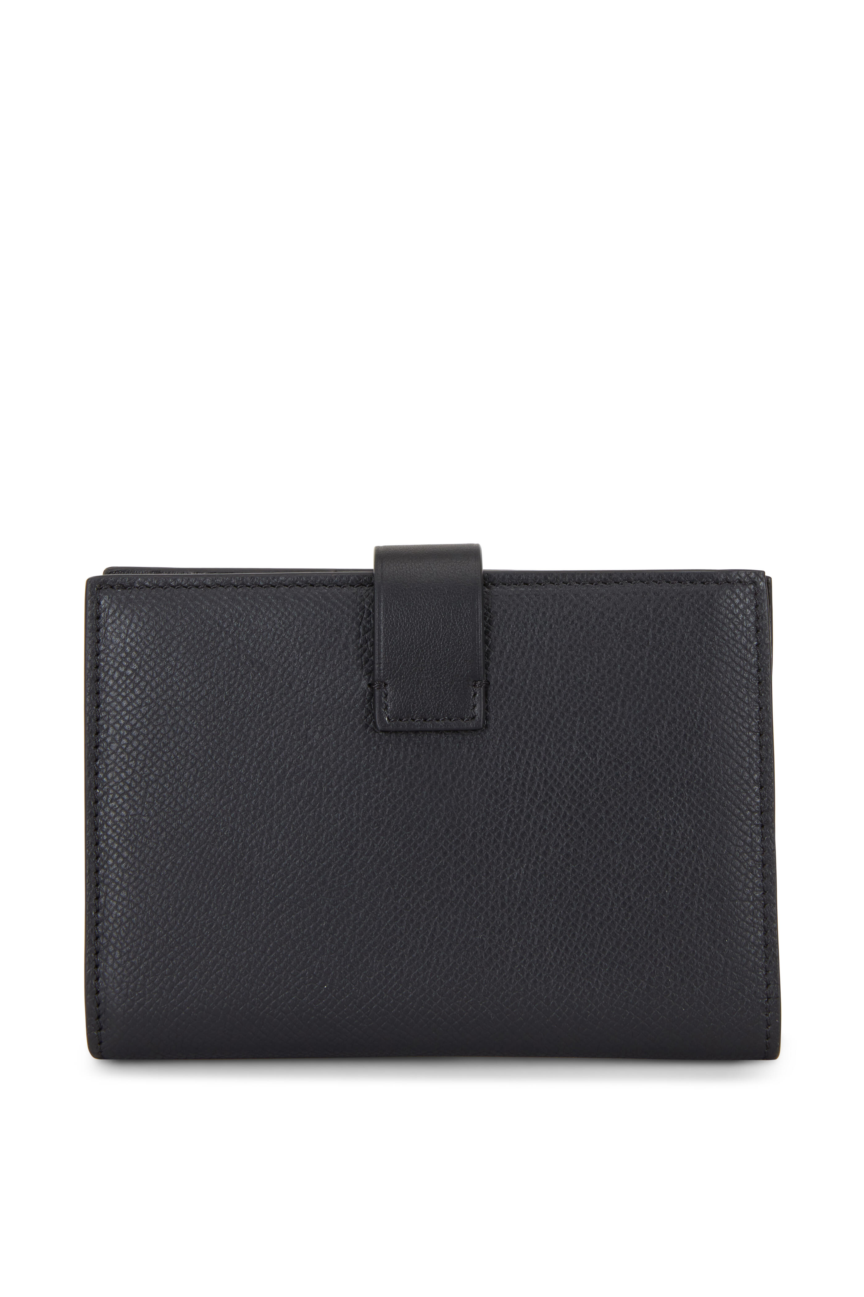 Tara Black Grained Leather Fold-Over Wallet
