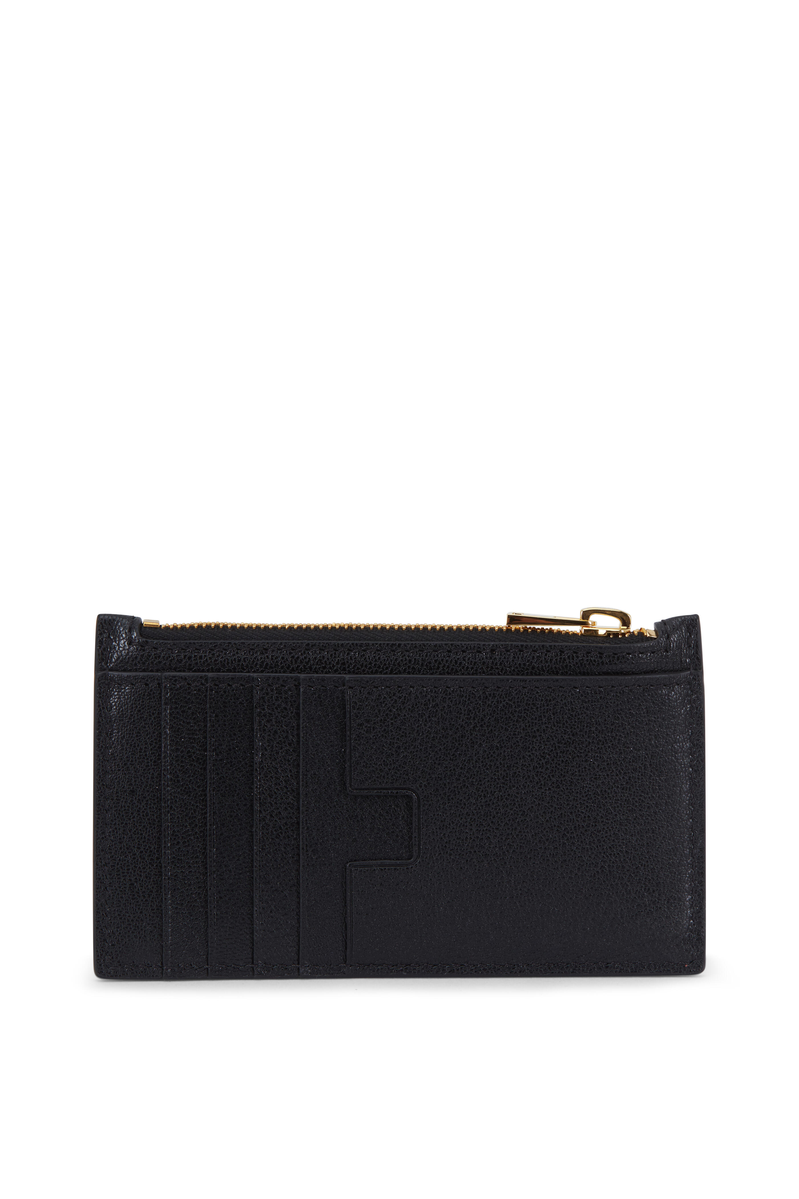 Black Leather Slim Zip Card Holder
