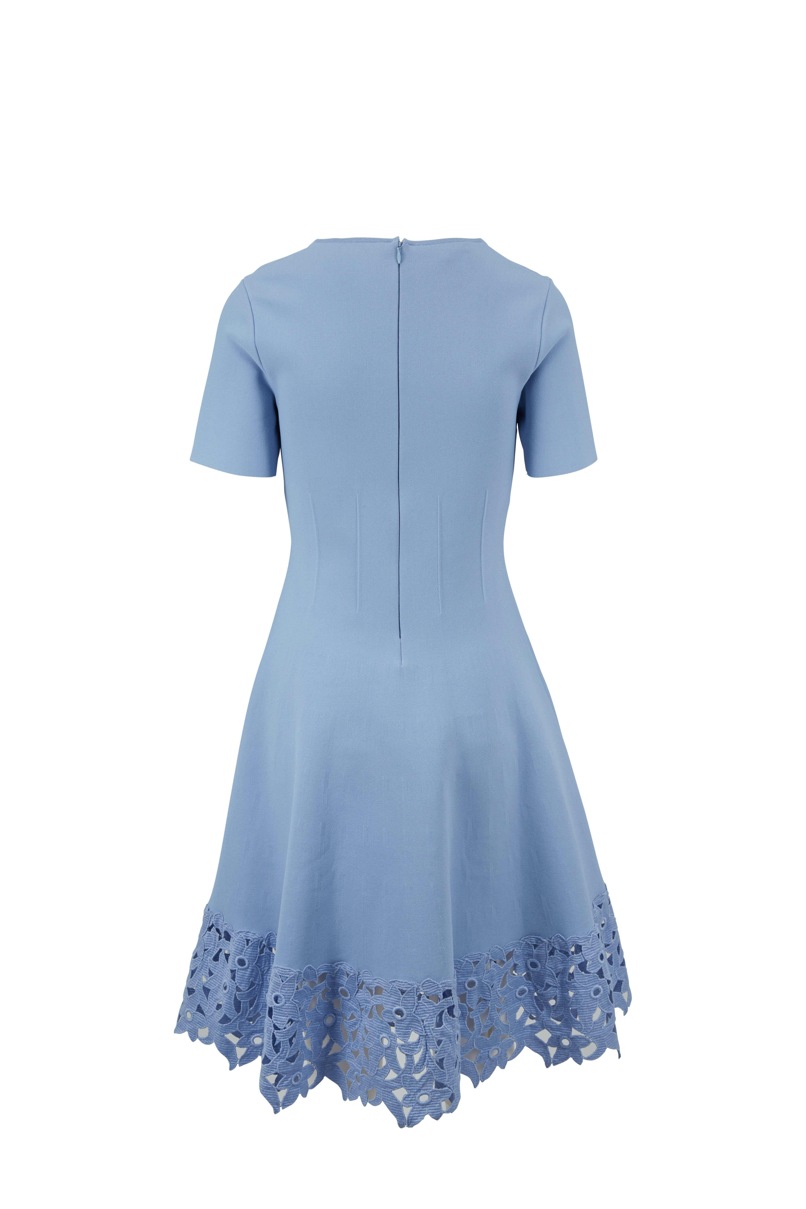 Square neckline. Concealed back zip. Lace hem. Made in Italy. 41" shoulder to hem. 65% viscose, 20% polyamide, 13% polyester, 2% elastane. Dry clean.