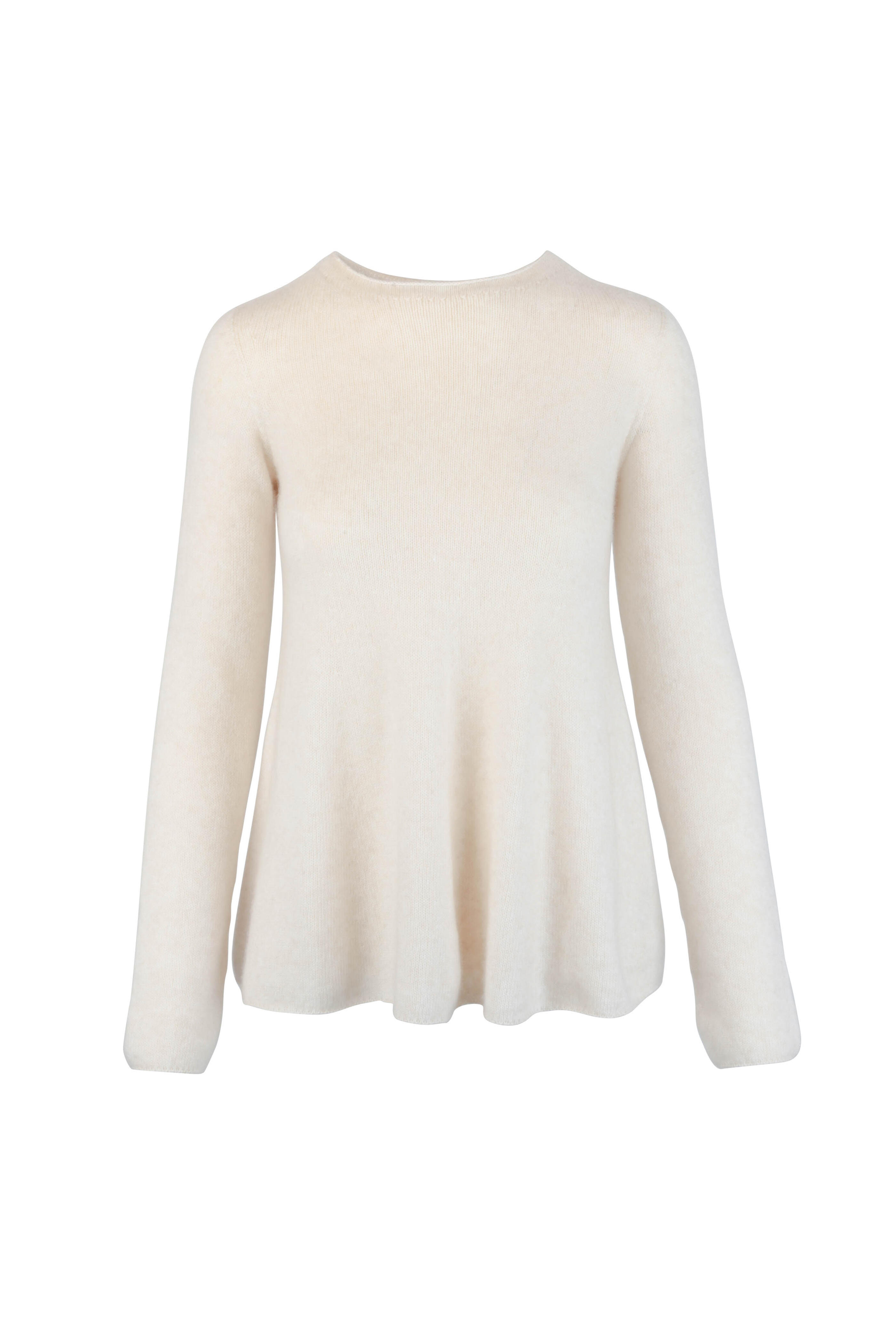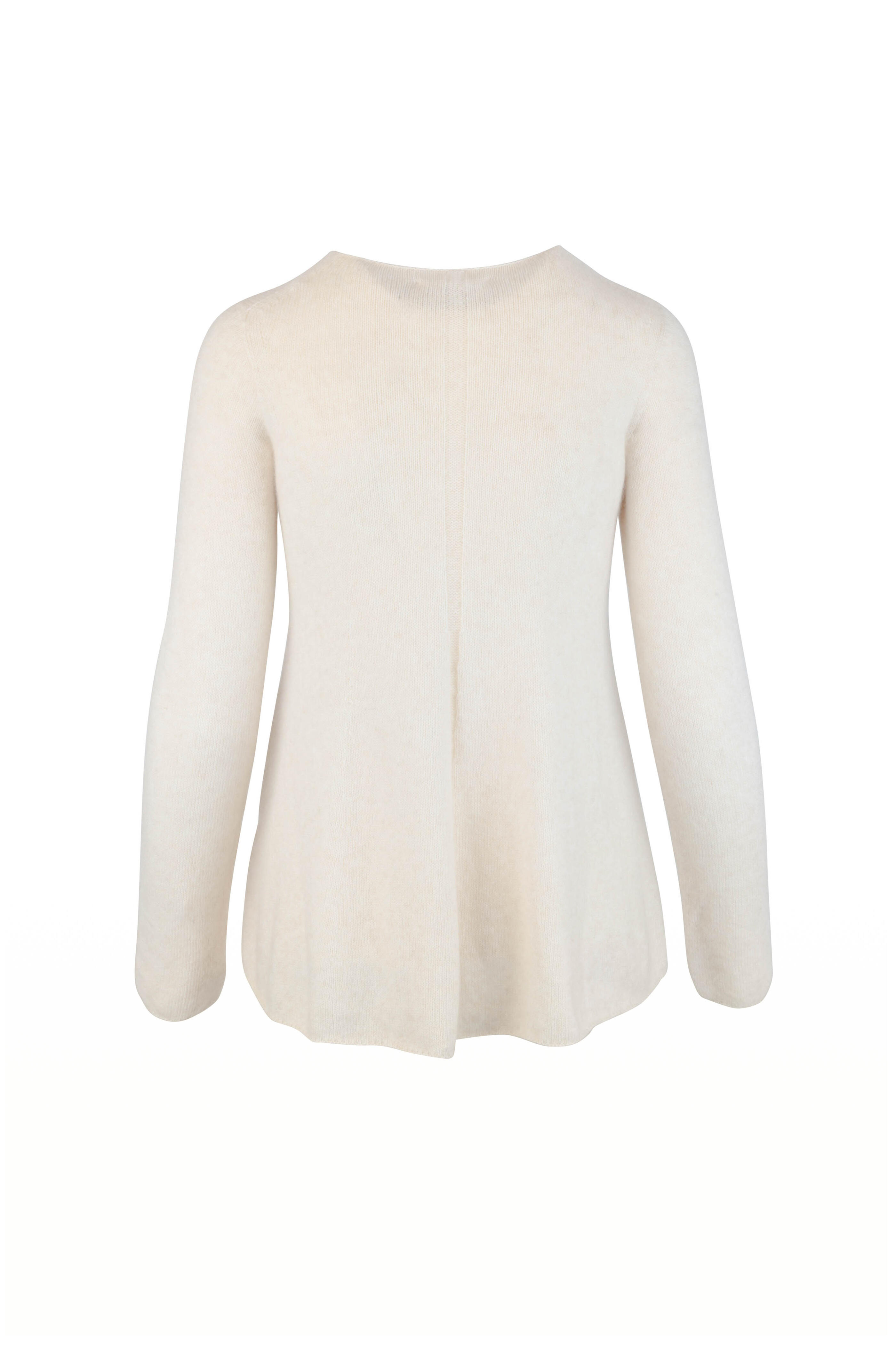 Round neckline. Straight hem. Made in the USA. 52% cashmere, 48% polyamide. Dry clean.