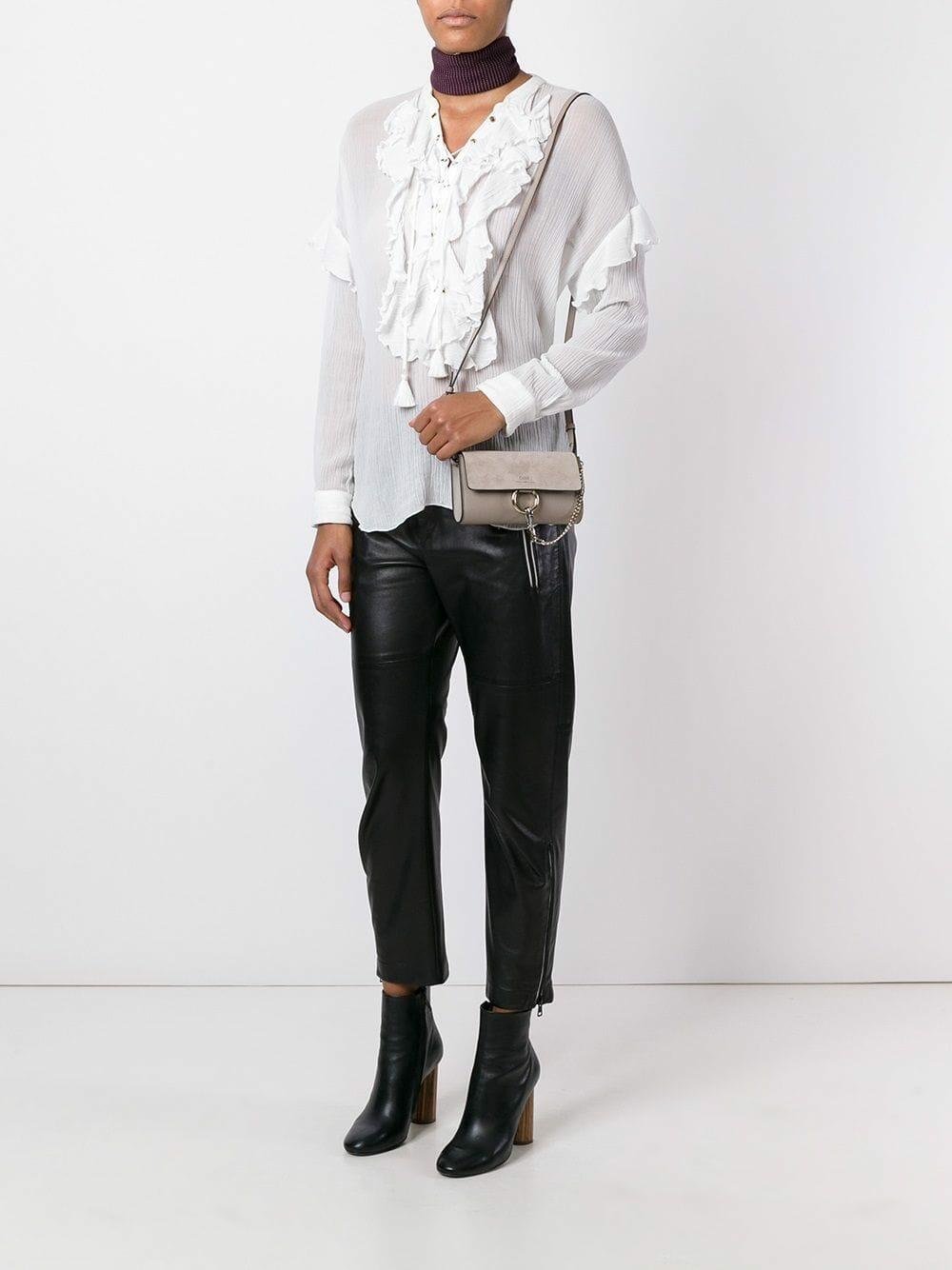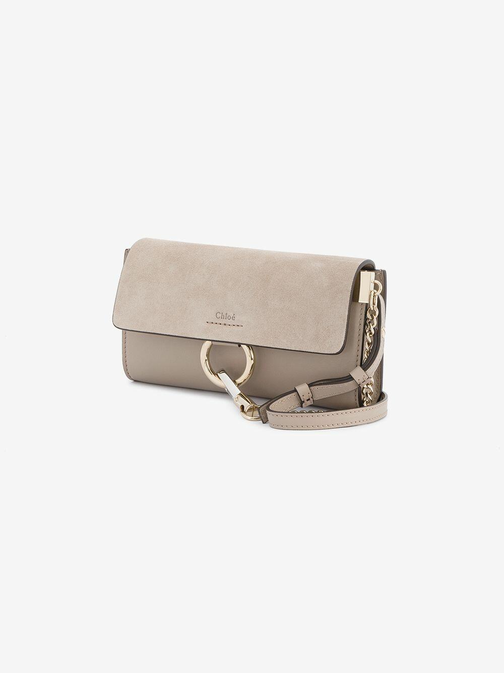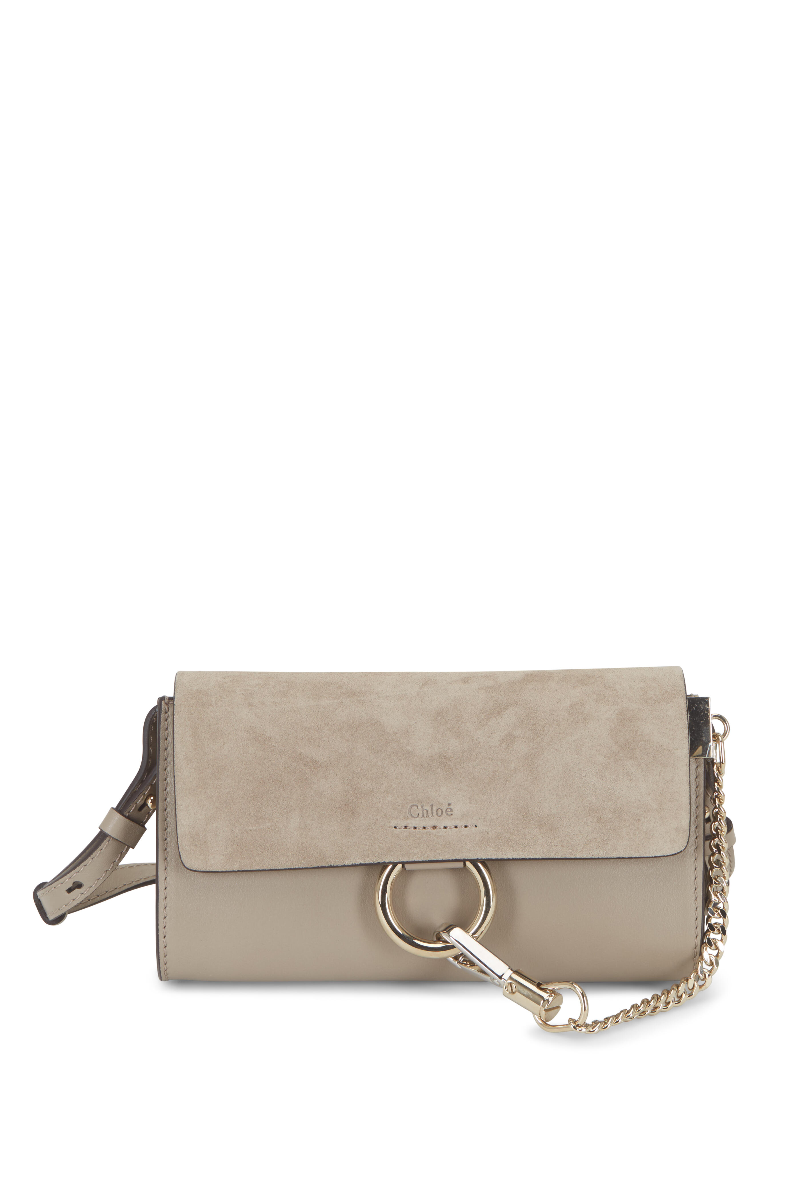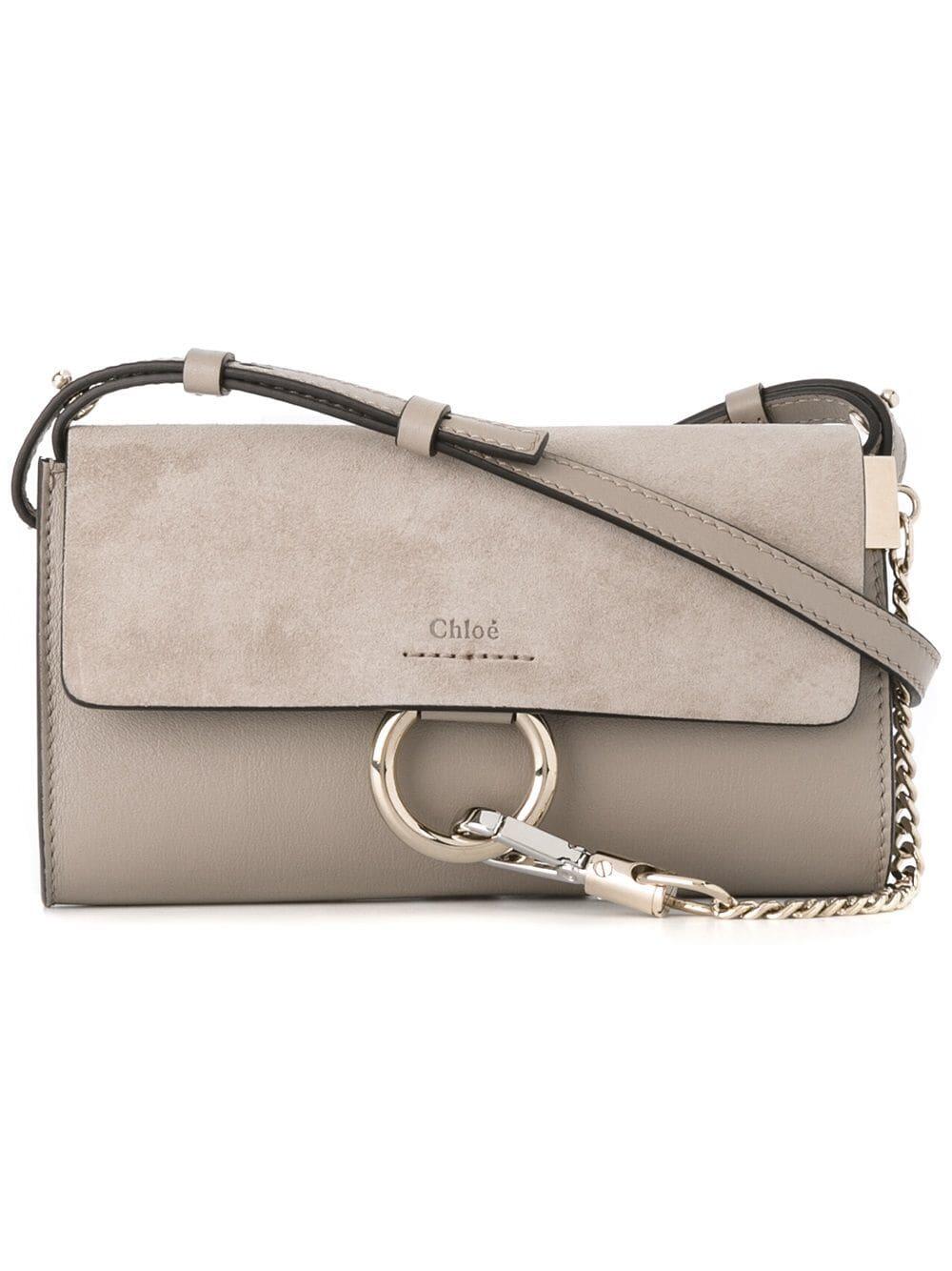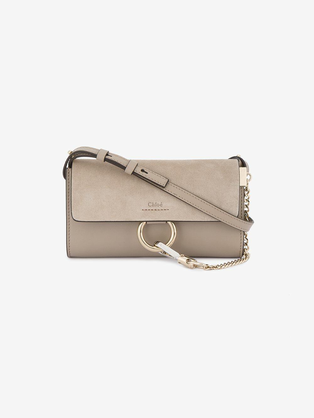 Faye Nano Gray Leather & Suede Mini Crossbody