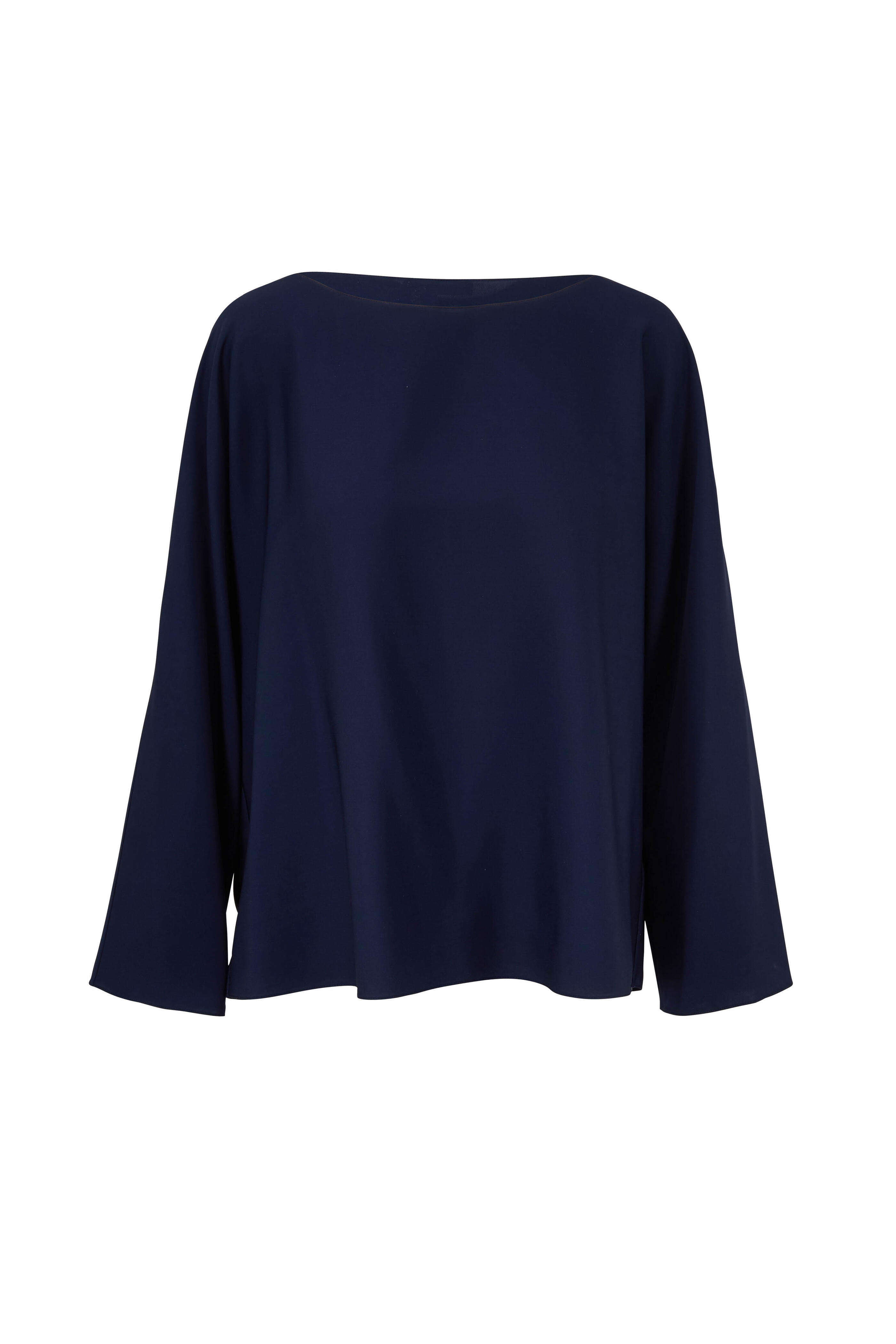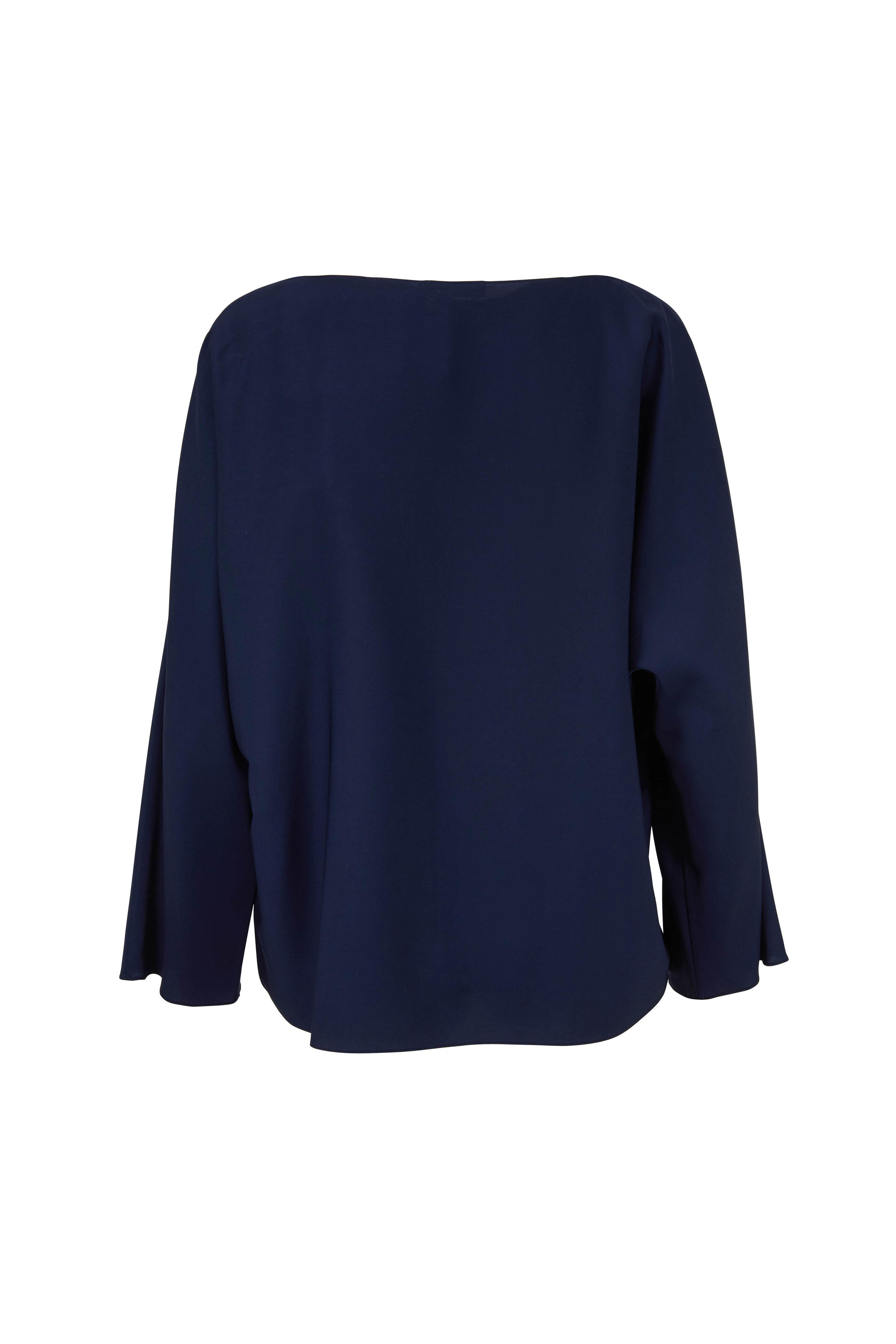 • The Row - Dylia Dark Navy Stretch Silk Bateau Neck Blouse