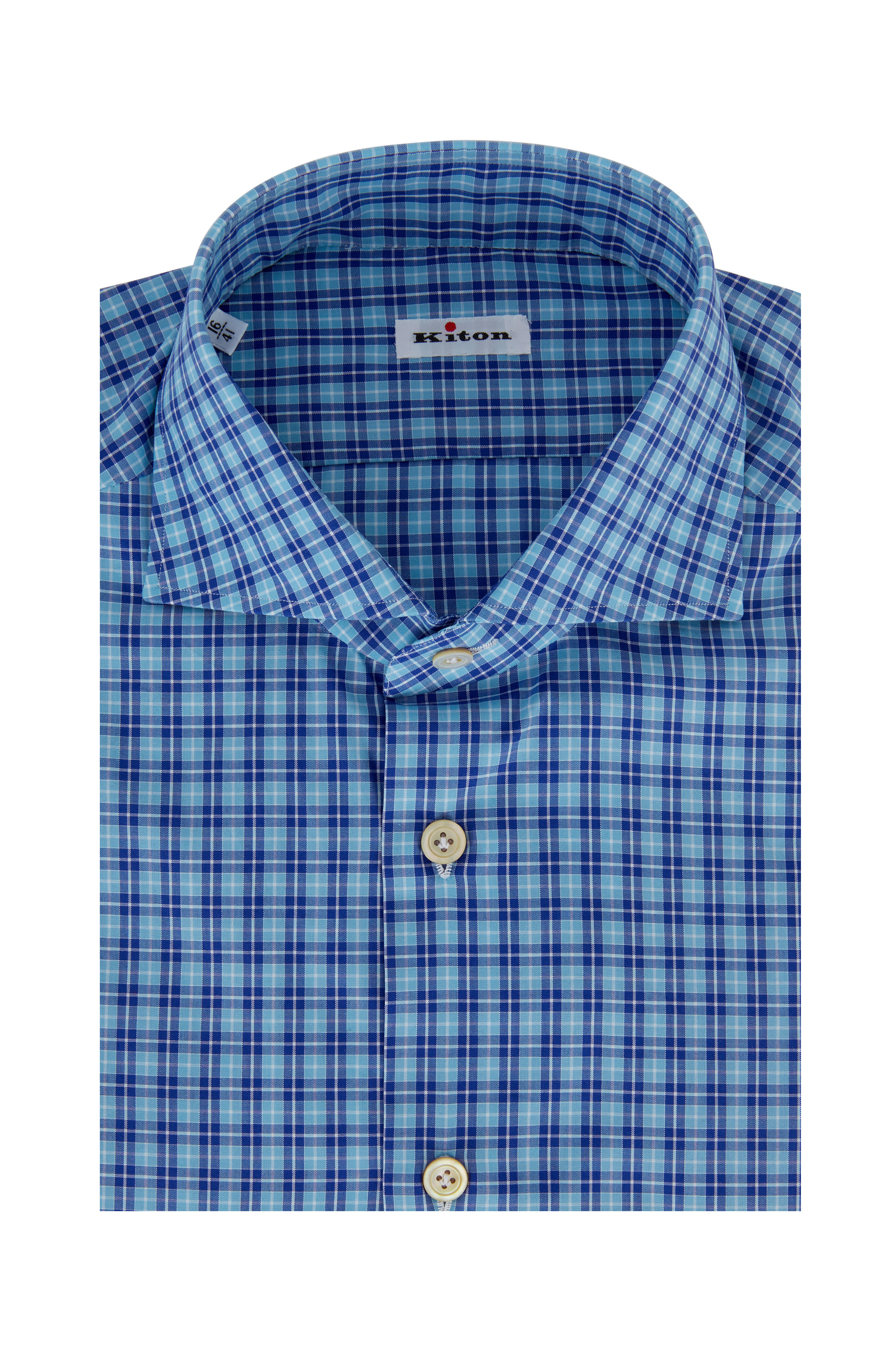 Spread collar. Chest pocket. Single button mitered cuffs. Made in Italy. 100% cotton. Dry clean.