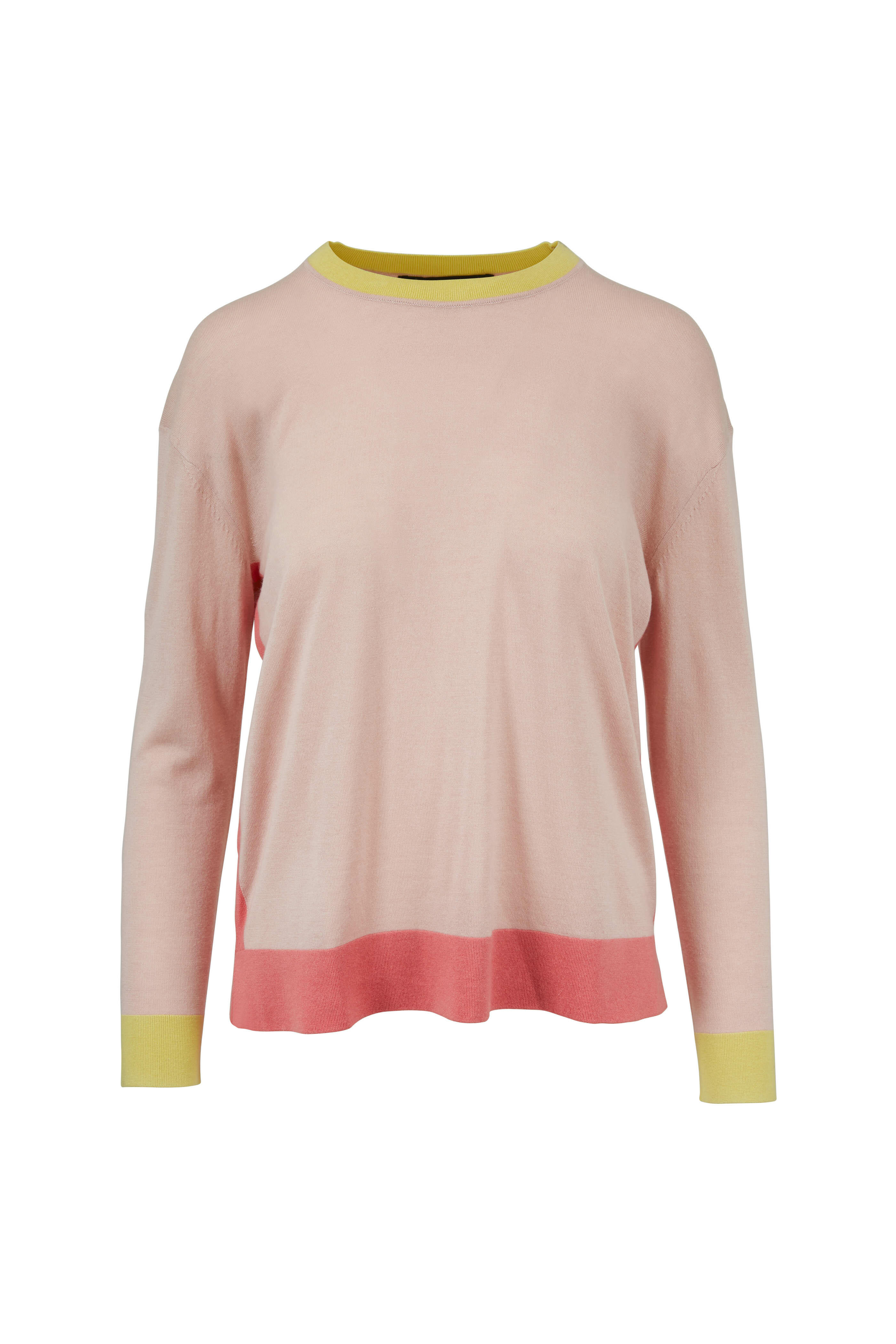 Powder Pink Bi-Color Silk & Cashmere Sweater