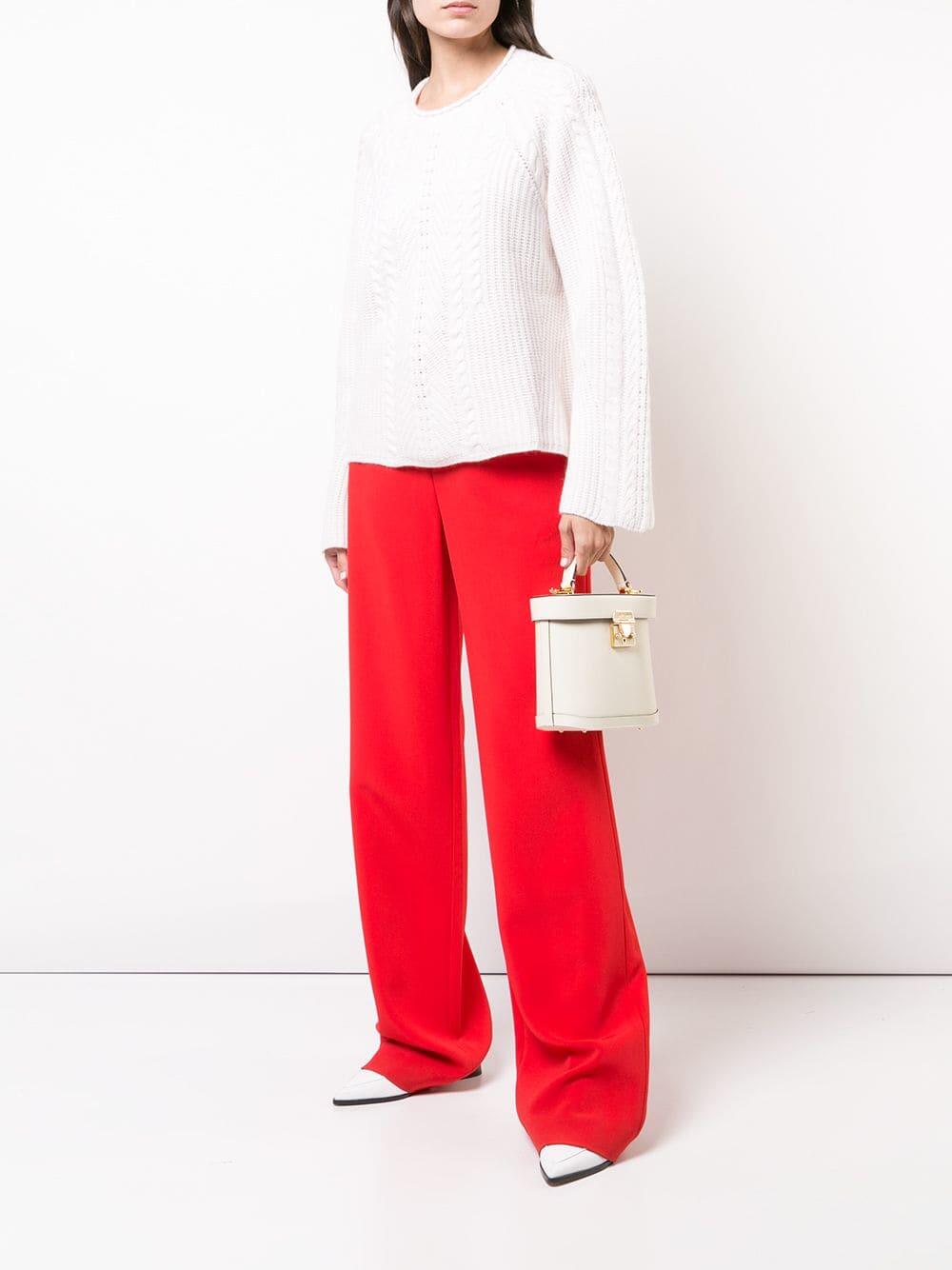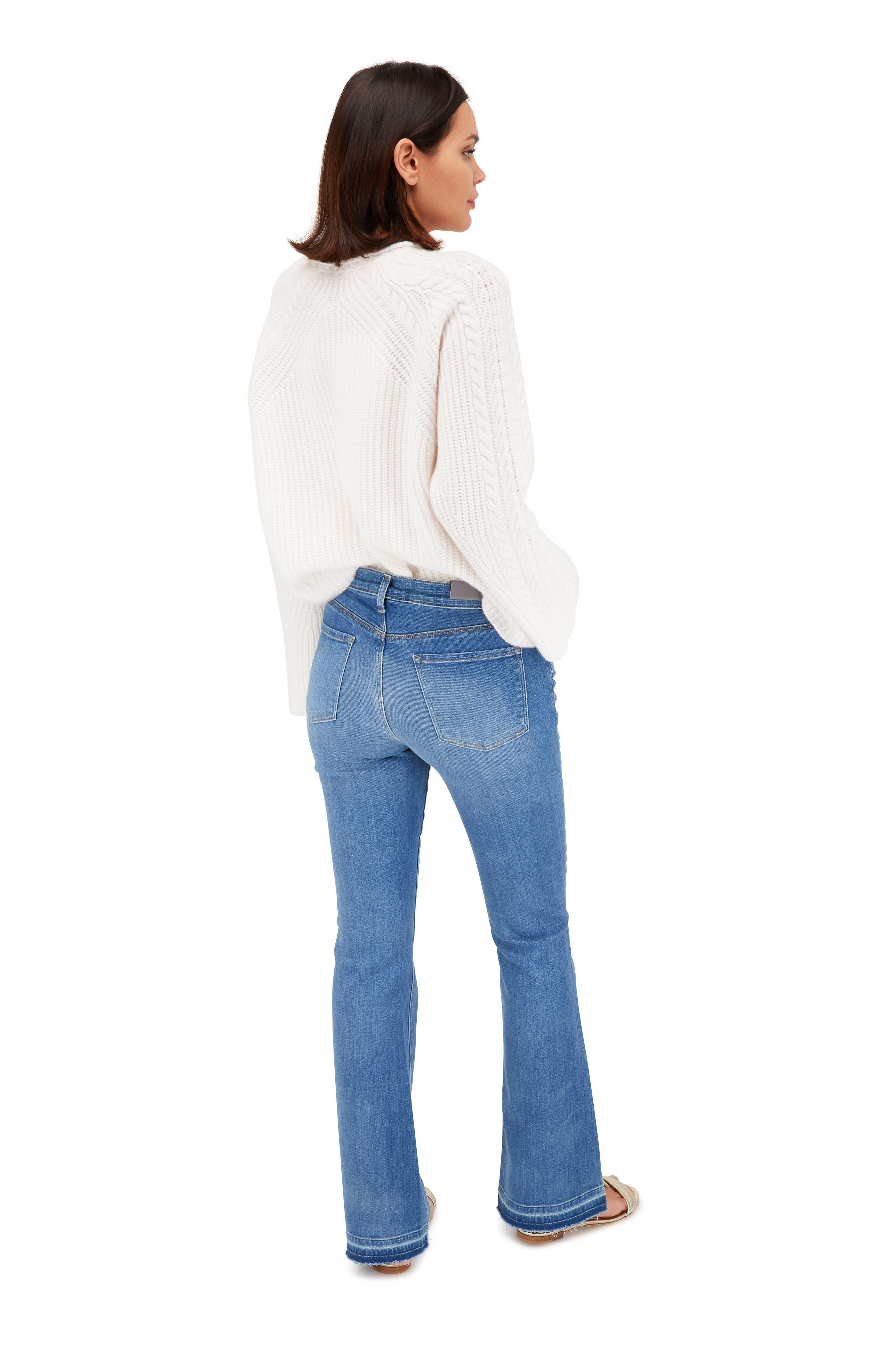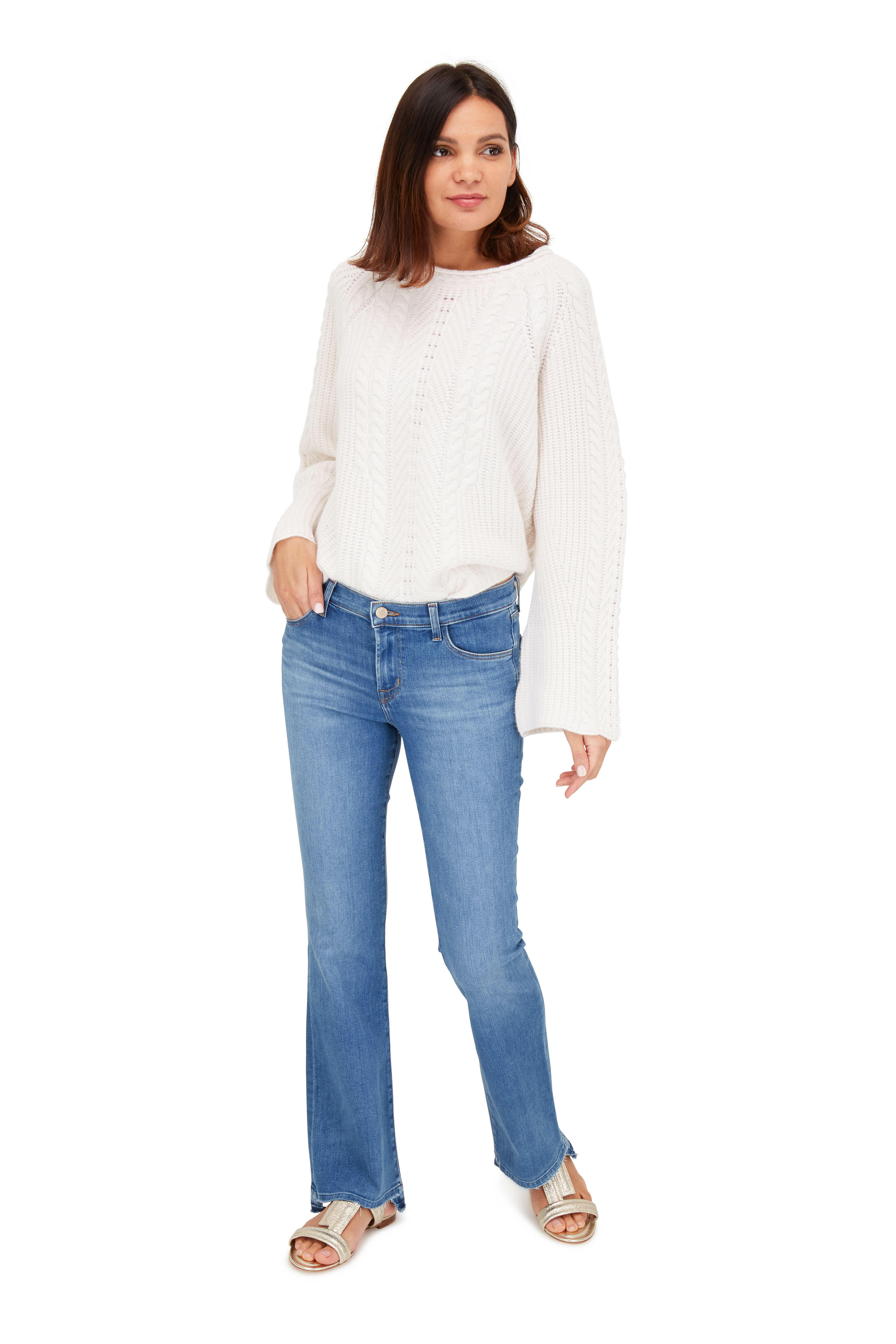 Round neckline. Long bell sleeves. Imported. 100% cashmere. Hand wash.
