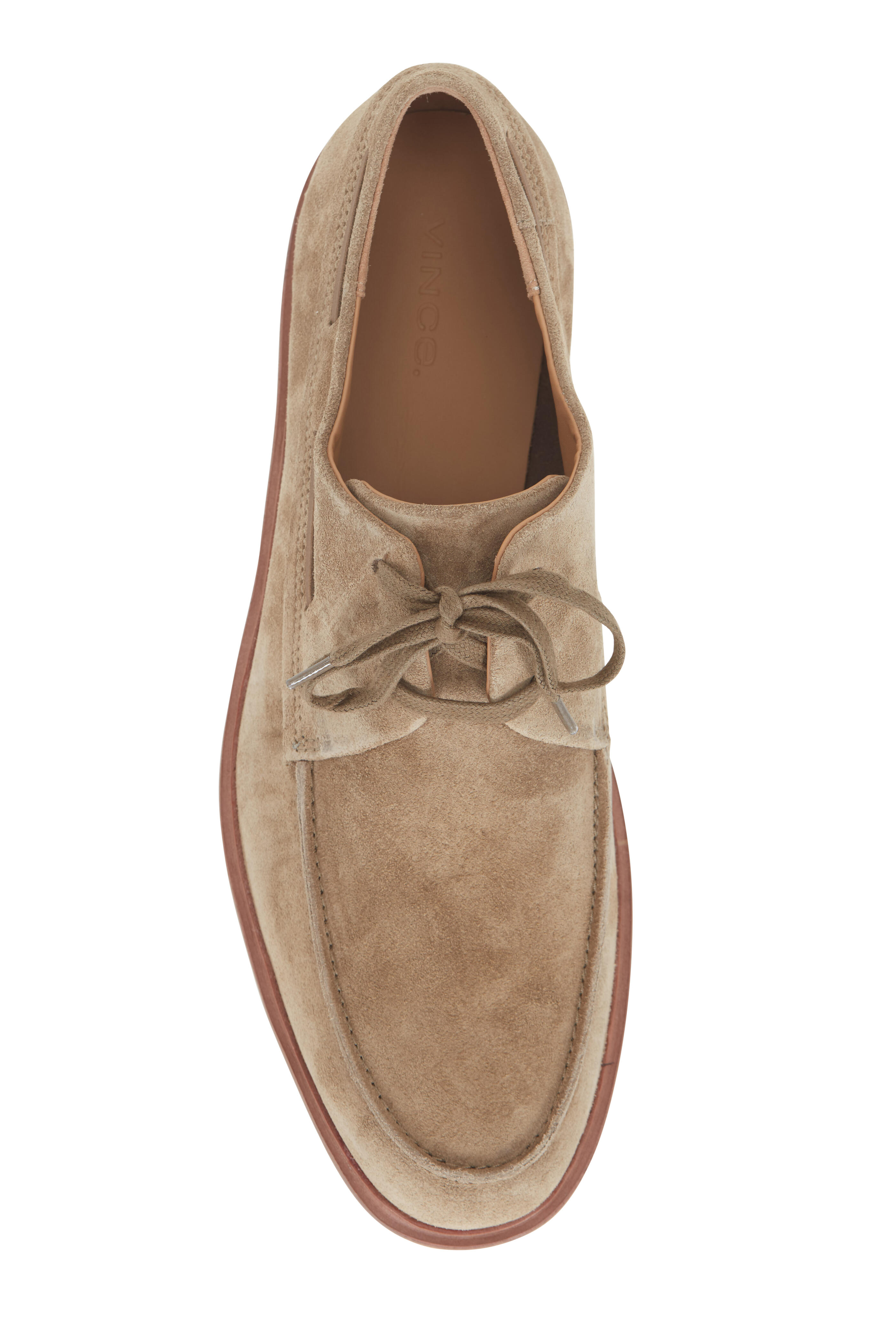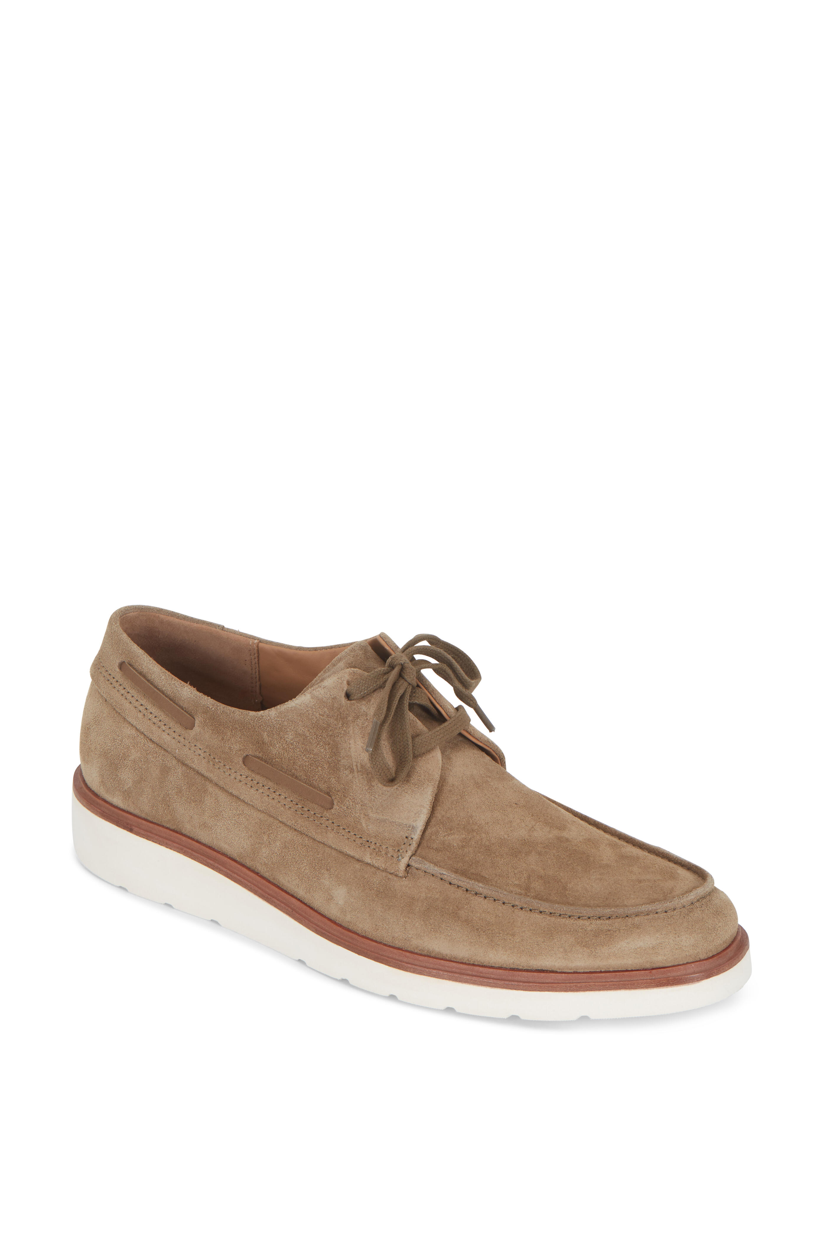 Suede upper. Moc-toe. Two eyelet lace-up closure. 360° lacing system. Leather lining, cushioned insole. Wedge rubber shole. Imported.