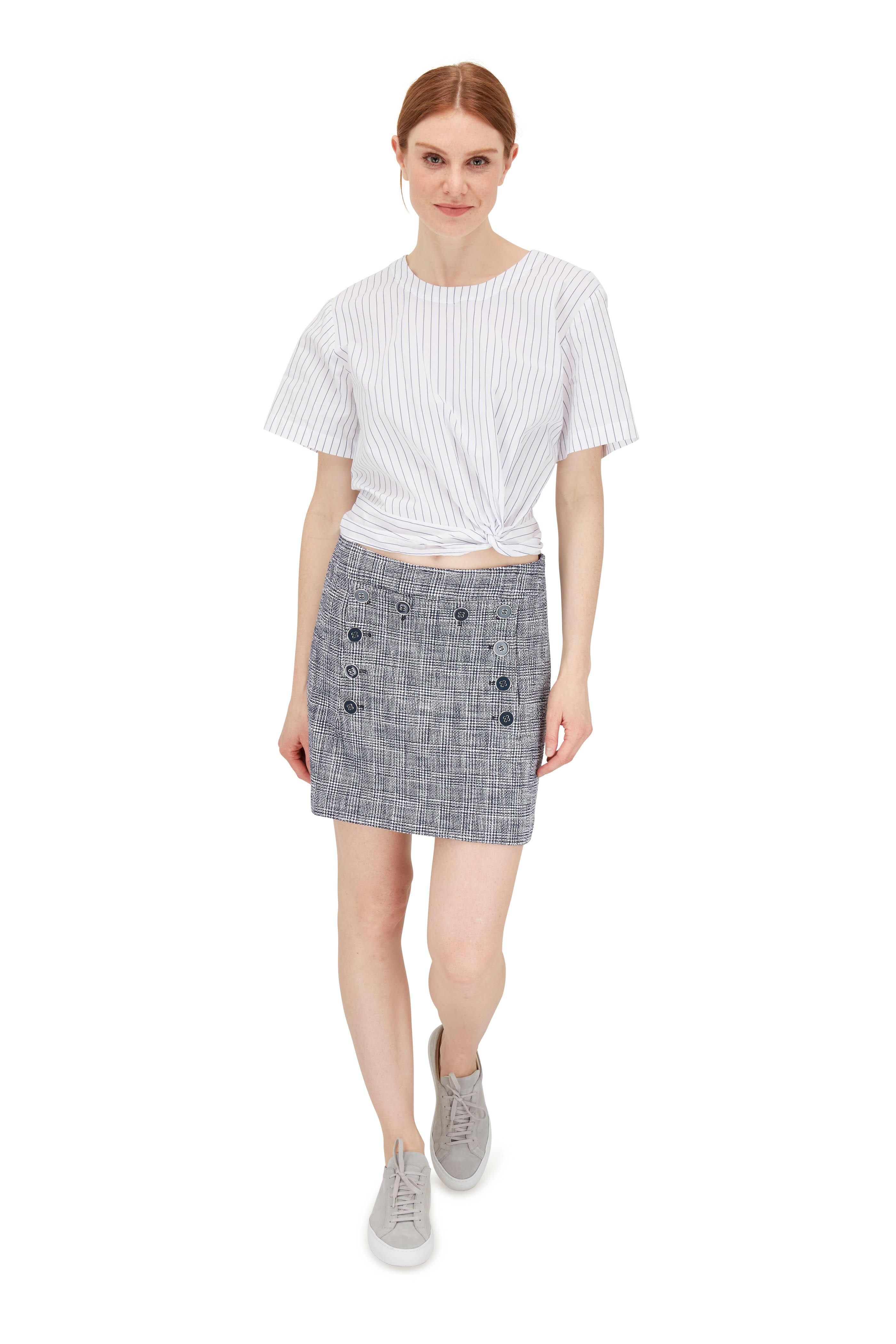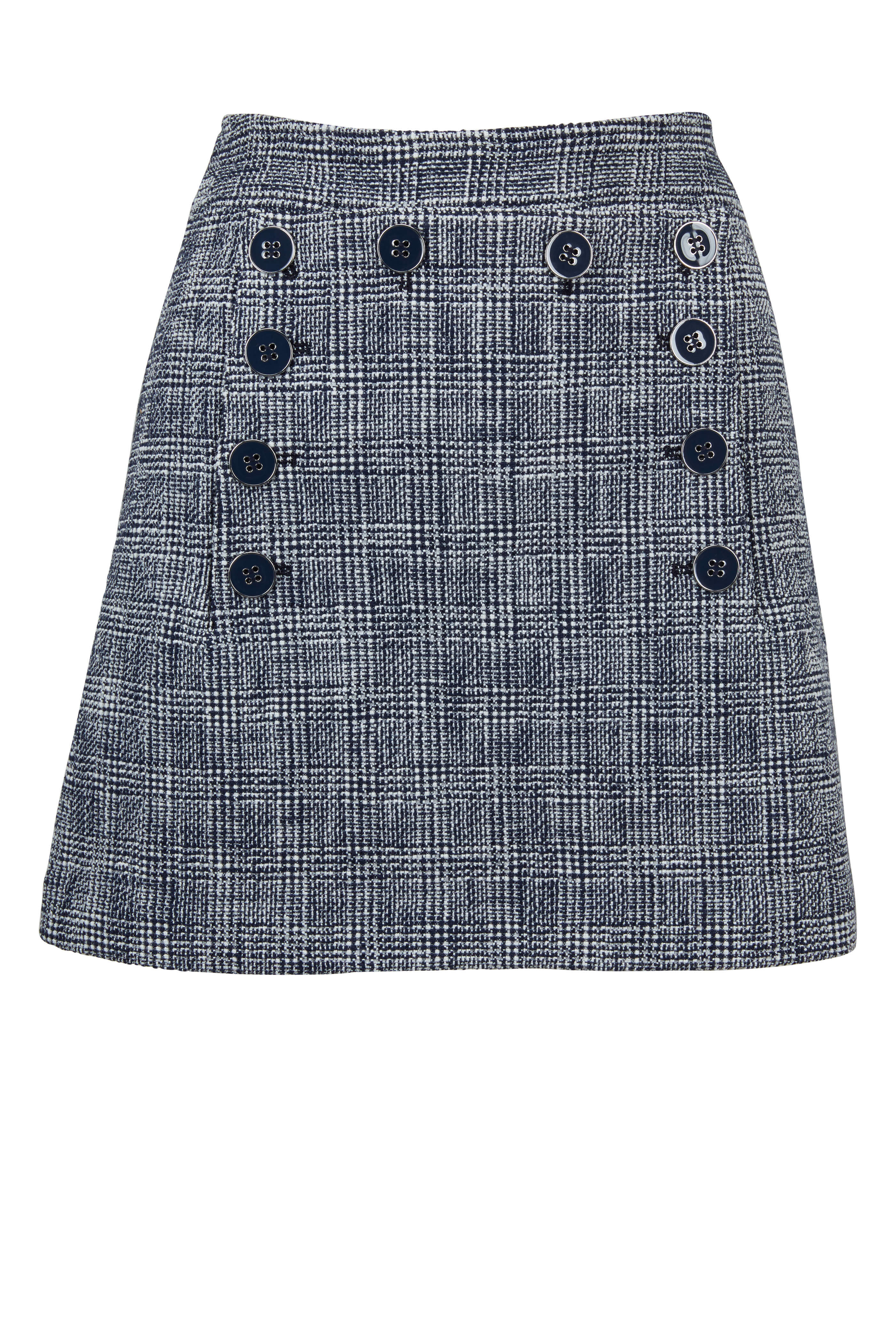 Maida Navy & White Plaid Button Panel Mini Skirt