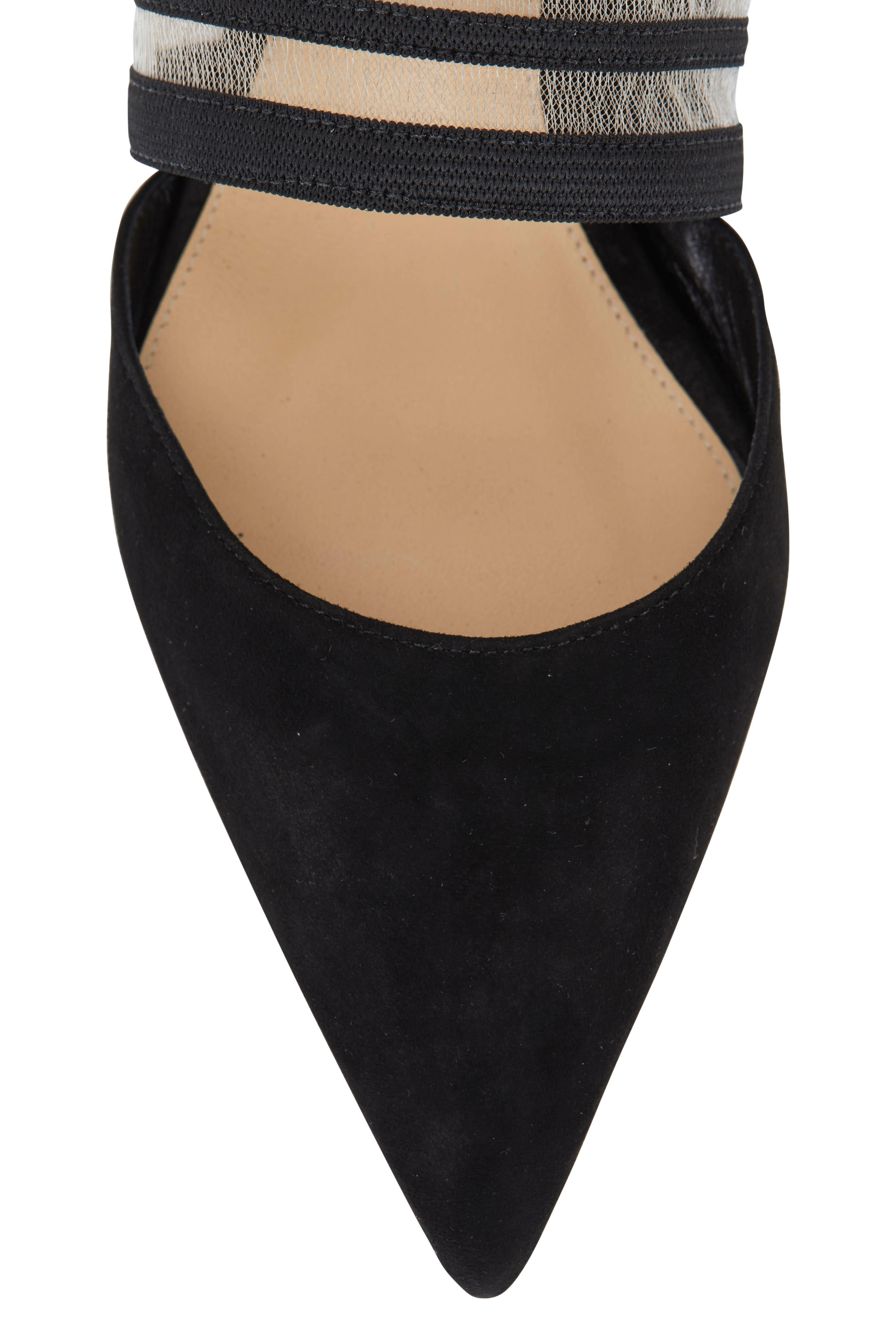 Calfskin suede upper. Pointed toe. Elastic and clear mesh inset band at vamp. Leather lining and insole. Self covered kitten heel. Leather sole. Made in Italy. Heel measurement: 50mm (2").