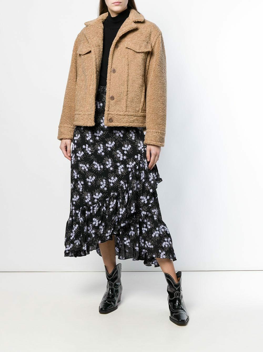 Notched lapels. Front button placket. Chest button flap pockets; lower side seam pockets. Imported. 100% polyester; fully lined. Machine wash.