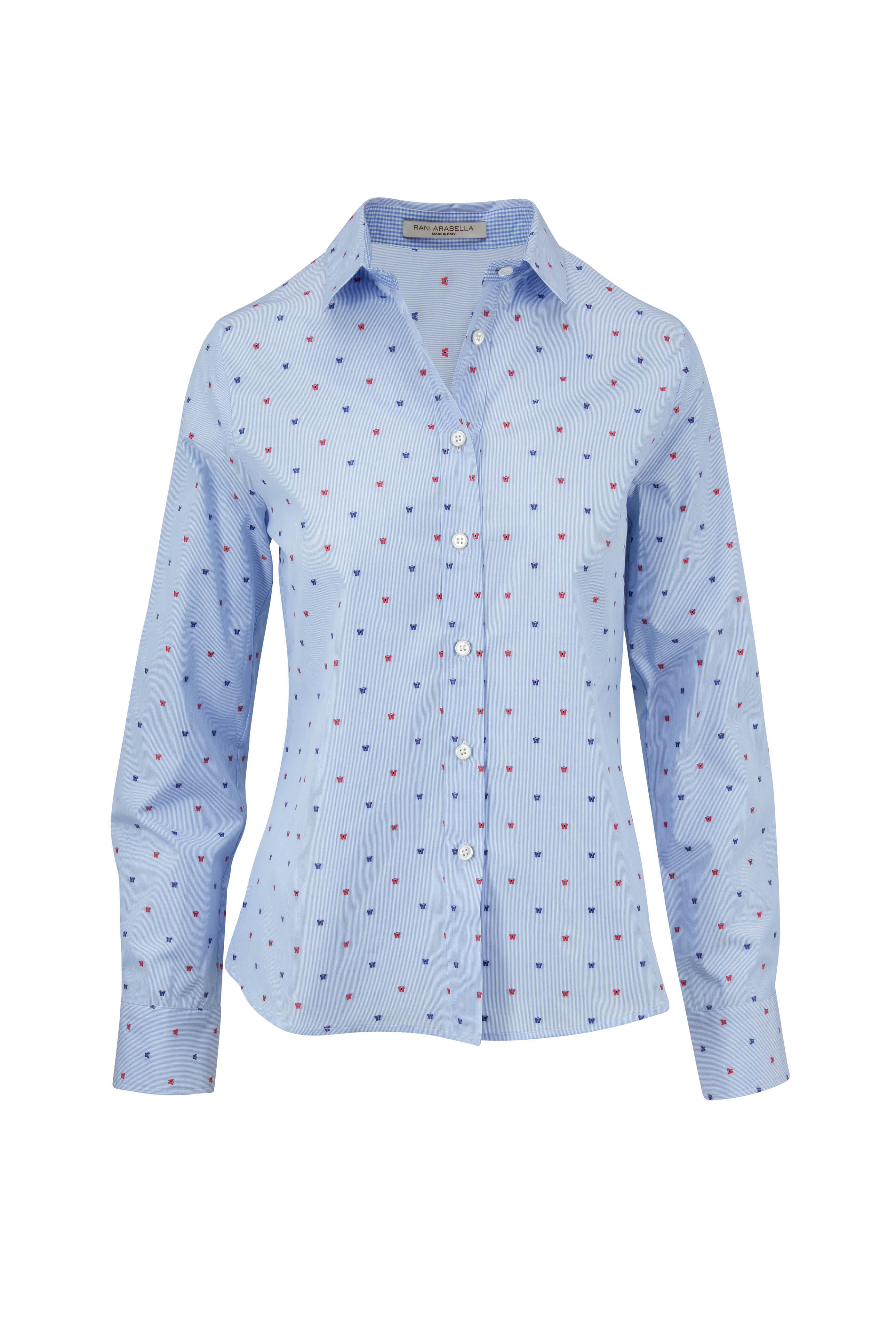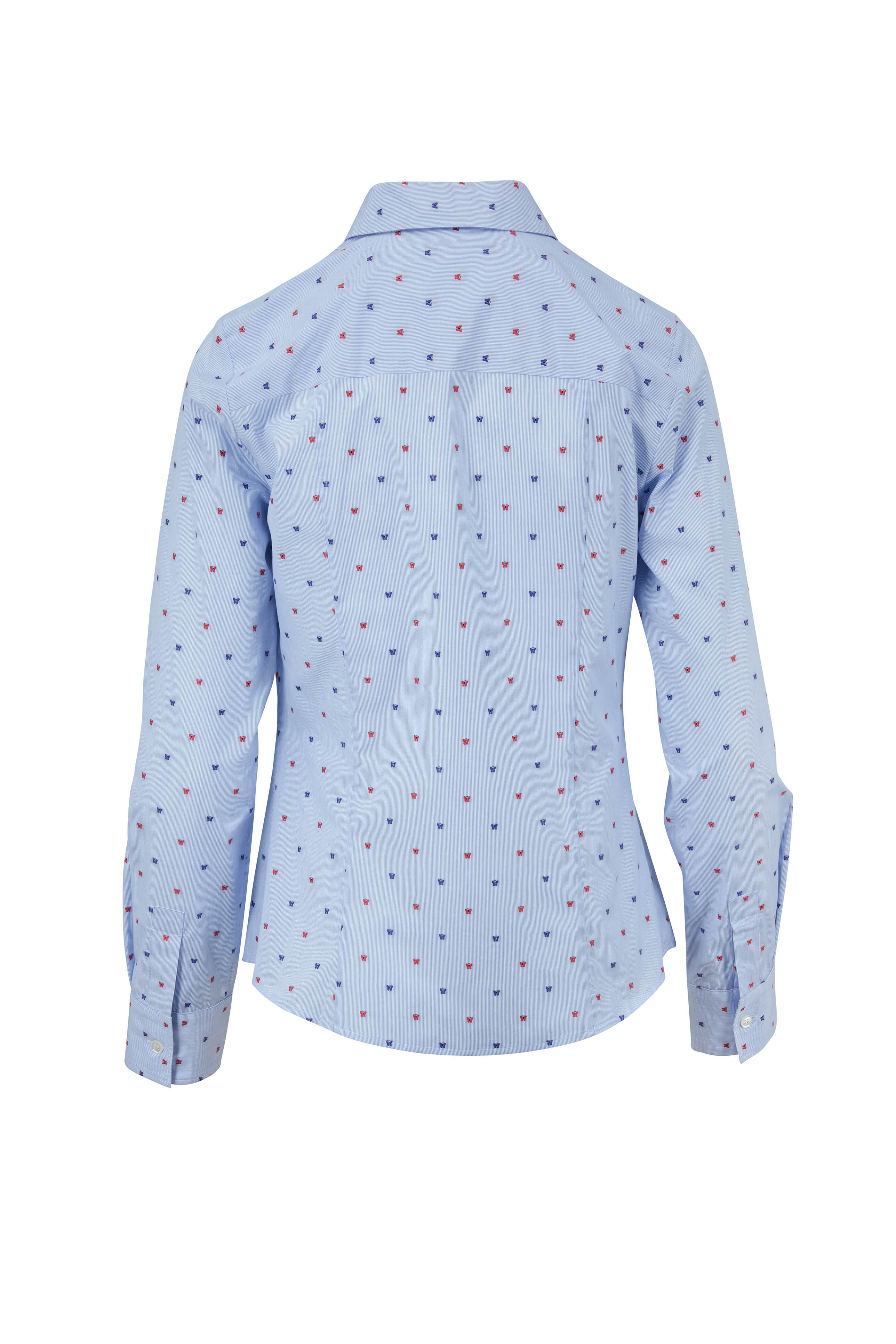 Light Blue & Red Butterfly Embroidered Shirt
