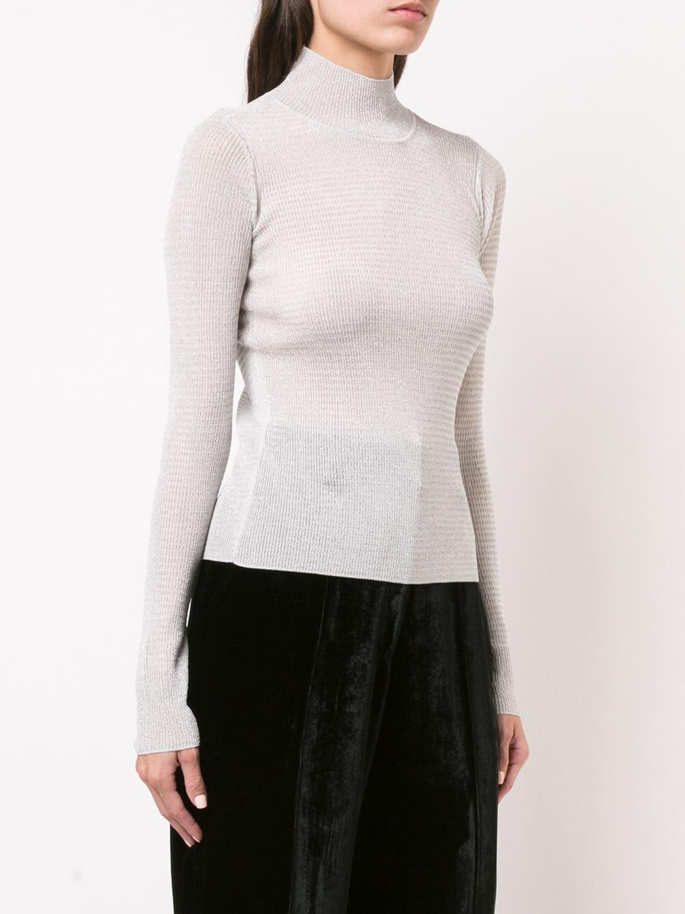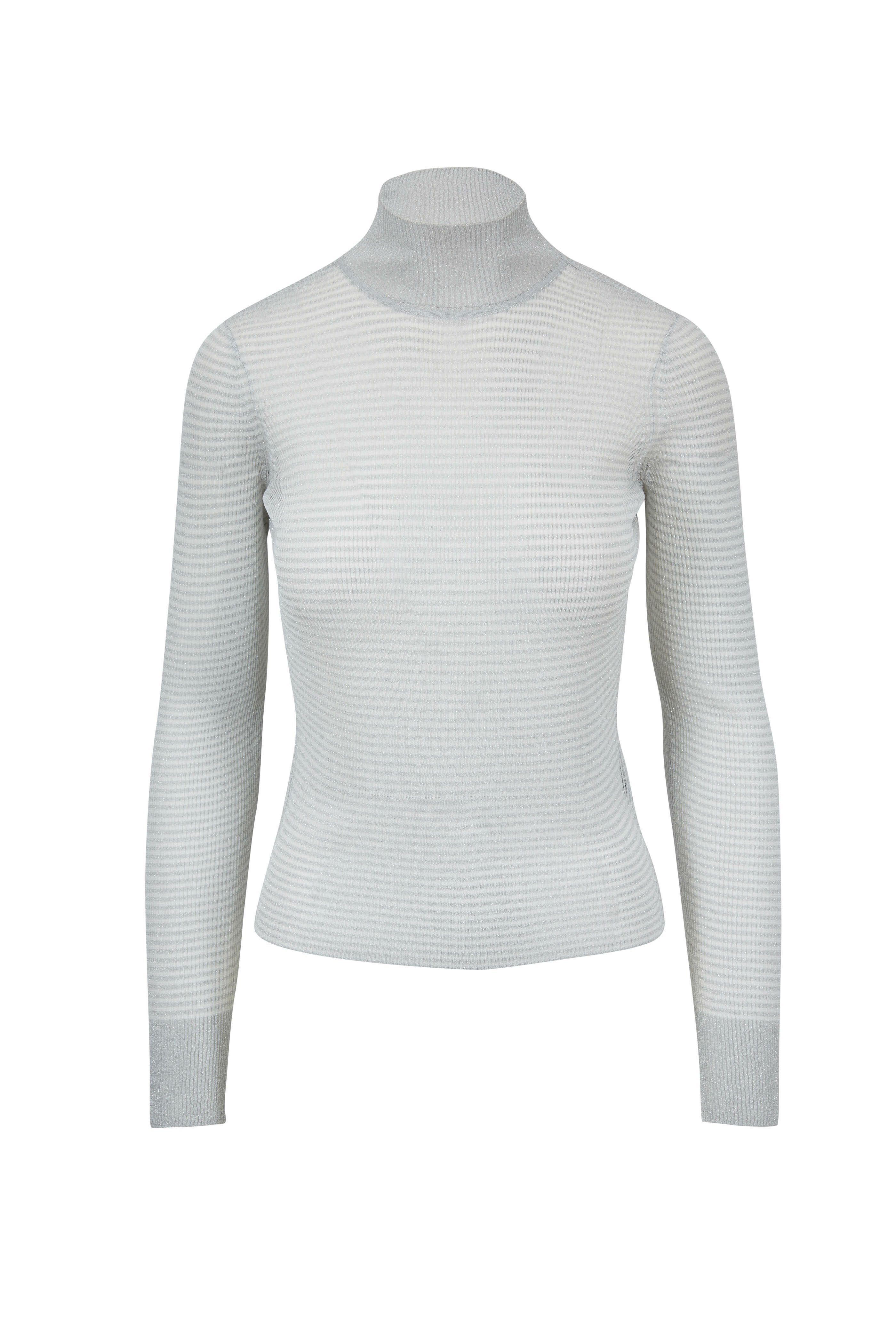 Raina Silver Lurex Striped Turtleneck Sweater