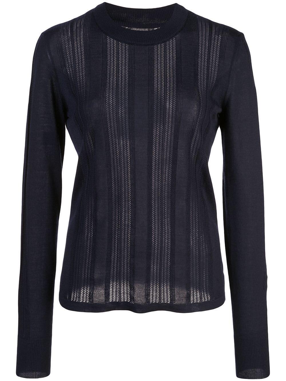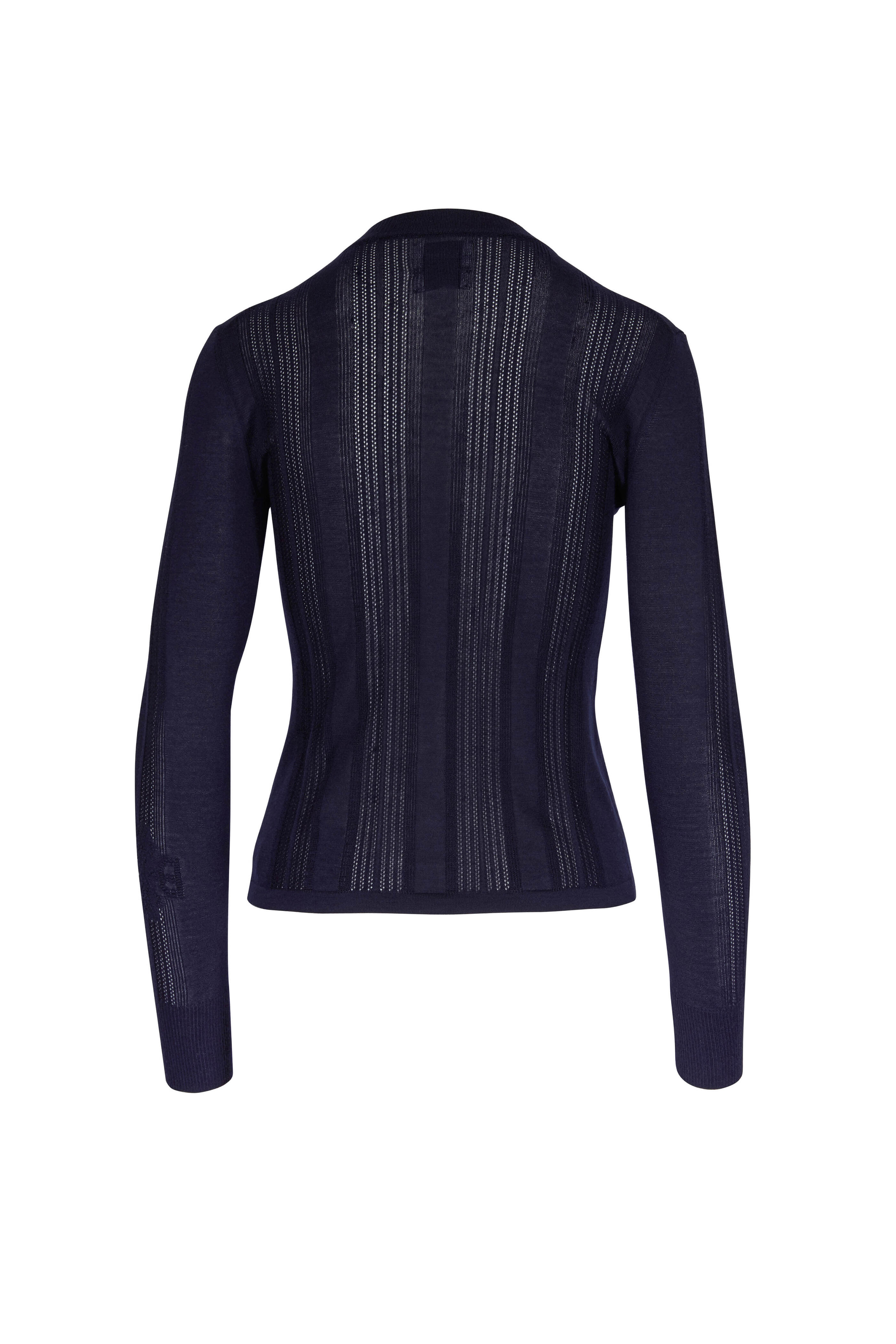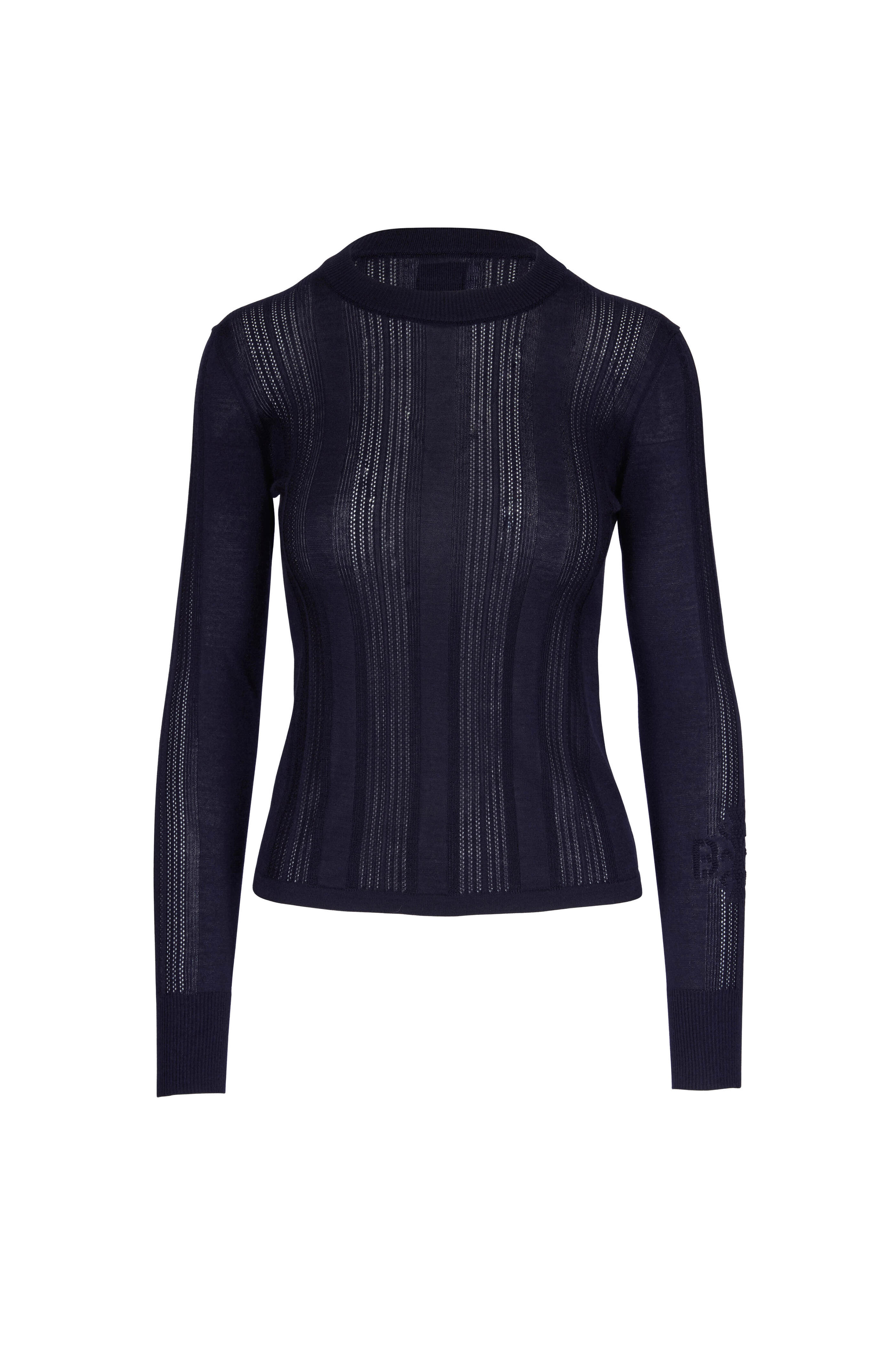 Navy Ribbed Cashmere & Silk Crewneck Sweater