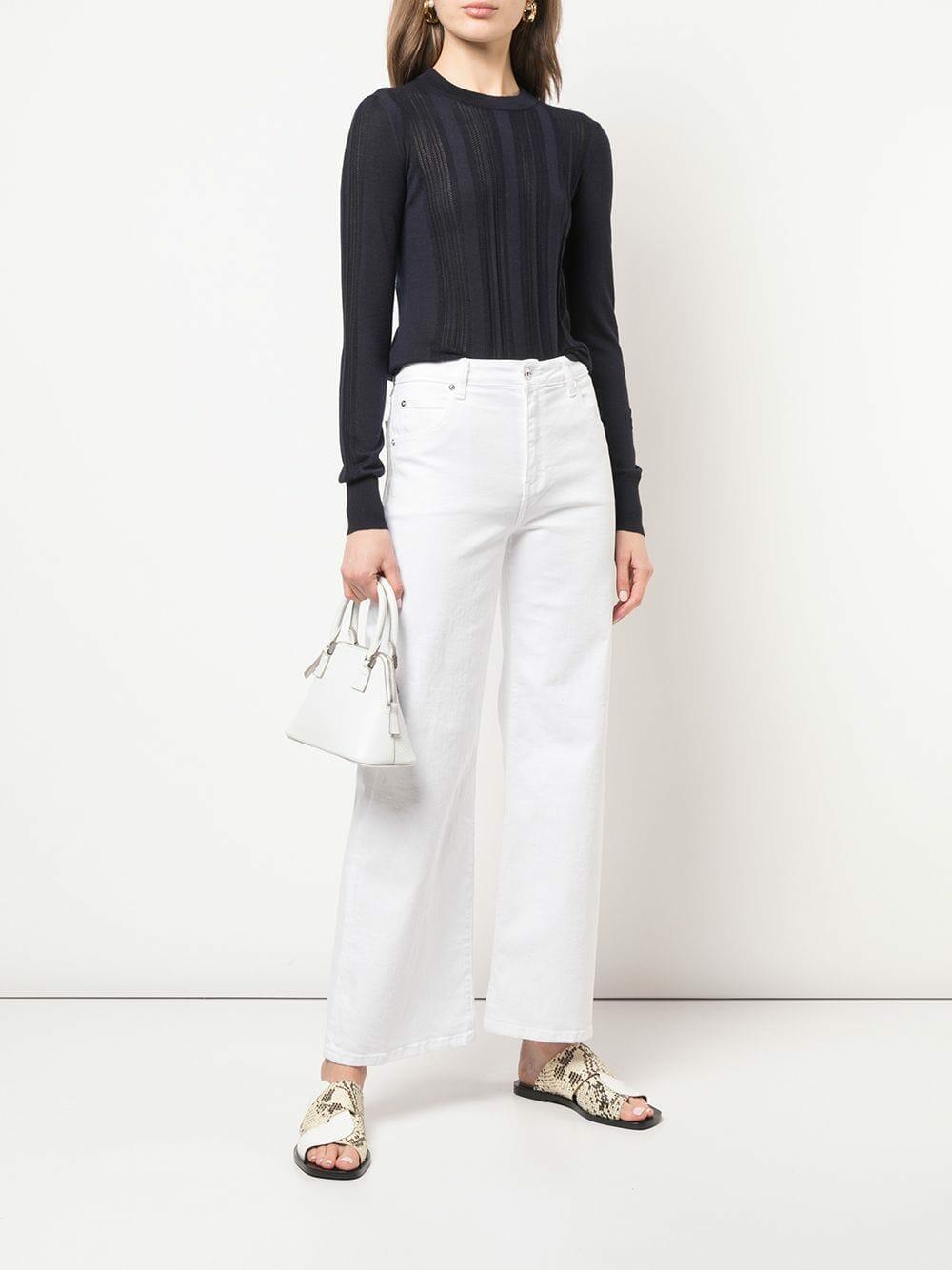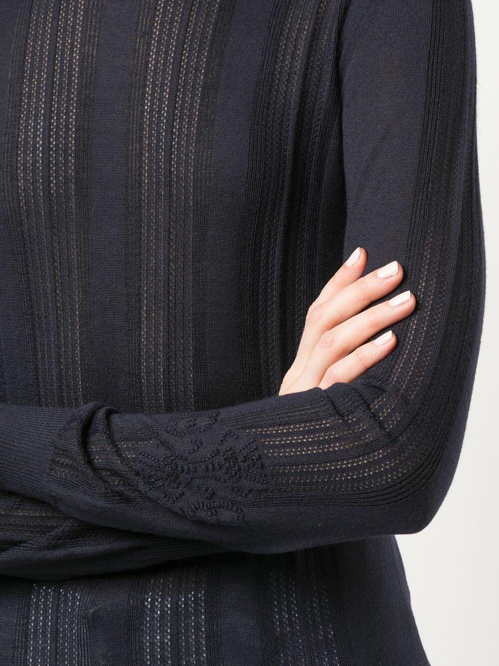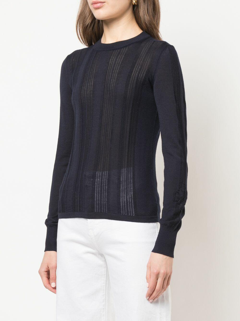 Crew neckline. Decorative ribbed detail. Made in Italy. 70% cashmere, 30% silk. Hand wash.