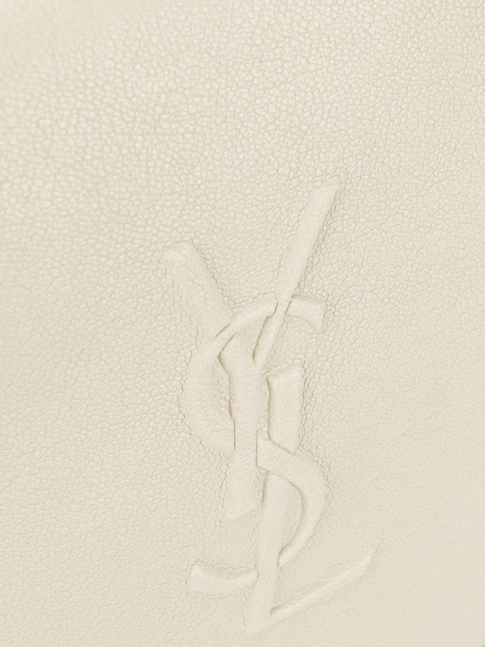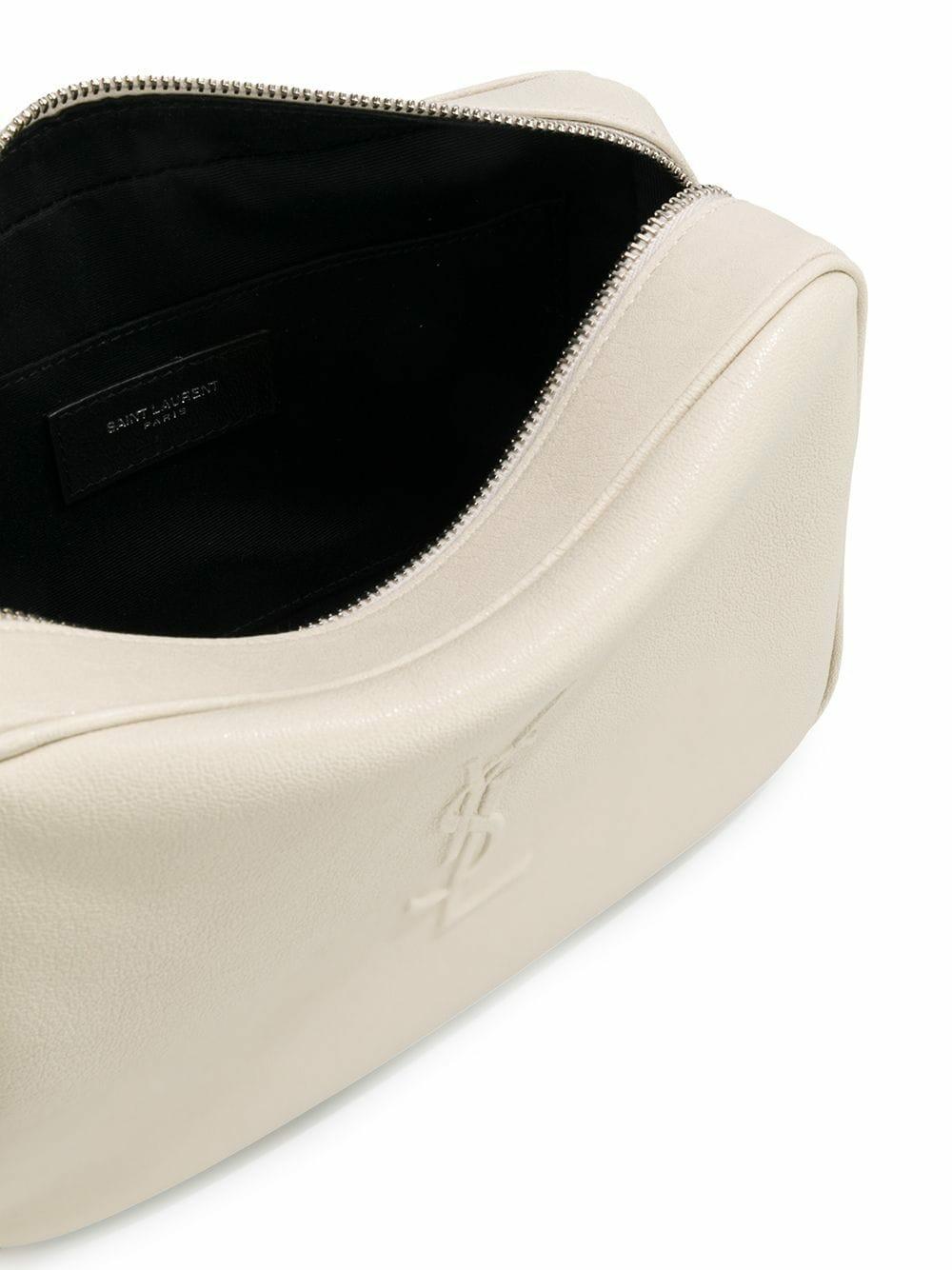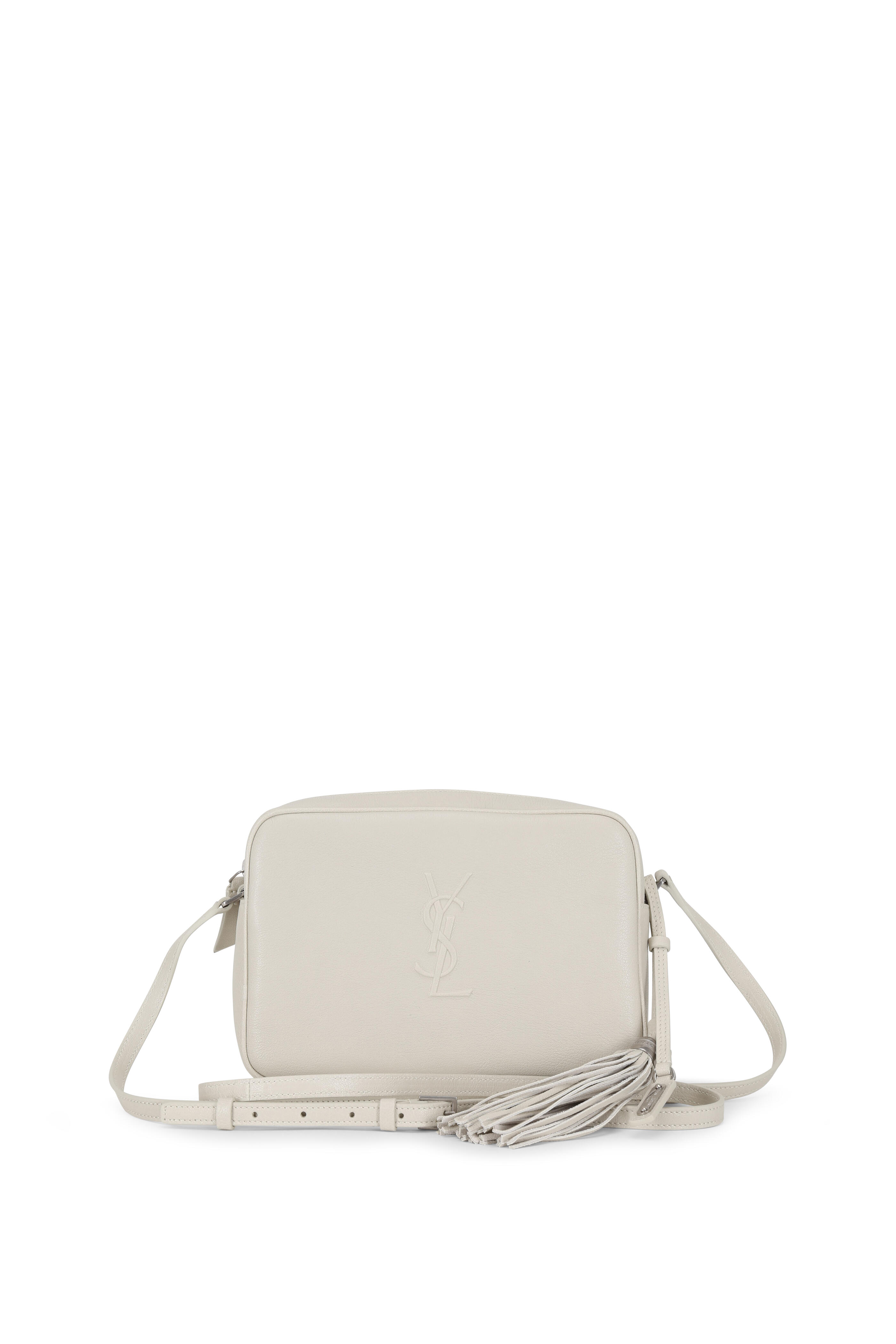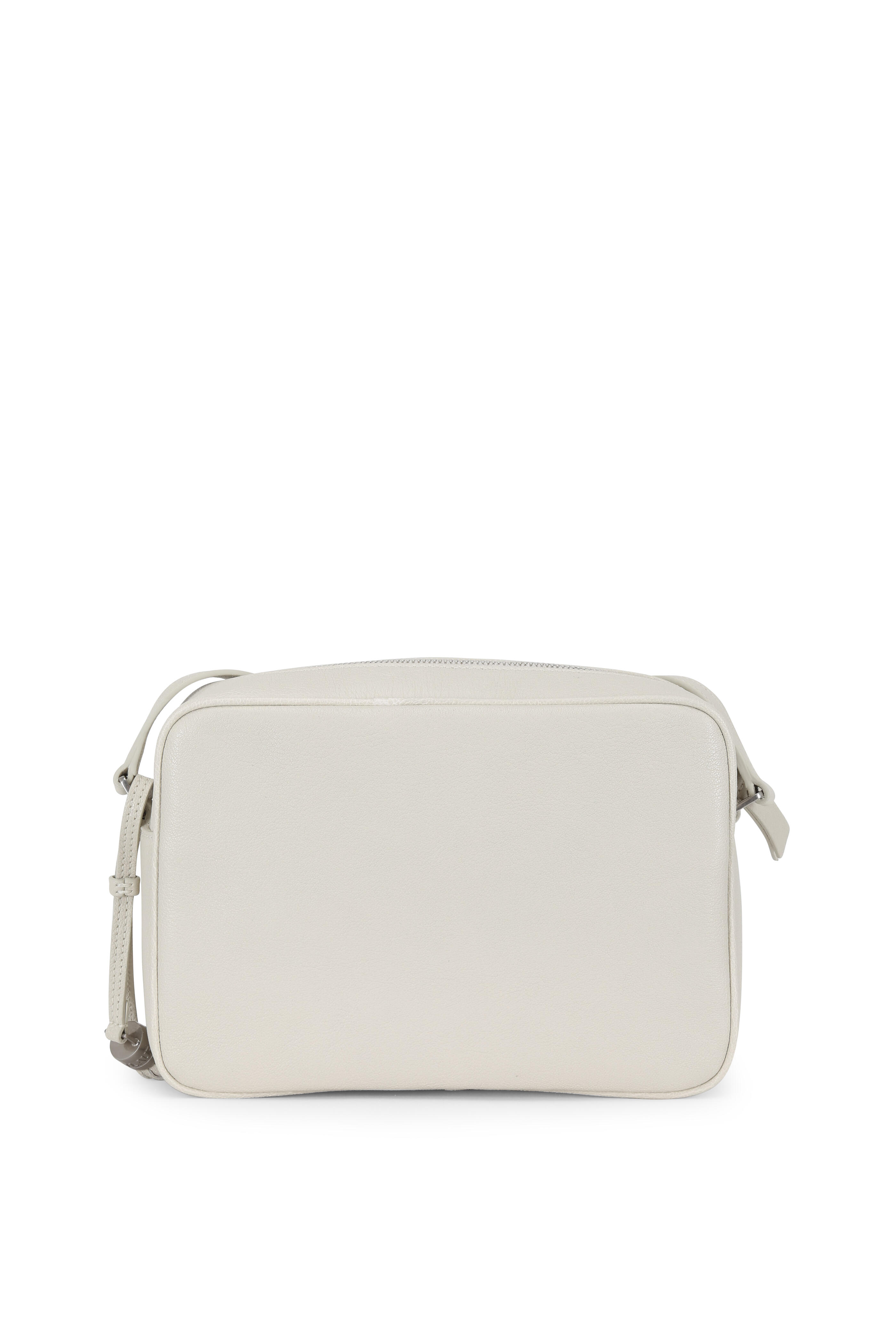 Grained calfskin leather. Adjustable shoulder strap; detachable tassel. Top zip closure. Embossed logo at front. One interior slip pocket. Lined in canvas. Made in Italy. Width: 9". Height: 6". Depth: 2 ¾". Adjustable strap drop: 25".