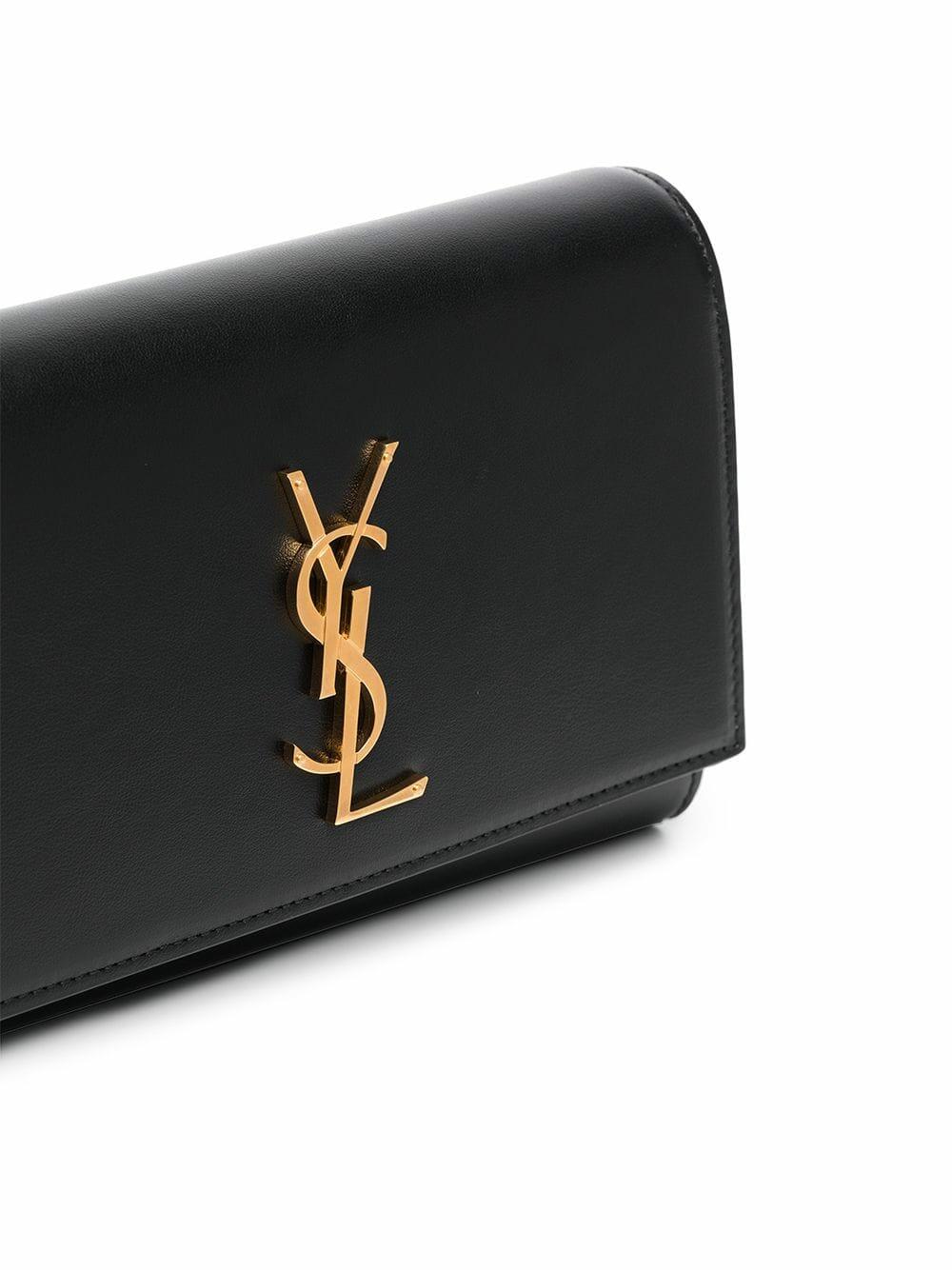 Calfskin leather. Detachable and adjustable belt. Flap front; magnetic snap closure. Gold-tone signature detail. One interior zip pocket, open compartment and four card slots. Lined in leather. Made in Italy. Width: 7". Height: 5". Depth: 2".
