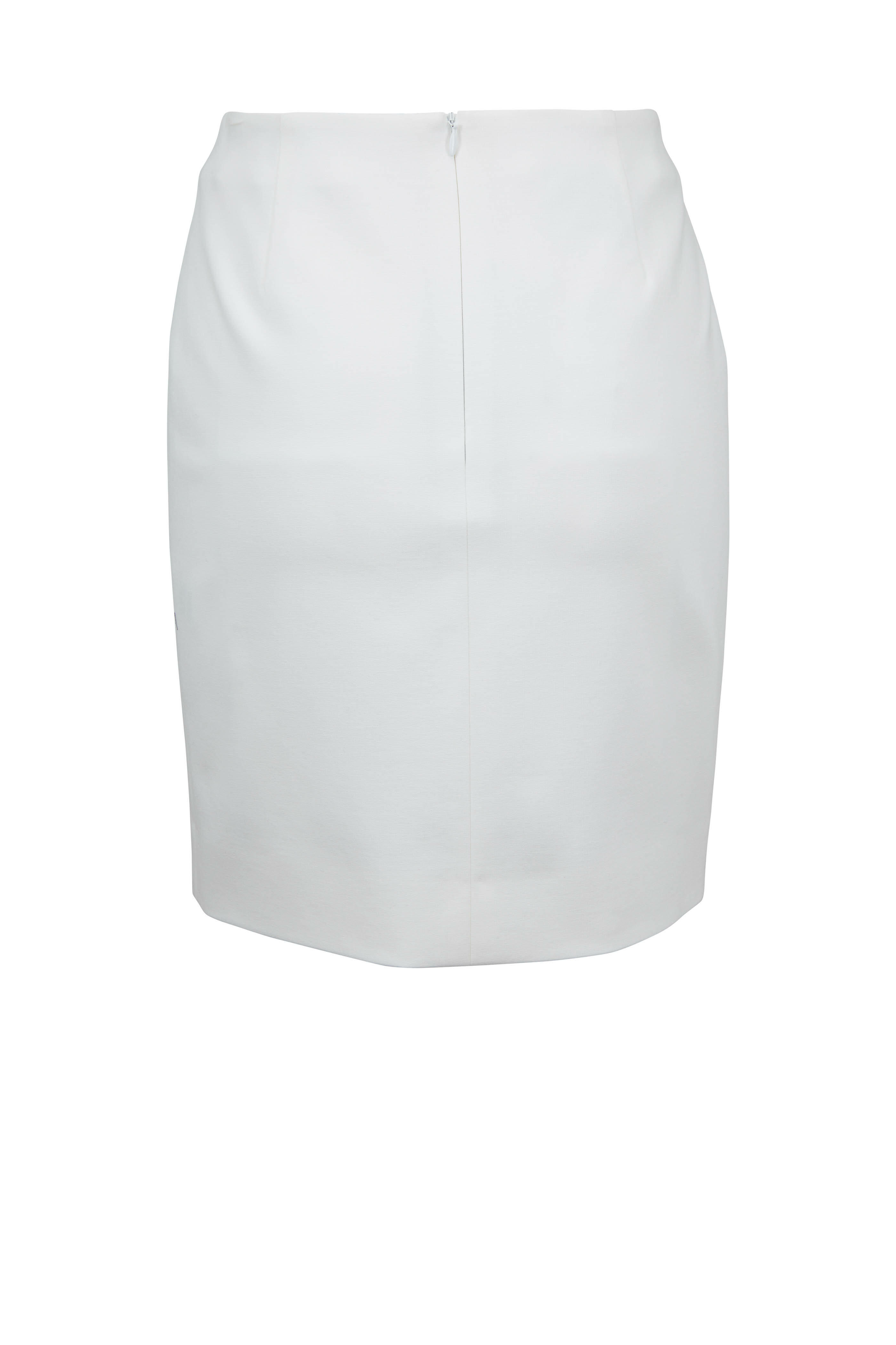 Concealed back zip closure. Straight hem. Imported. 18" total length. 69% viscose, 25% polyamide, 6% s elastane; lined. Dry clean.