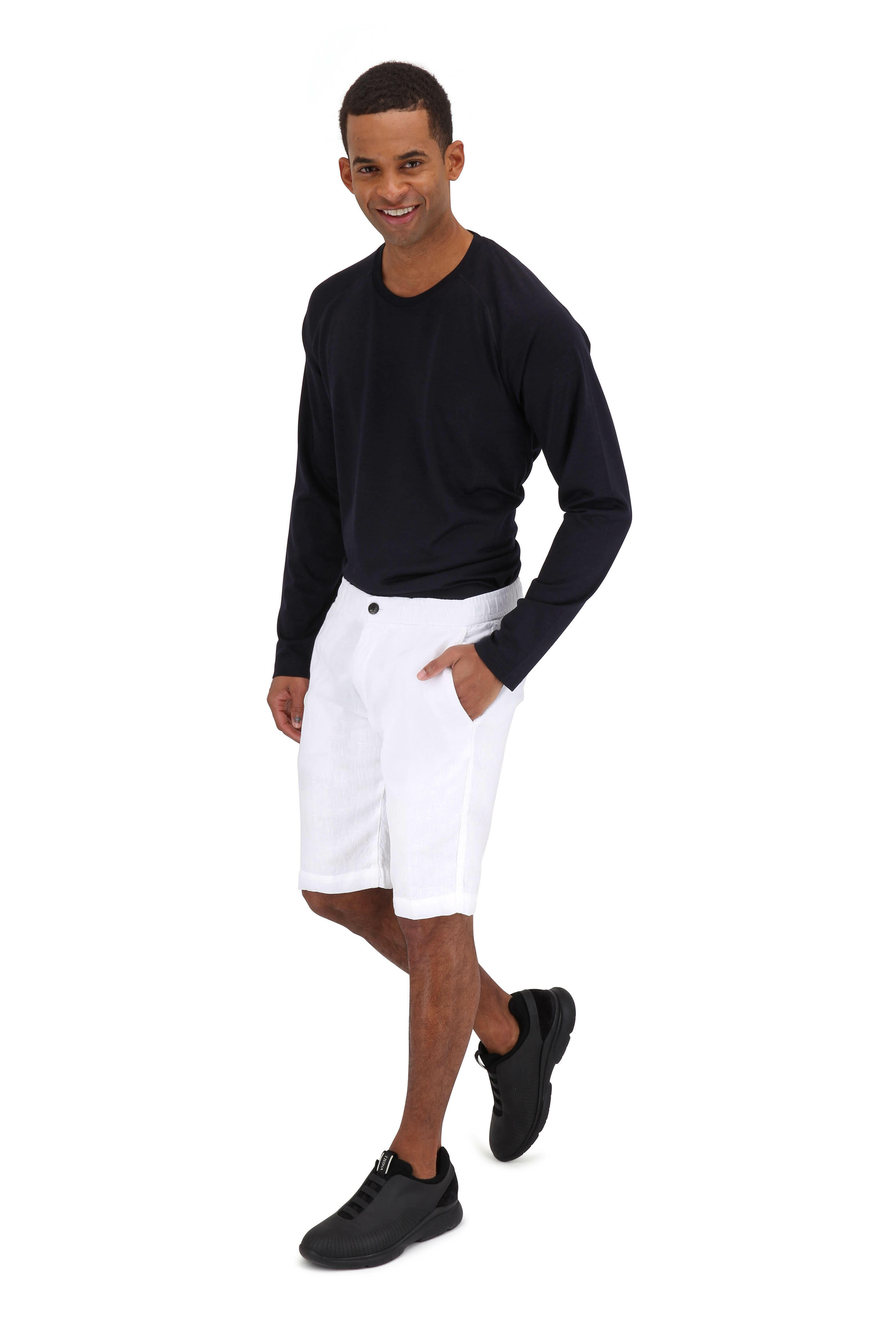 White Garment Dyed Linen Shorts
