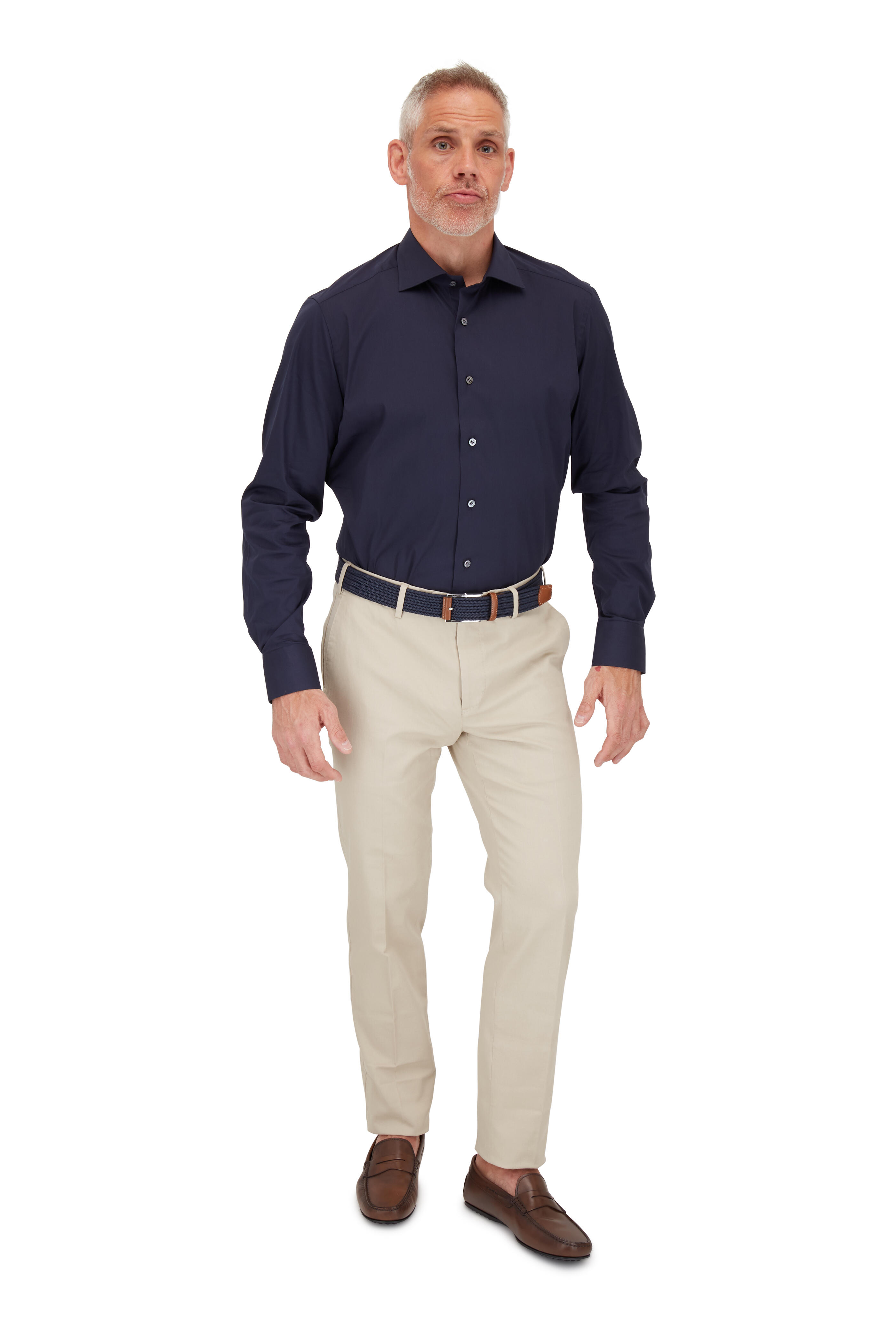 Solid Navy Blue Poplin Slim Fit Dress Shirt