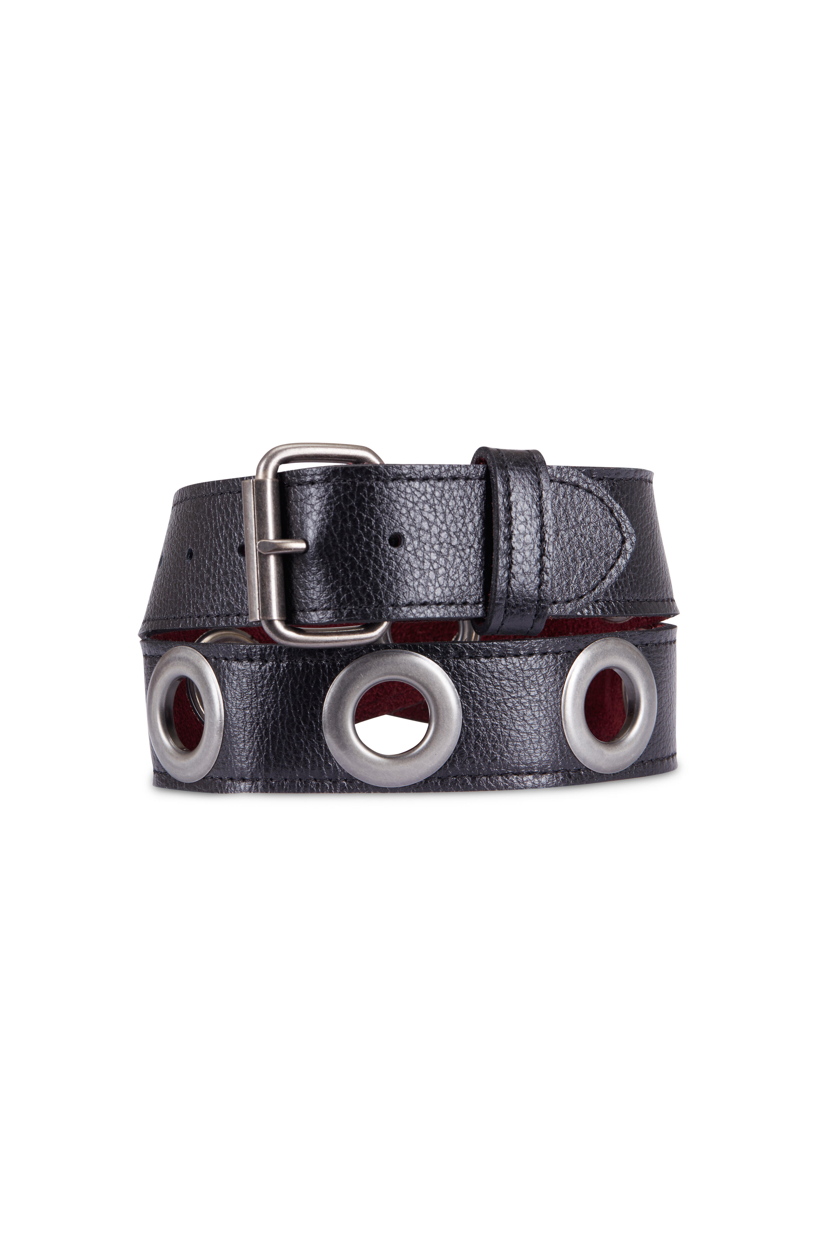 Brushed silver hardware. Pointed tip. Made in the USA. 100% leather.