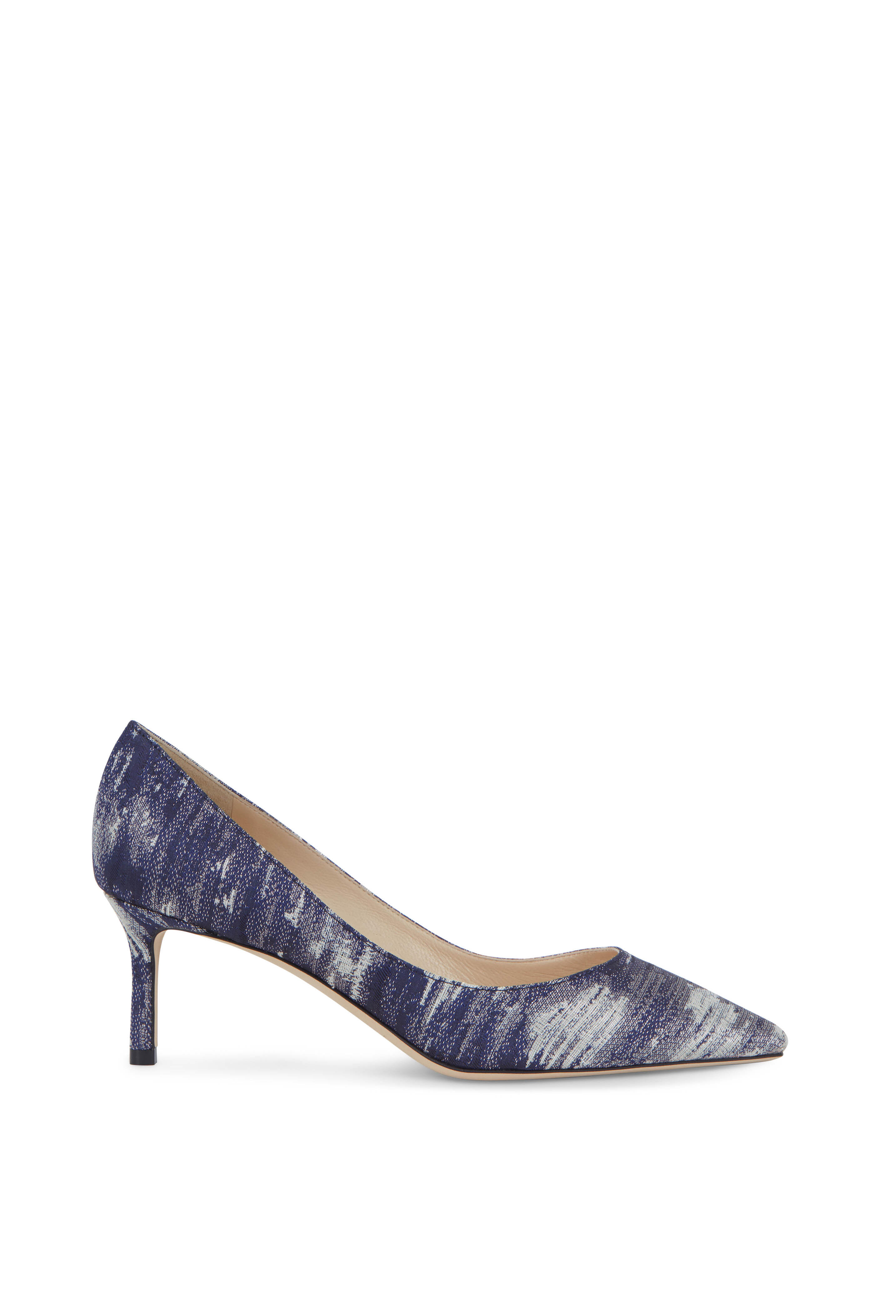 Romy Stone Blue Denim Jacquard Pump, 60mm