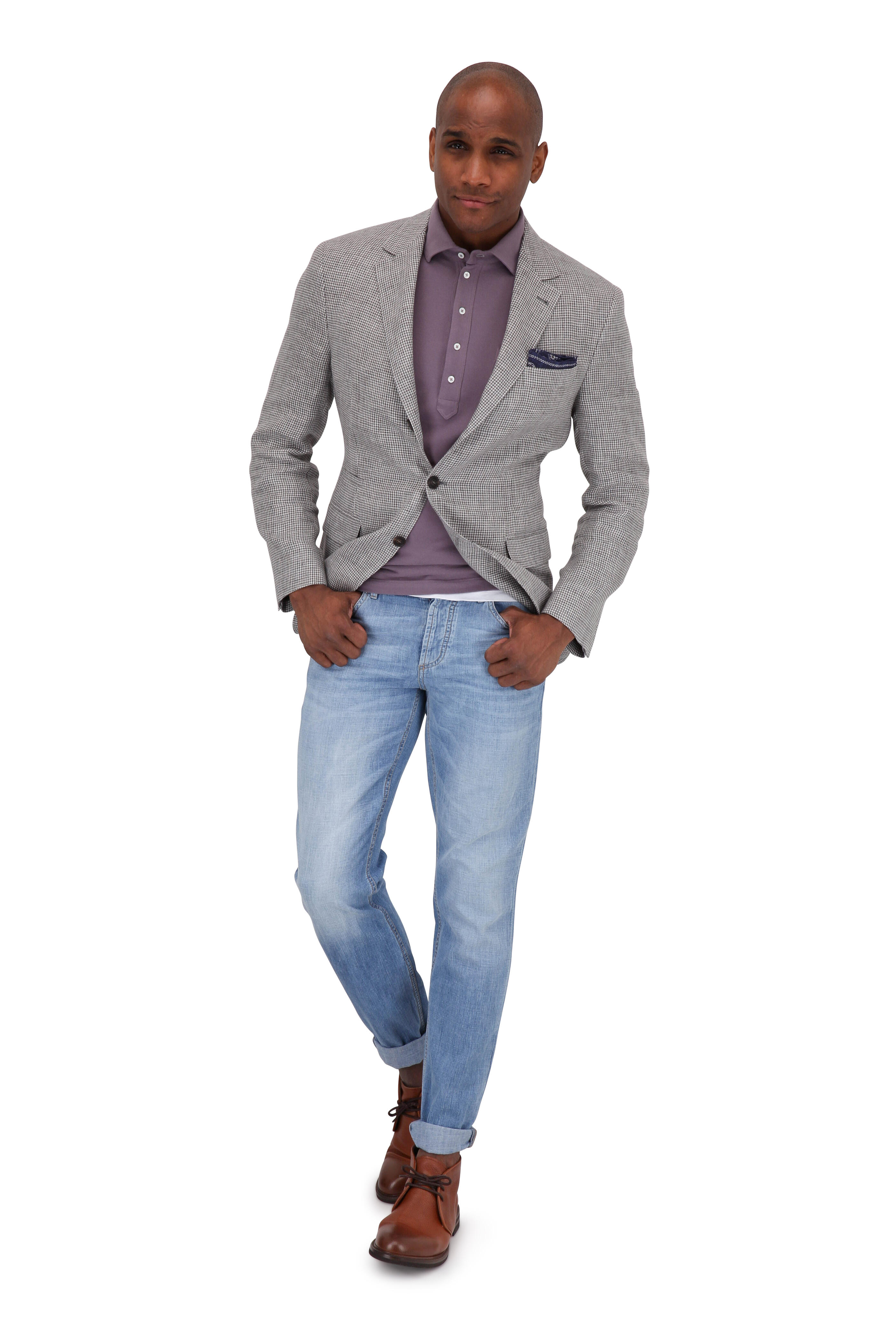 - Chest welt pocket, lower flap pockets, ticket pocket