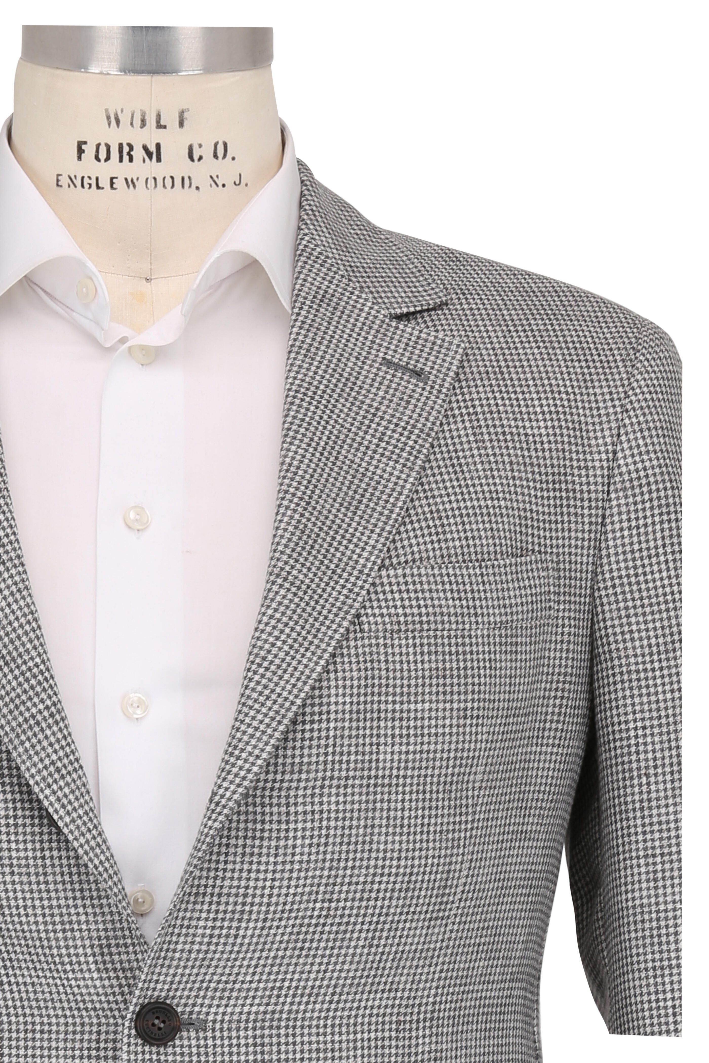 Notched lapels. Three button closure. Chest welt pocket, lower flap pockets, ticket pocket. Double vent. Made in Italy. 100% linen; partial lining. Dry clean.