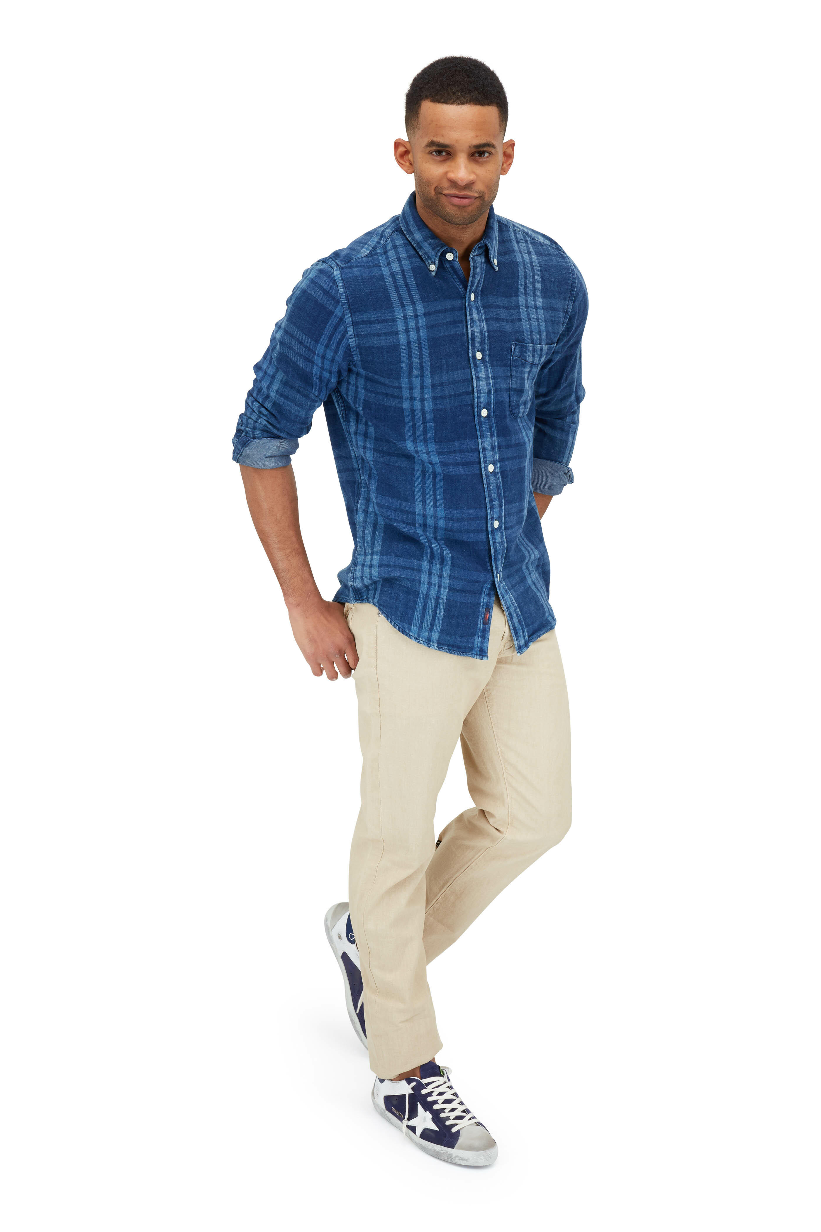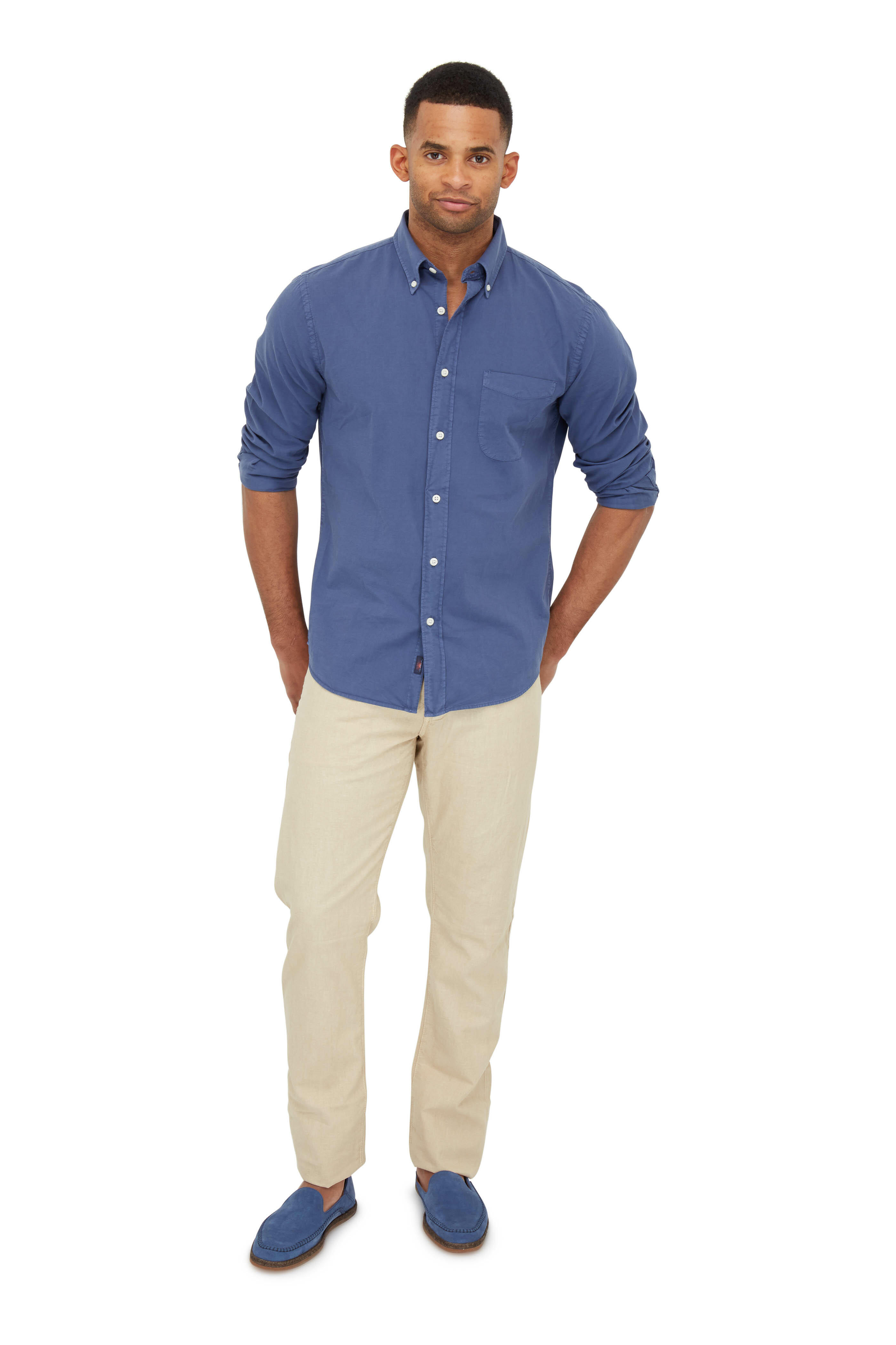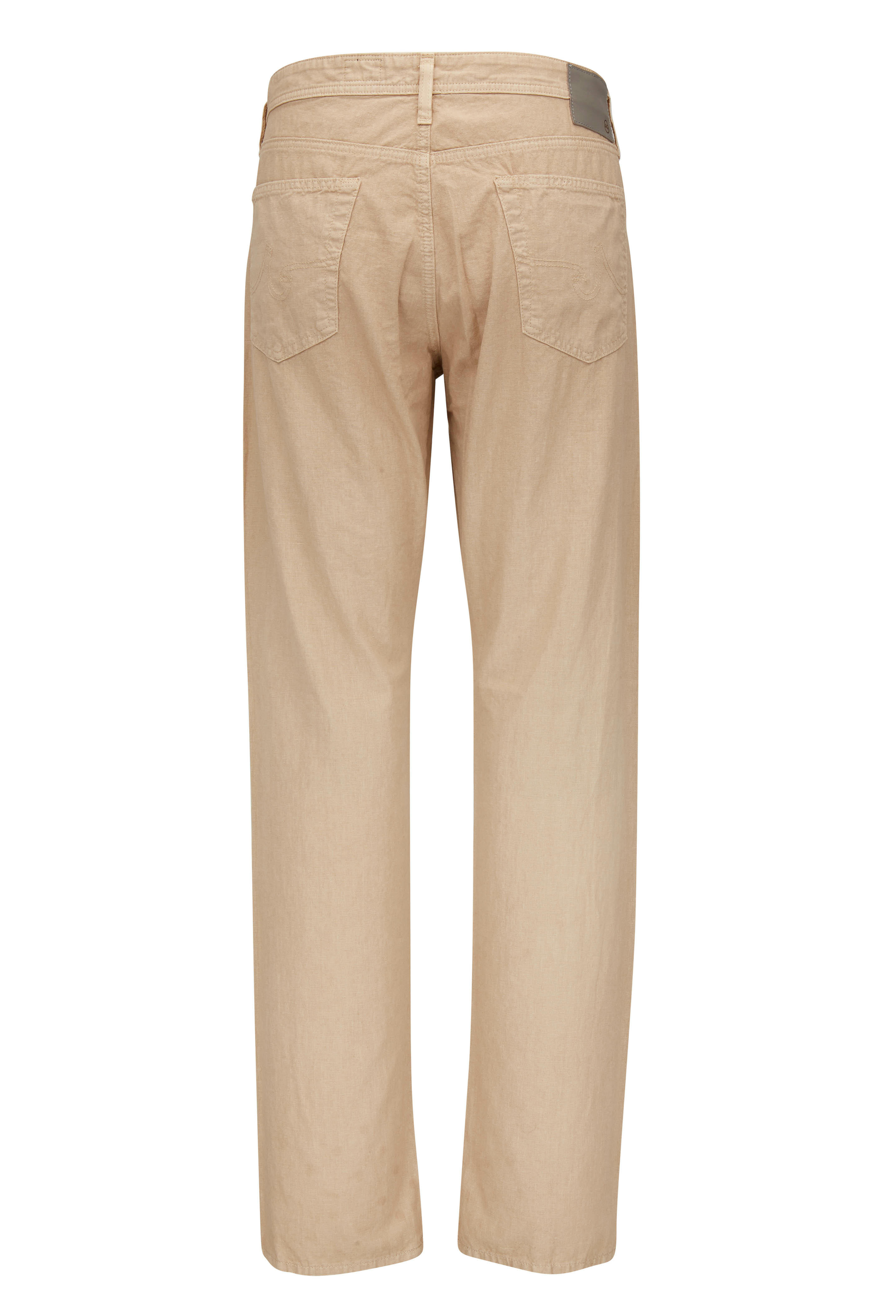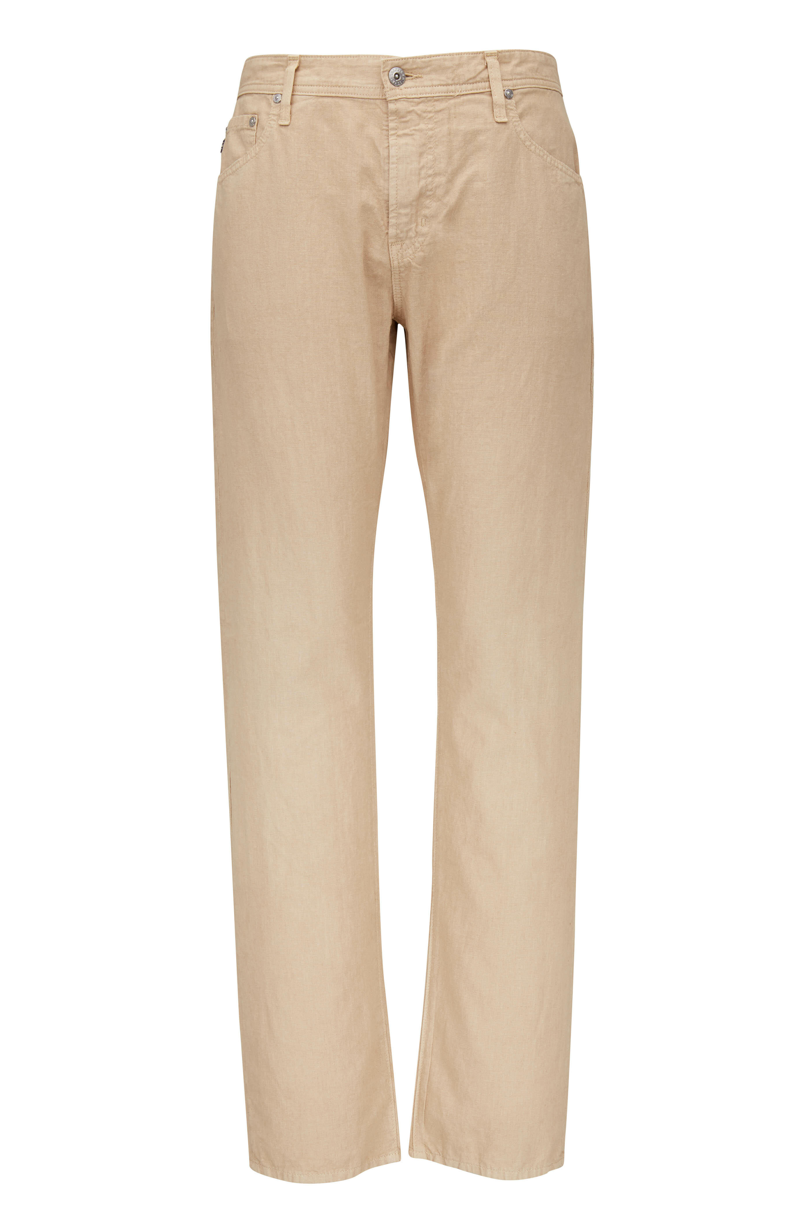 Five pocket styling. Tonal stitching. Imported. Color: Fresh Sand. Tailored leg. 35" inseam. 55% linen, 45% cotton. Machine wash.