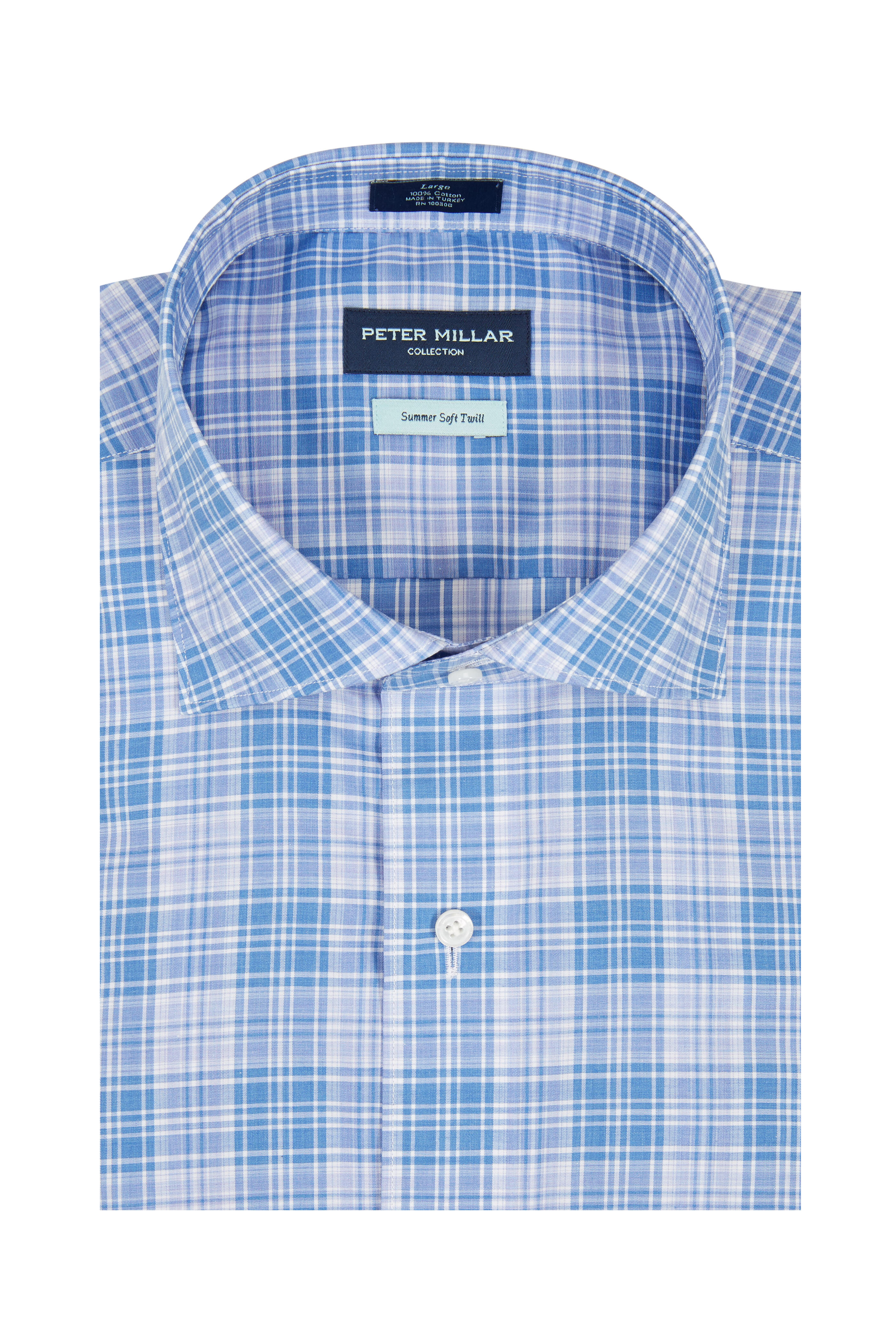 Spread collar. Single button mitered cuffs. Imported. 100% cotton. Machine wash.