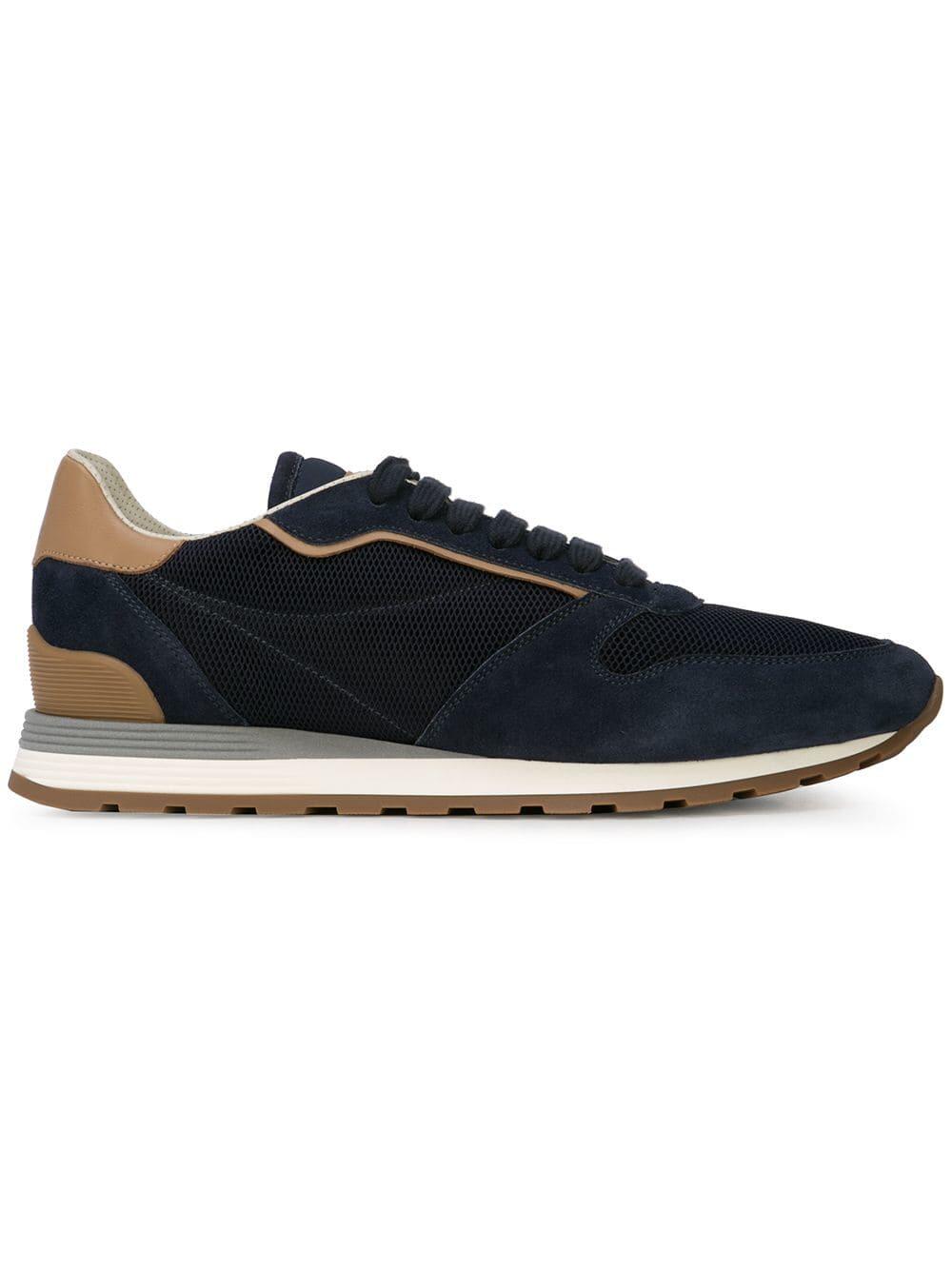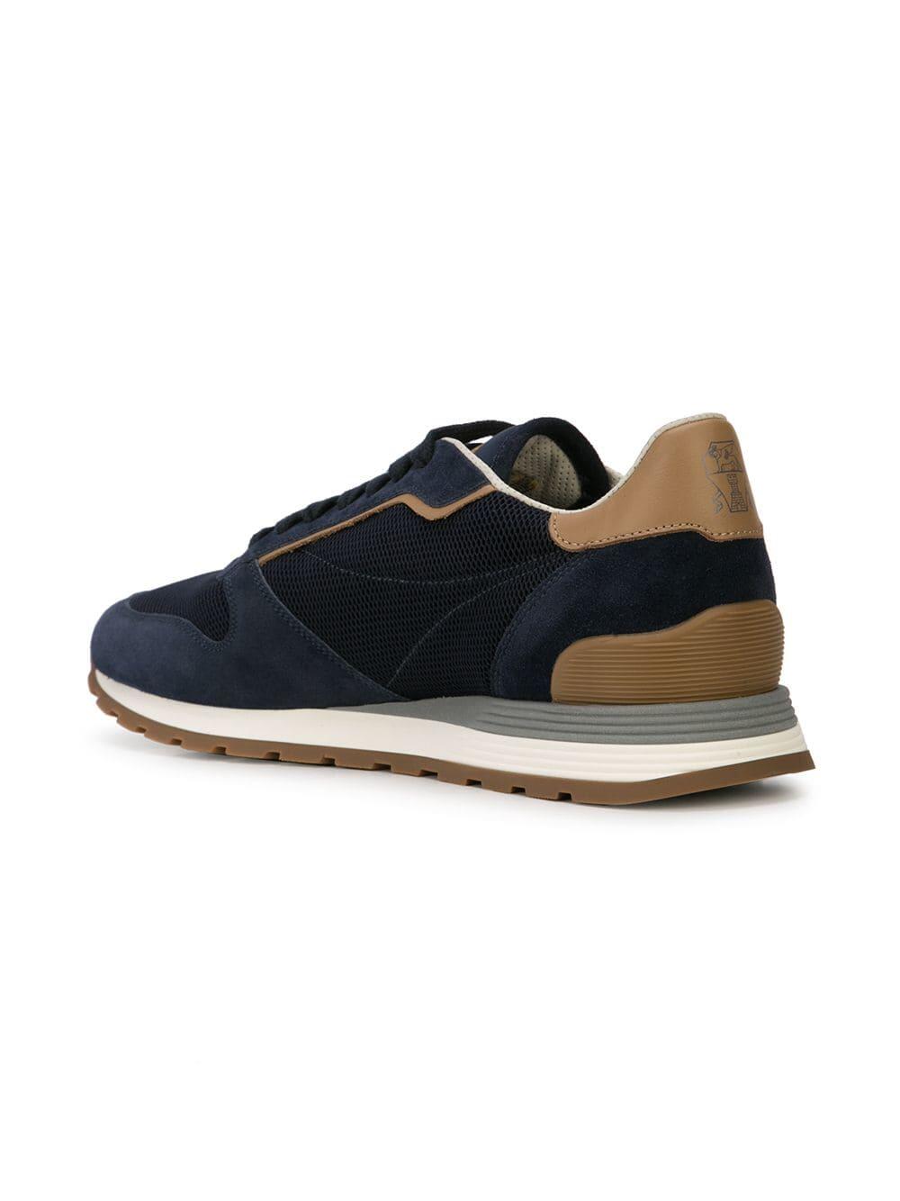 Navy & Tan Leather & Suede Low-Top Sneaker